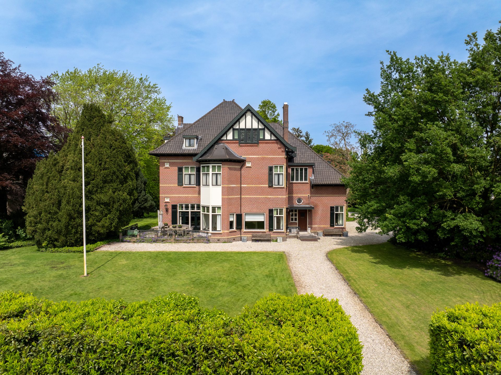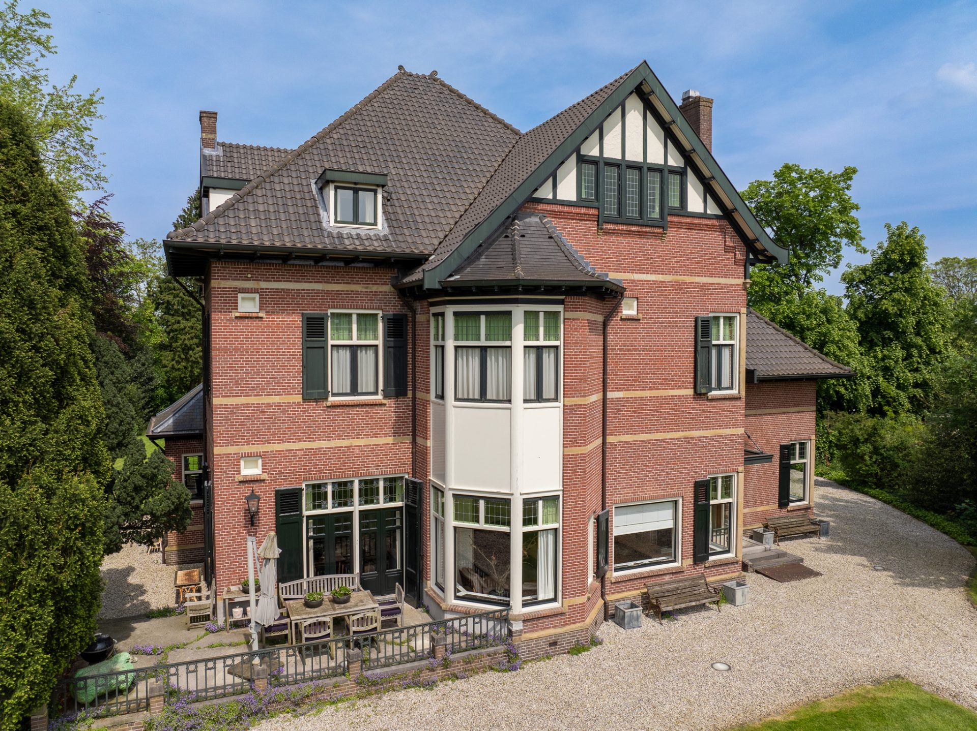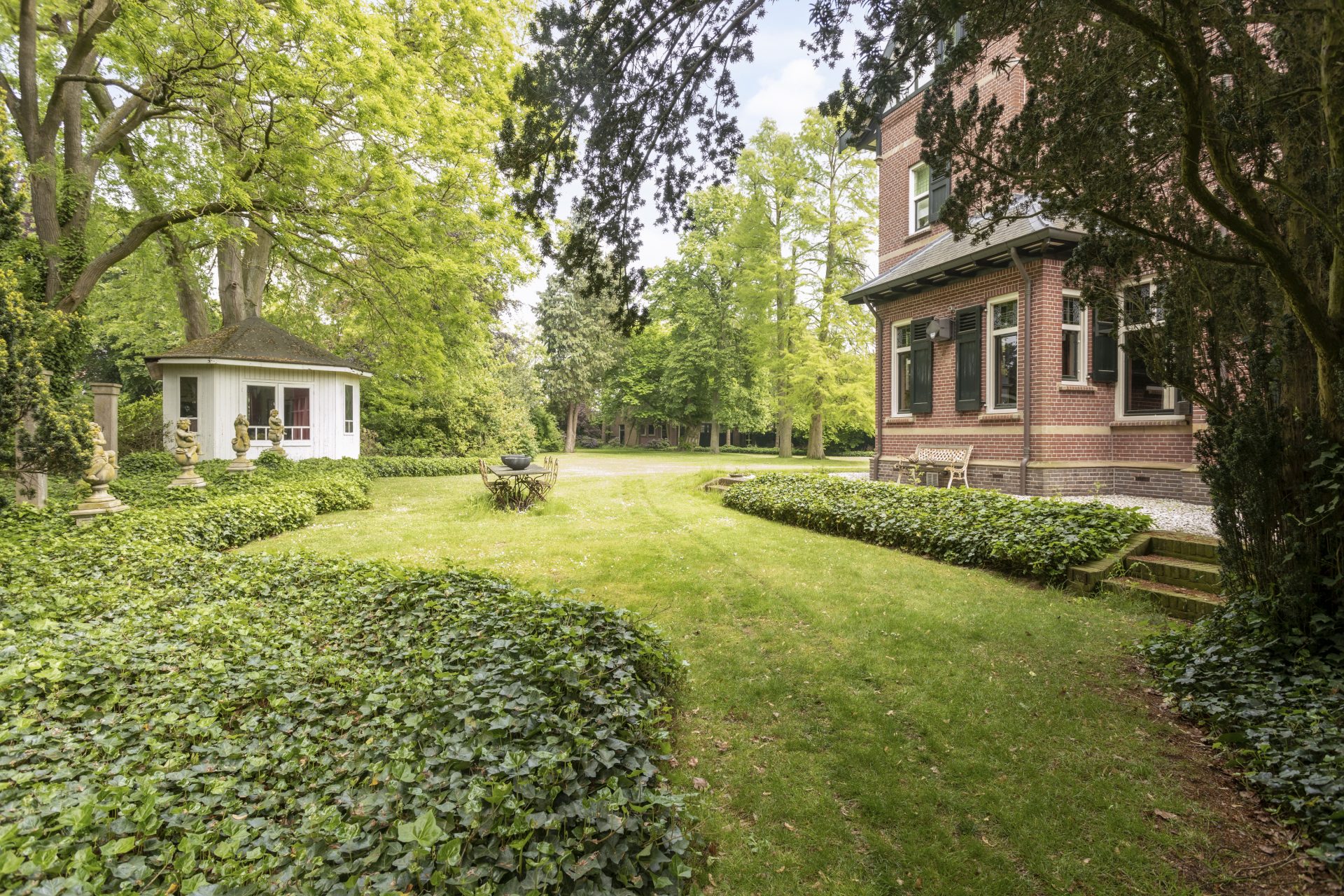 Op het ruime perceel van 4.915 m² staat achter in de prachtige parkachtige tuin een vrijstaand koetshuis en een gezellig theehuis dat doet herinneren aan tijden van weleer. Deze villa biedt een unieke levensstijl die huidige luxe en comfort op subtiele wijze met de historie combineert.