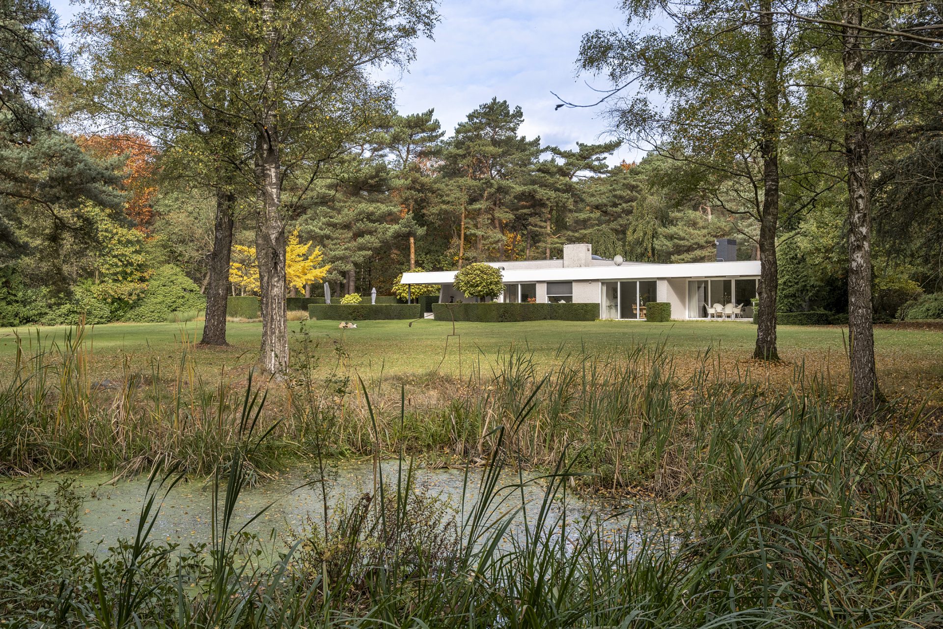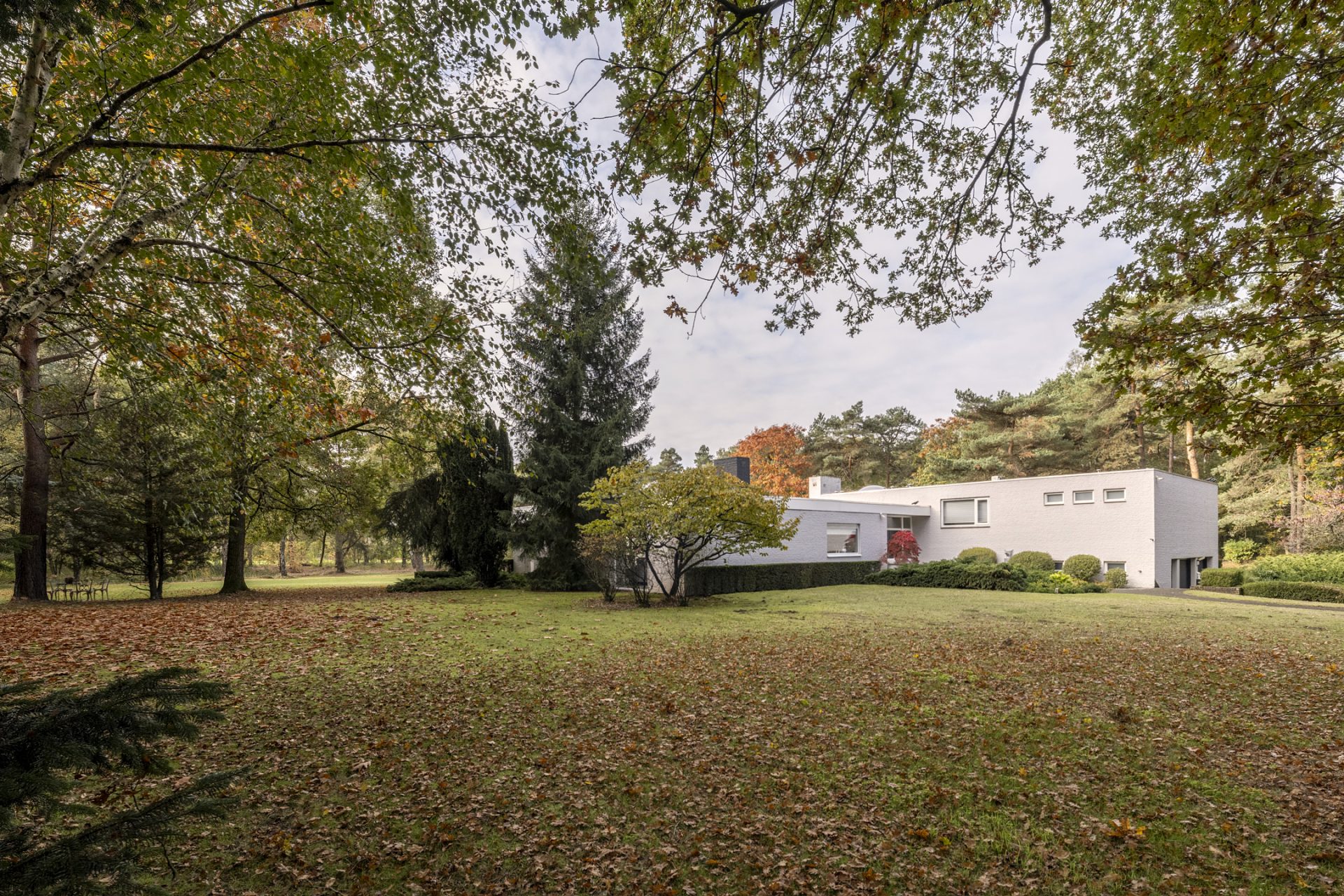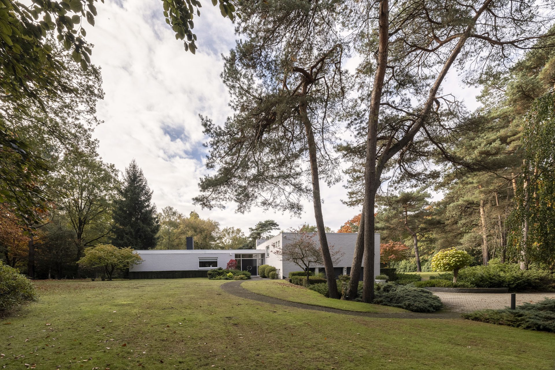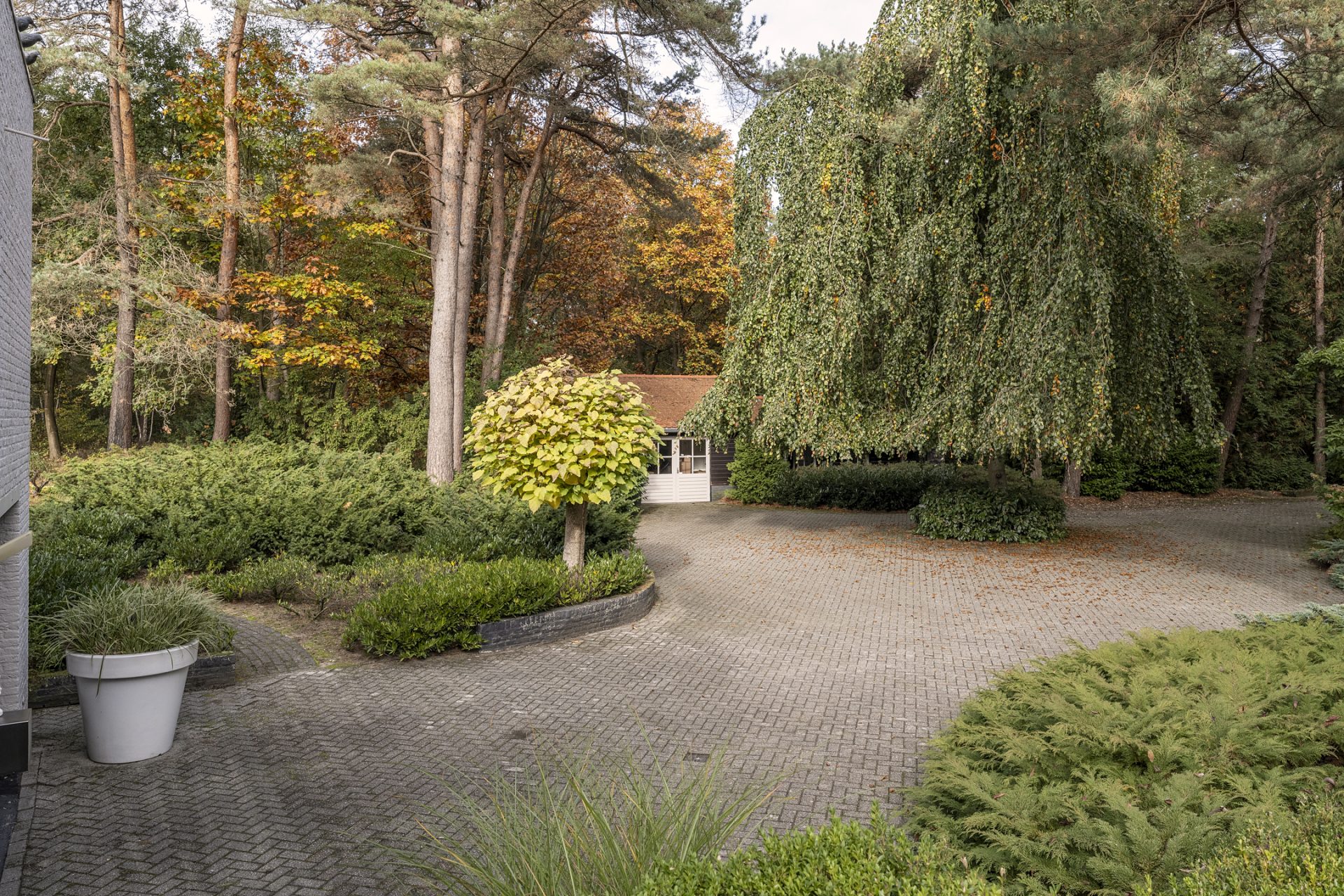 Vanaf de Rederijklaan rij je de oprijlaan op, omringd door bomen en prachtige beplanting. Parkeer de auto, stap uit en neem de tijd om de villa en omgeving te bewonderen. Je ervaart direct dat je op een bijzondere plek bent, met optimale privacy en een aangename rust.