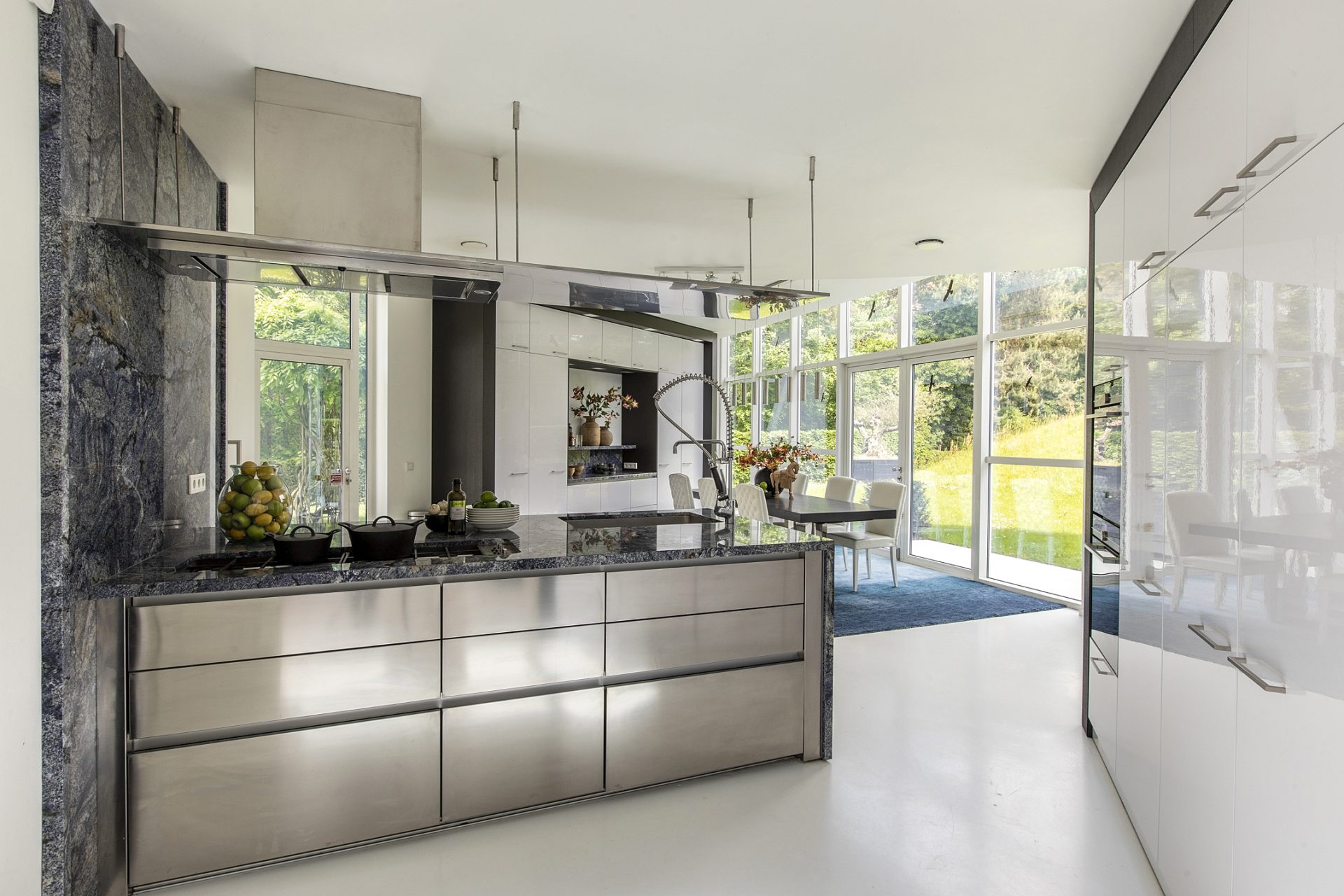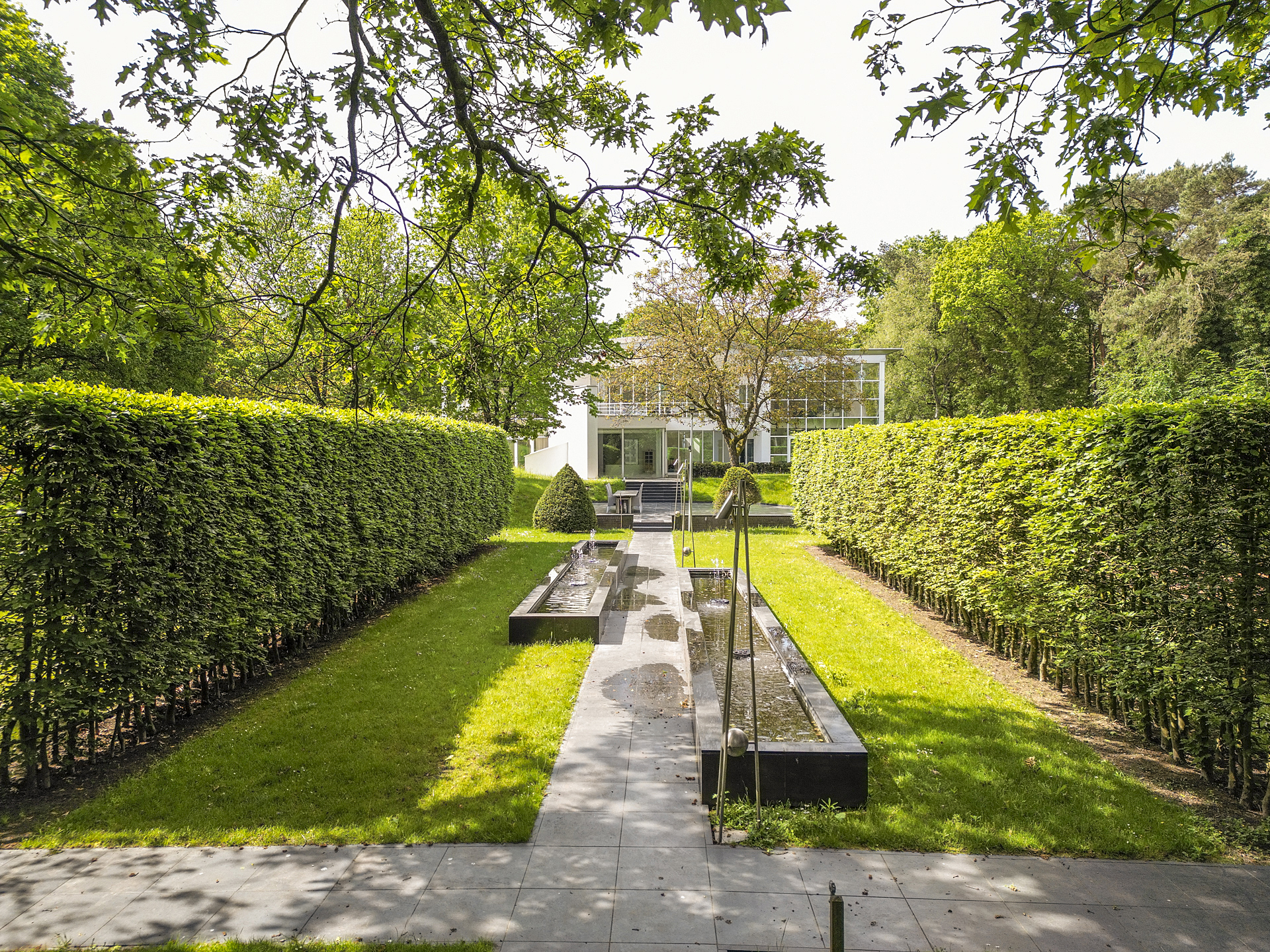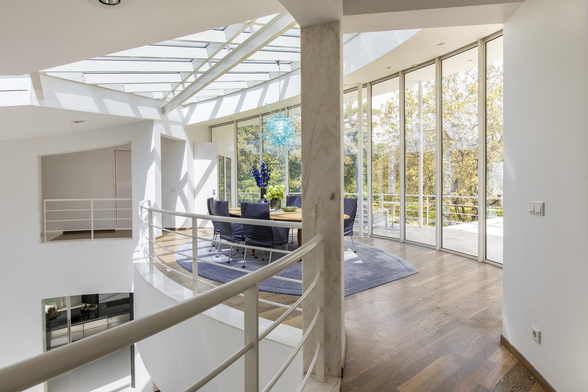 Bij het betreden van dit unieke pand wordt u onmiddellijk overweldigd door de grootsheid van het ontwerp en de aandacht voor detail. Een zorgvuldig geplande indeling, uitgevoerd met de beste materialen, zorgt voor een sfeer die even warm als verfijnd is. Een thuis waar u kunt genieten, maar ook kunt delen met gasten dankzij de ruime woon- en keukenruimtes, het gastenverblijf en de prachtige buitenruimtes.