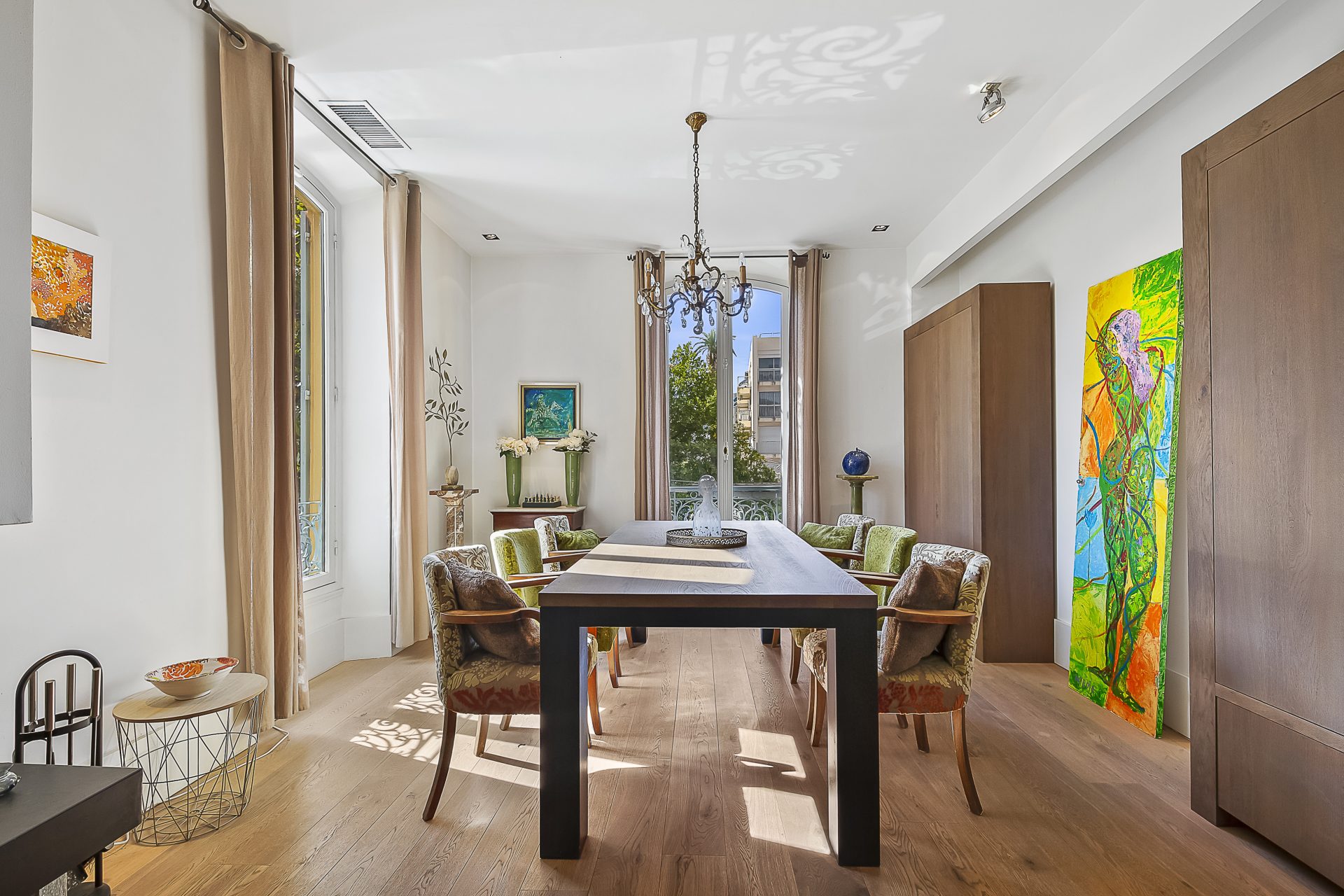 Unieke grote stadsvilla, Niçoise-stijl met een knipoog naar de “Belle Époque “, gebouwd omstreeks 1930 onder begeleiding van Architect Sylvain Furet, bekend om zijn typische “Belle Epoque” stijl. Na vele bestemmingen is de villa rond 2011/2012 grondig gerenoveerd met inbreng van de Internationale interieurarchitect/ontwerper “Piet Boon” uit Amsterdam, Nederland. Een volledig gerenoveerde en werkende lift brengt je naar alle 4 verdiepingen van dit uitzonderlijke huis! De keuze is gevallen op een centrale keuken als middelpunt van het huis, natuurtinten met witte muren gecombineerd, hoge taats deuren, eikenhouten parketvloeren, spot-verlichting (Modular), vele nissen voor kunstvoorwerpen, hoge 3 meter plafonds, plinten en ruime overlopen. Tijdens de renovatie zijn alle water- en elektra-leidingen vervangen alsmede alle etage vloeren, plafonds en vele muren welke eveneens zijn geïsoleerd. Alle wanden zijn opnieuw gestuukt. Hitachi-Airco-reversibele installatie met twee warmtepompen. Het dak is vernieuwd en geïsoleerd alsmede voorzien van twee nieuwe schoorsteenkanalen zodat indien gewenst in de slaapkamer ook een openhaard kan worden aangelegd. De villa staat op een terrein van 600 m2 waarvan een groot deel tuin op het zuiden, met een eeuwenoude Lindebloesem en een prachtige Magnolia die een welkome natuurlijke schaduw bieden in de zomer. In de tuin bevindt zich een zwem-spa van 7 meter met aparte jacuzzi en rondom een hardhouten terras. De tuin ligt beschut. Er is voldoende plaats om meerdere auto’s te parkeren. De villa, uniek in zijn soort, is van alle gemakken voorzien zoals een wijnkelder, een Hamman, een studio met separate ingang, een 3 persoonslift voor de 4 verdiepingen en een royaal terras op de 1 etage met uitzicht op de Baous Blanc van Vence. Dit alles is verdeeld over plusminus 360 m2 woonruimte met terras. Indeling: 1. Souterrain: studio met eigen ingang, badkamer met ligbad, grote wastafel, douche en toilet. Eenvoudig om te zetten naar conciërge-woning of een praktijk- werk-, atelierruimte. Wijnkelder met twee wijnkasten. Een technische ruimte, lift, toilet, Hamman voor 4 personen met aparte douche. Meterkast met boiler. Grote wasruimte met tweetal ramen. Lift. 2. Rez chaussée met plafond hoogte van 3 meter: hoofdingang, hal, garderobe, ruime toilet, muziek-, c.q. werkkamer, woon-eetkeuken voorzien van alle apparatuur (Haier-americain koelkast met ijsklontjes, Siemens bak- en stoomoven, vaatwasmachine, dubbele spoelbak en geïntrigeerde Dietrich afzuigkap in marmeren werkblad, grote inductie kookplaat. Woonkamer met RUEG-openhaard, eet en zit gedeelte. Lift en originele trap met eikenhoutenparket belegd alsmede etagevloer. 3. 1e etage met plafondhoogte van 3 meter: ruime hal met lift, werkkamer met toegang tot ruim terras met mooie vergezichten op bergen en de Baous van Vence, zeer royale slaapkamer met aangrenzende dressing, balkon! Open doorgang naar royale badkamer met vrijstaand ligbad, douche Italiënne, toilet, en twee vierkante opdek wastafels, balkon, uitzicht op achterland en bergen. Handdoekenradiator mogelijk. Eikenhouten parketvloer 4. 2 etage: overloop, lift, grote speel/tv-kamer, drie identiek slaapkamers met dakkapel en elk voorzien van een douche met veluxraam, toilet en wastafelmeubel. Twee boilers. Waarbij de dakconstructie in zicht is gebracht en een extra ruimtelijke dimensie geeft! Eikenhouten parketvloer.