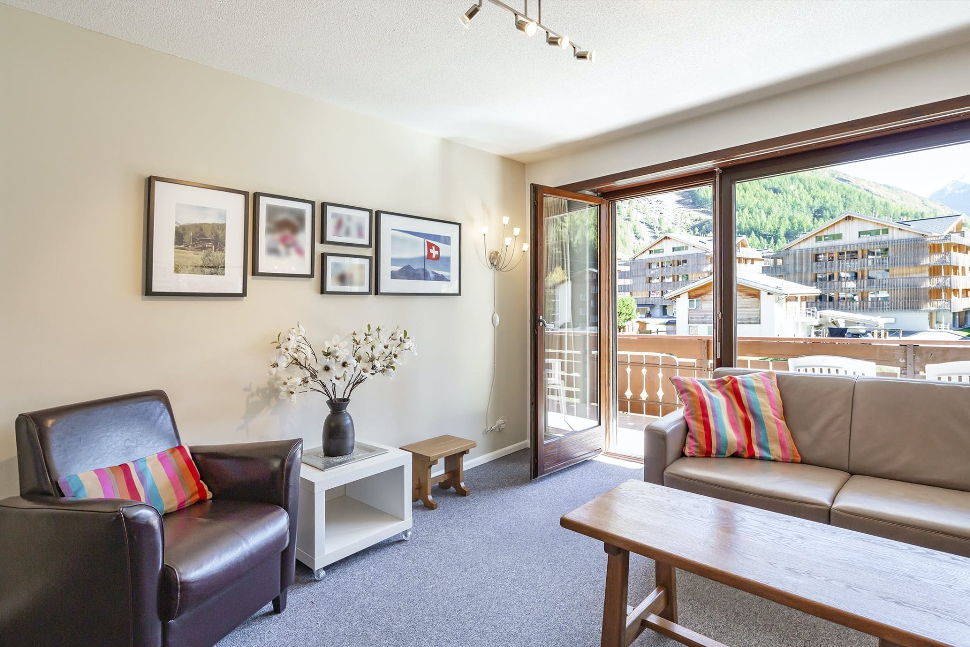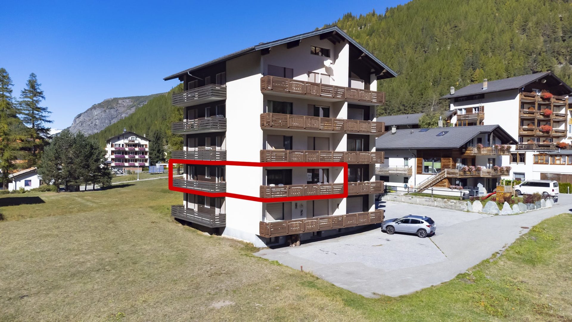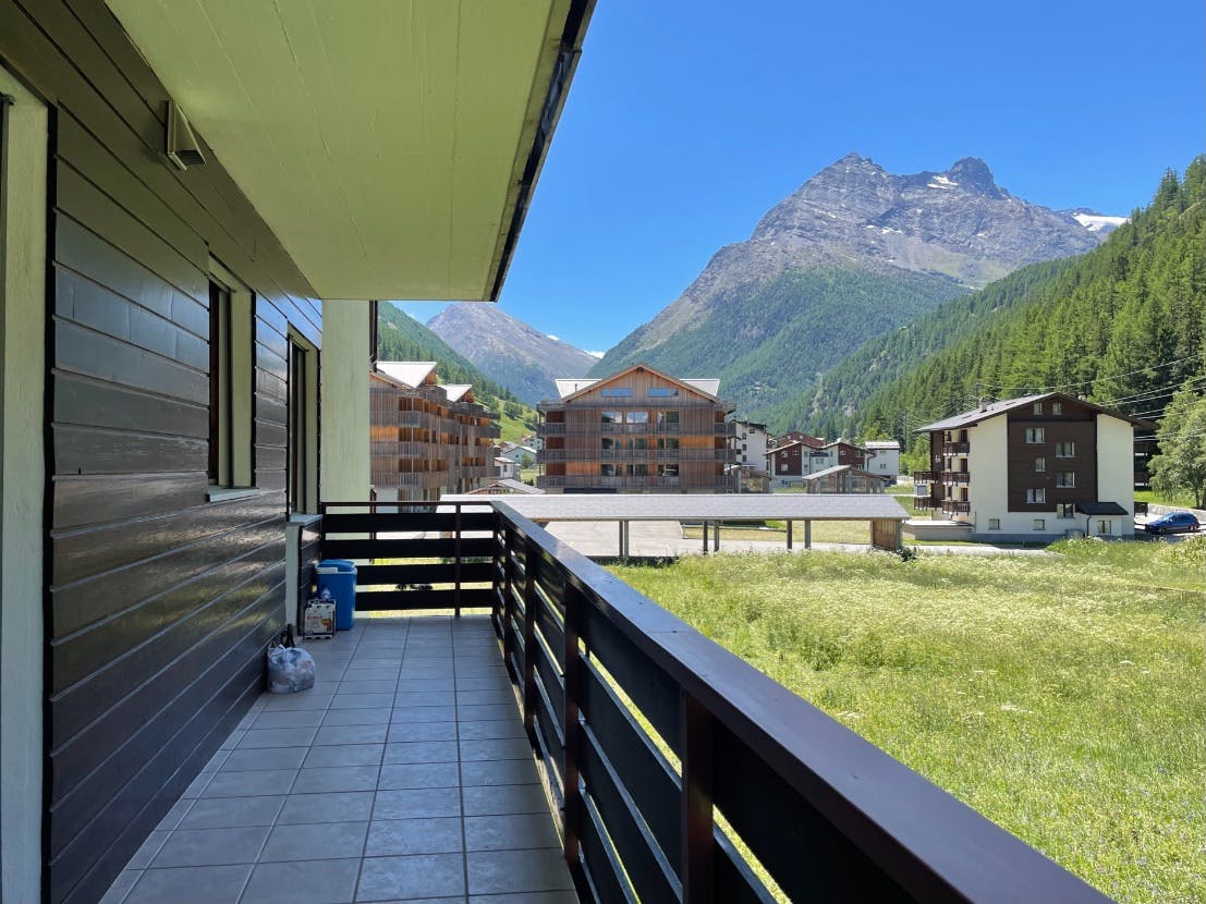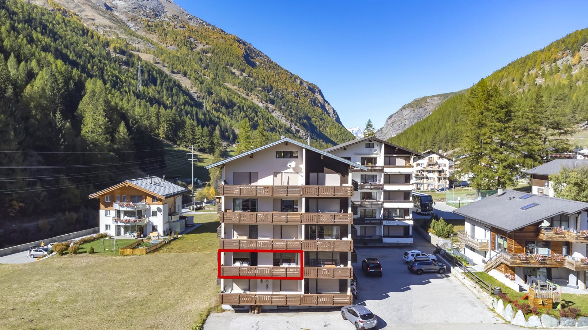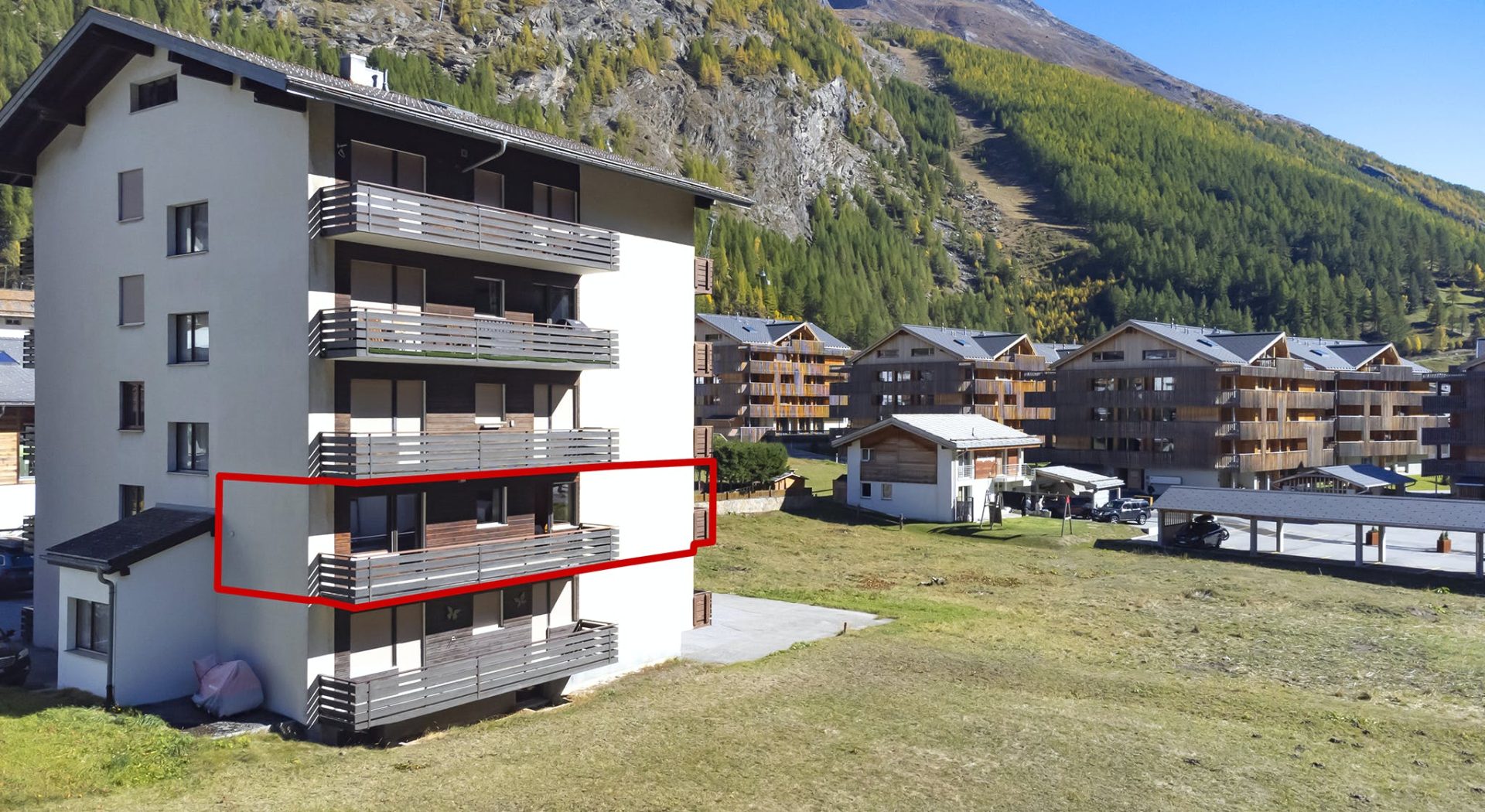 Comfortabel en goed onderhouden 3-kamerappartement met twee ruime balkons en eigen buiten parkeerplaats, op korte loopafstand van het dorpscentrum en de Bergbahnen naar het ideale familie skigebied Kreuzboden-Hohsaas en op slechts 5 minuten van het grote Saas-Fee skigebied.