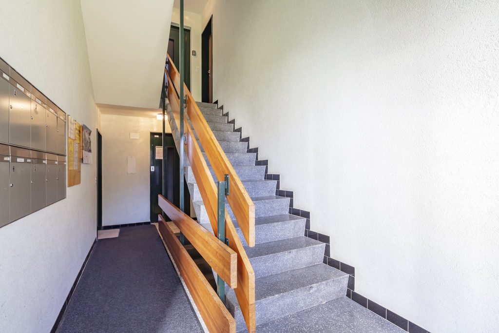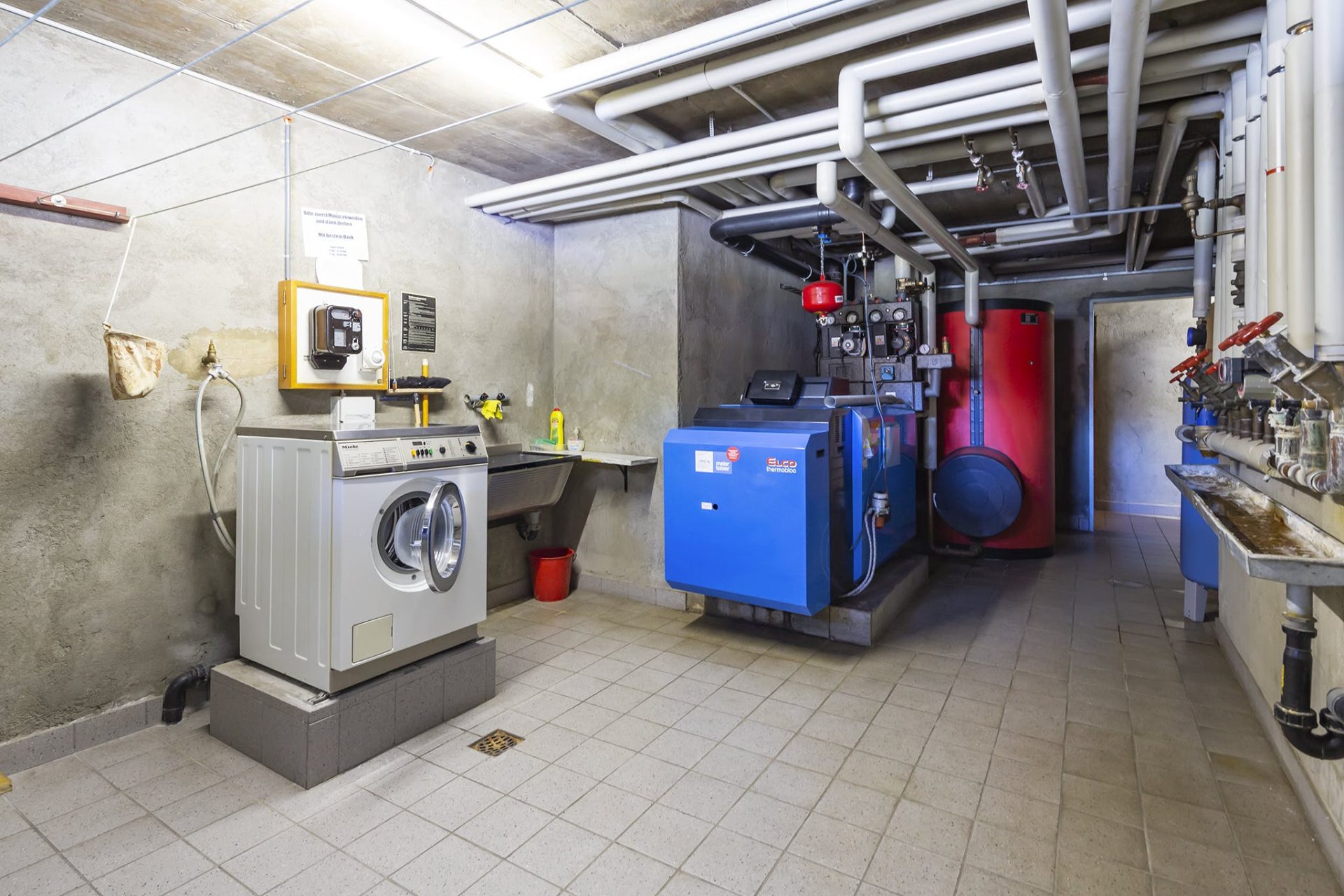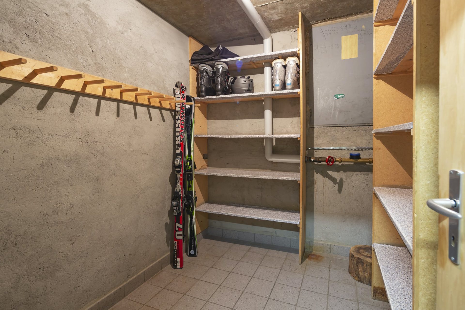 Ingang op begane grond met lift en toegang naar kelder met privé berging en gemeenschappelijke stookkelder, wasruimte en skiruimte.