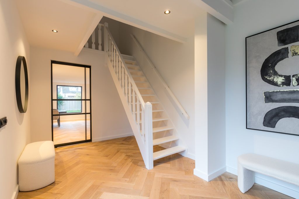 Bij het betreden van de woning ervaart u direct de uitnodigende sfeer en de hoogwaardige afwerking. De begane grond is stijlvol en beschikt over een open keuken met moderne inbouwapparatuur, waardoor koken een plezierige ervaring wordt. De hal biedt toegang tot de keuken, woonkamer en eetkamer, waar u volop ruimte heeft om te ontspannen, te dineren en te genieten van gezellige avonden met vrienden en familie.