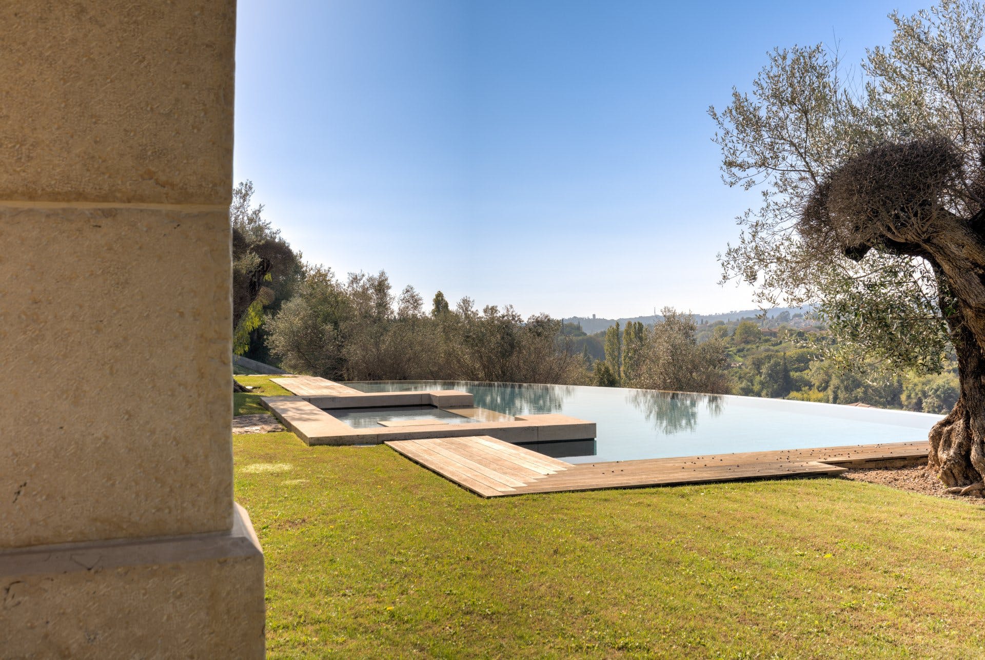De grote ruimtes geven een prachtig uitzicht. Een tuin met eeuwenoude olijfbomen, een verwarmd overloopzwembad en een poolhouse met een bio-klimatologische pergola.