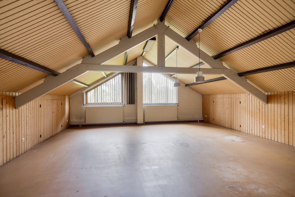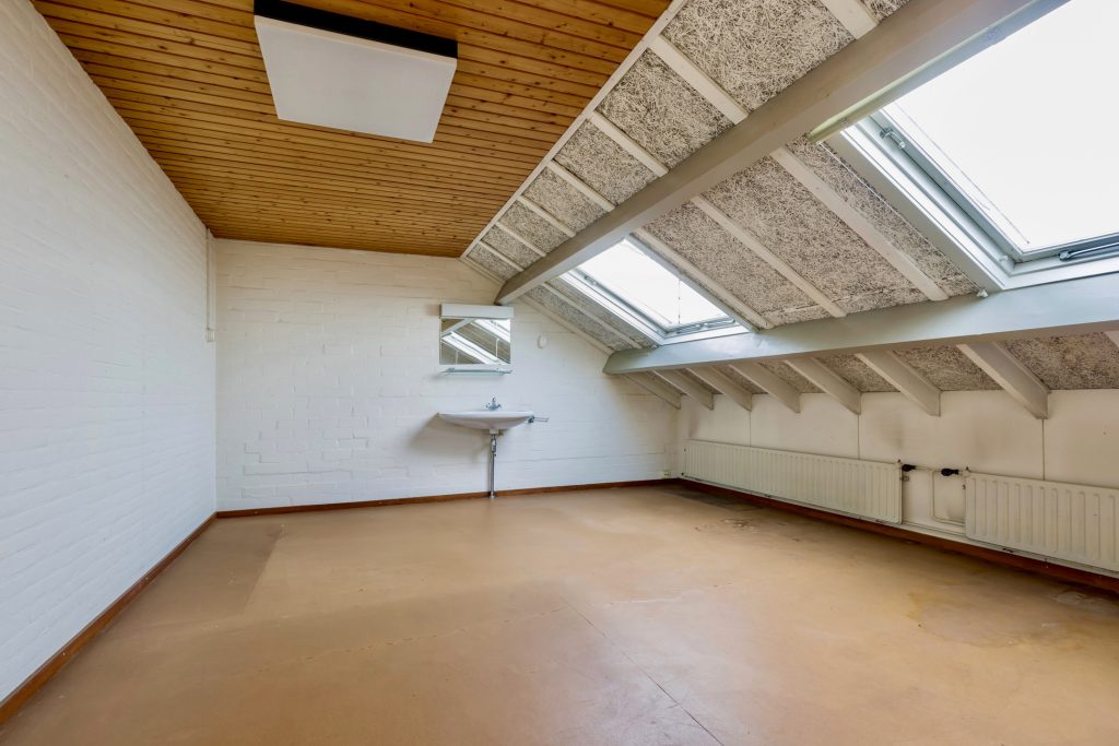 Onder het hoge, schuine dak is verrassend veel ruimte beschikbaar. De huidige indeling biedt een overloop, berging, cv-ruimte, een slaapkamer met twee dakramen en een grote multifunctionele ruimte. Er kunnen hier twee extra slaapkamers gerealiseerd worden, met een extra badkamer.