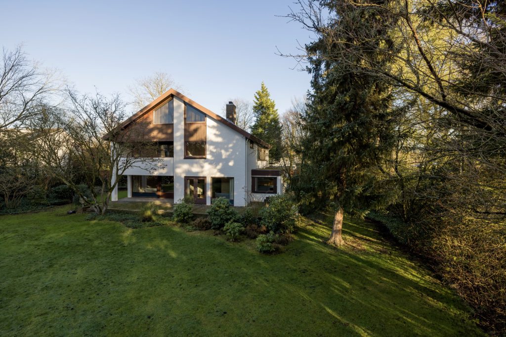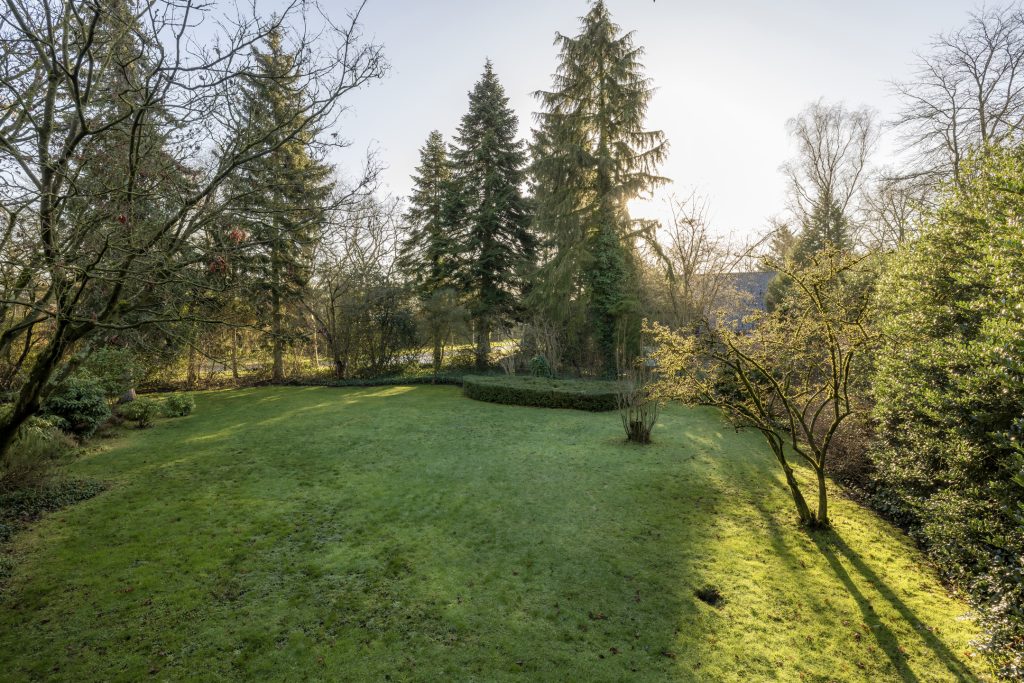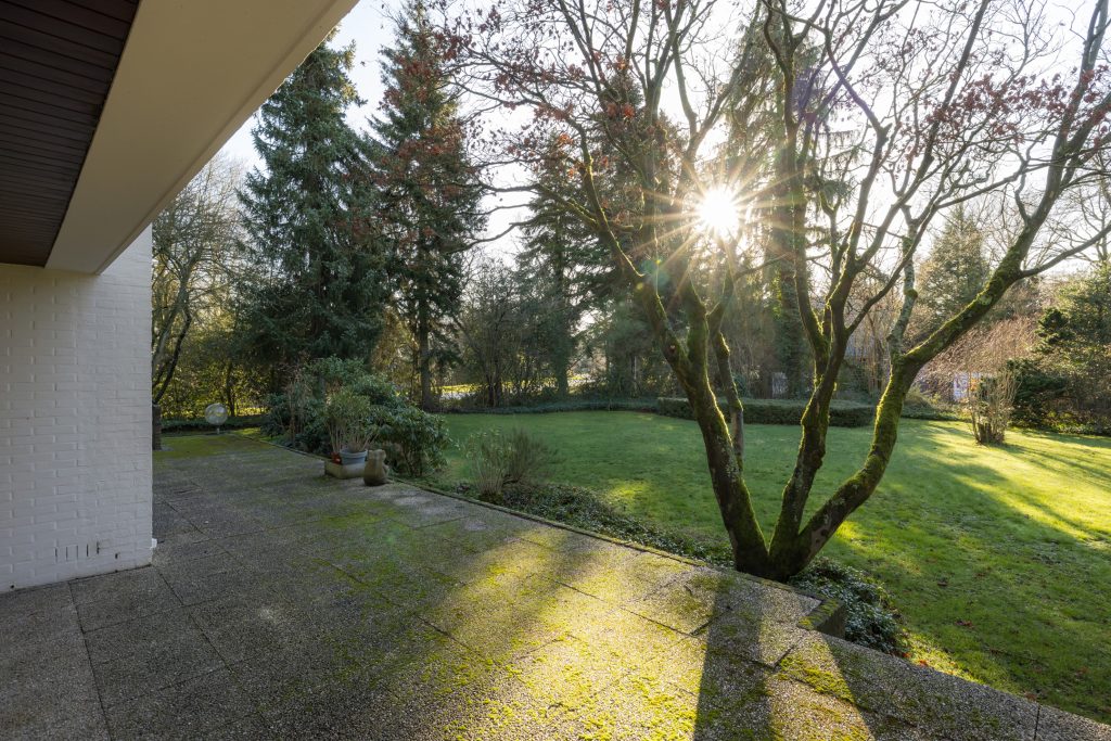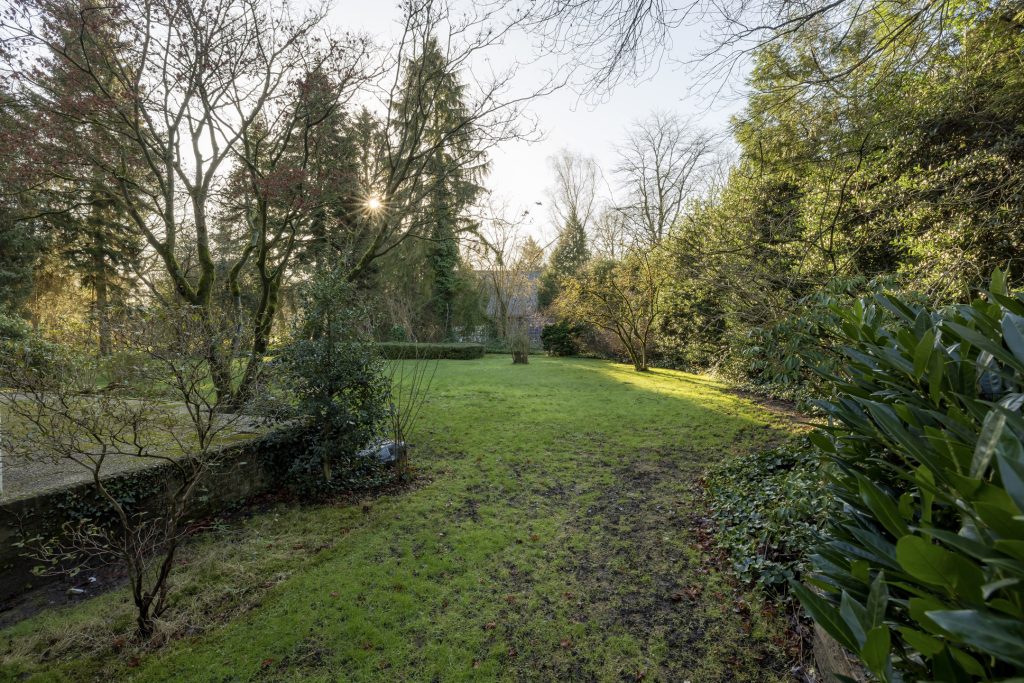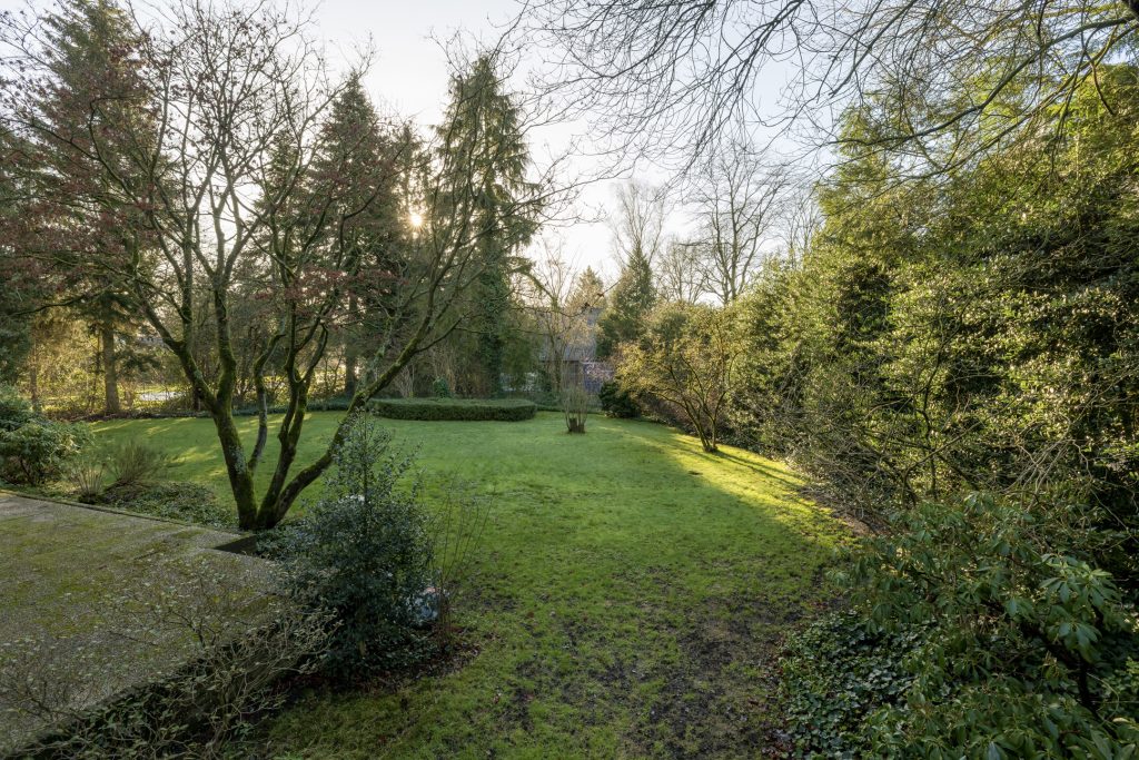 De villa wordt omringd door een royale tuin met een uitstekende zonligging. De diepe achtertuin is gesitueerd op het zuiden en de bomen bieden, net als de beplanting aan de rand van het perceel, een grote mate van privacy. Hier ervaar je de beleving van het wonen in een park en voor kinderen is dit een droomtuin, waar ze eindeloos kunnen spelen.