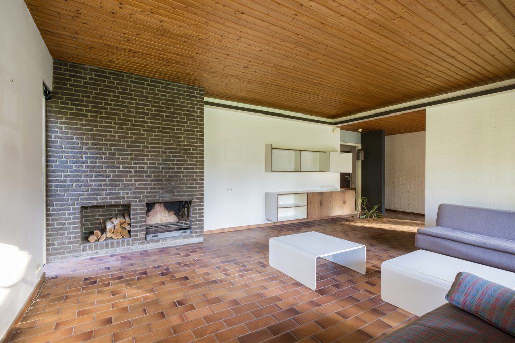 De open haard bevindt in de woonkamer. Vanuit hier heb je toegang tot het overdekte terras en tuin via een royale schuifpui. Het eetgedeelte heeft openslaande deuren naar het terras.