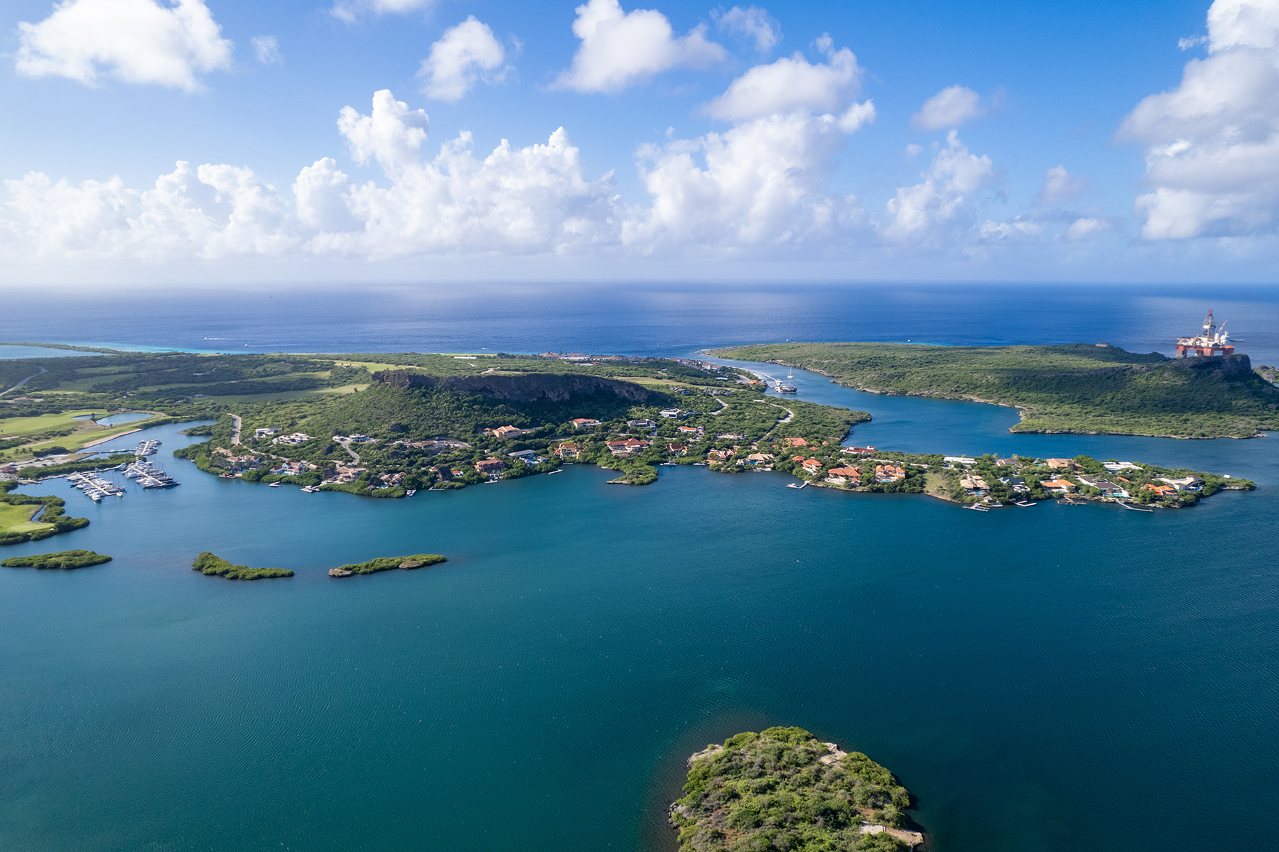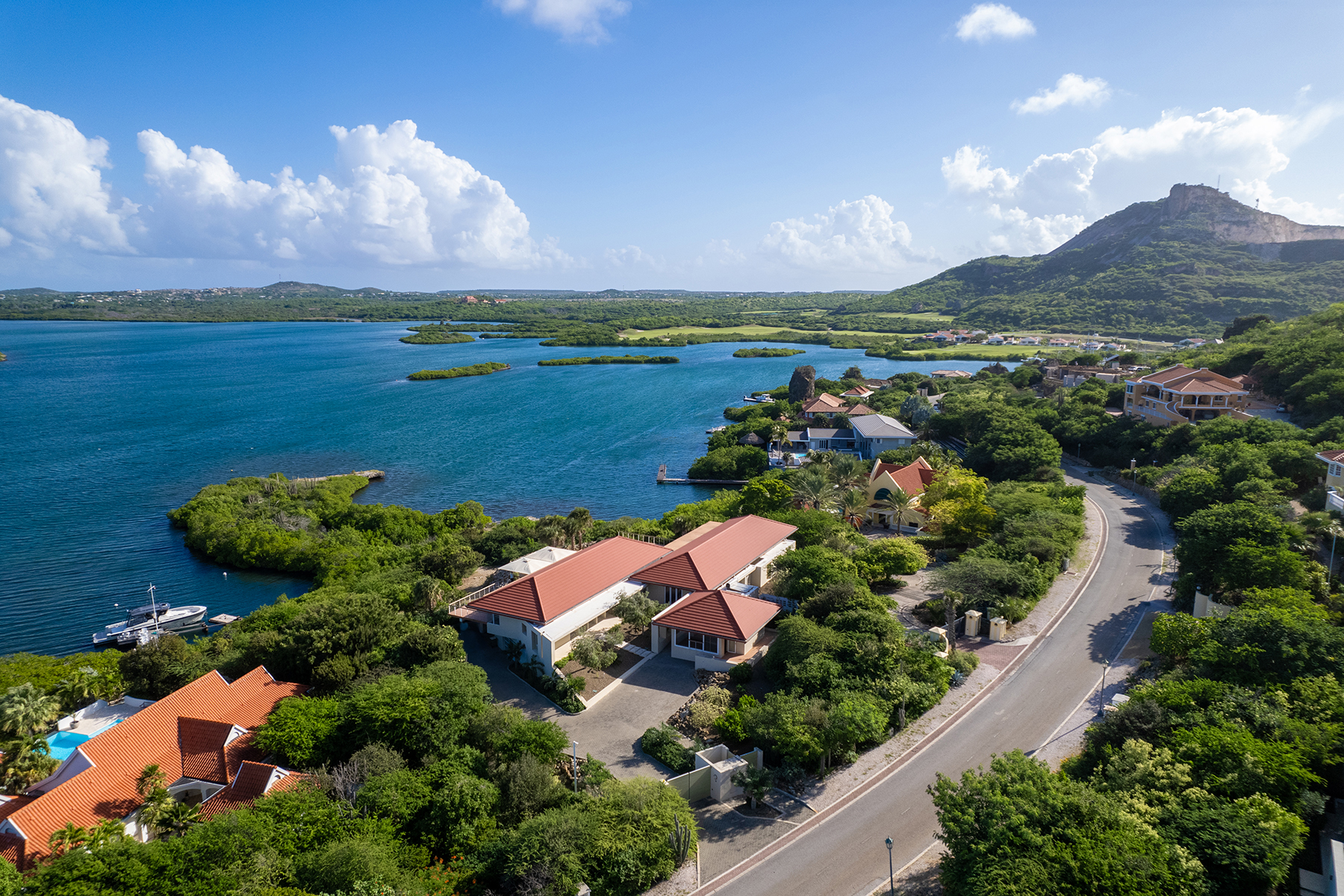 Gelegen in het exclusieve Santa Barbara Resort, waar de 18-holes Pete Dye Old Quarry Golfbaan, jachthavens en het Sandals Resort zich bevinden, ligt deze buitengewone waterfront villa: Seru Boca Estate 10.