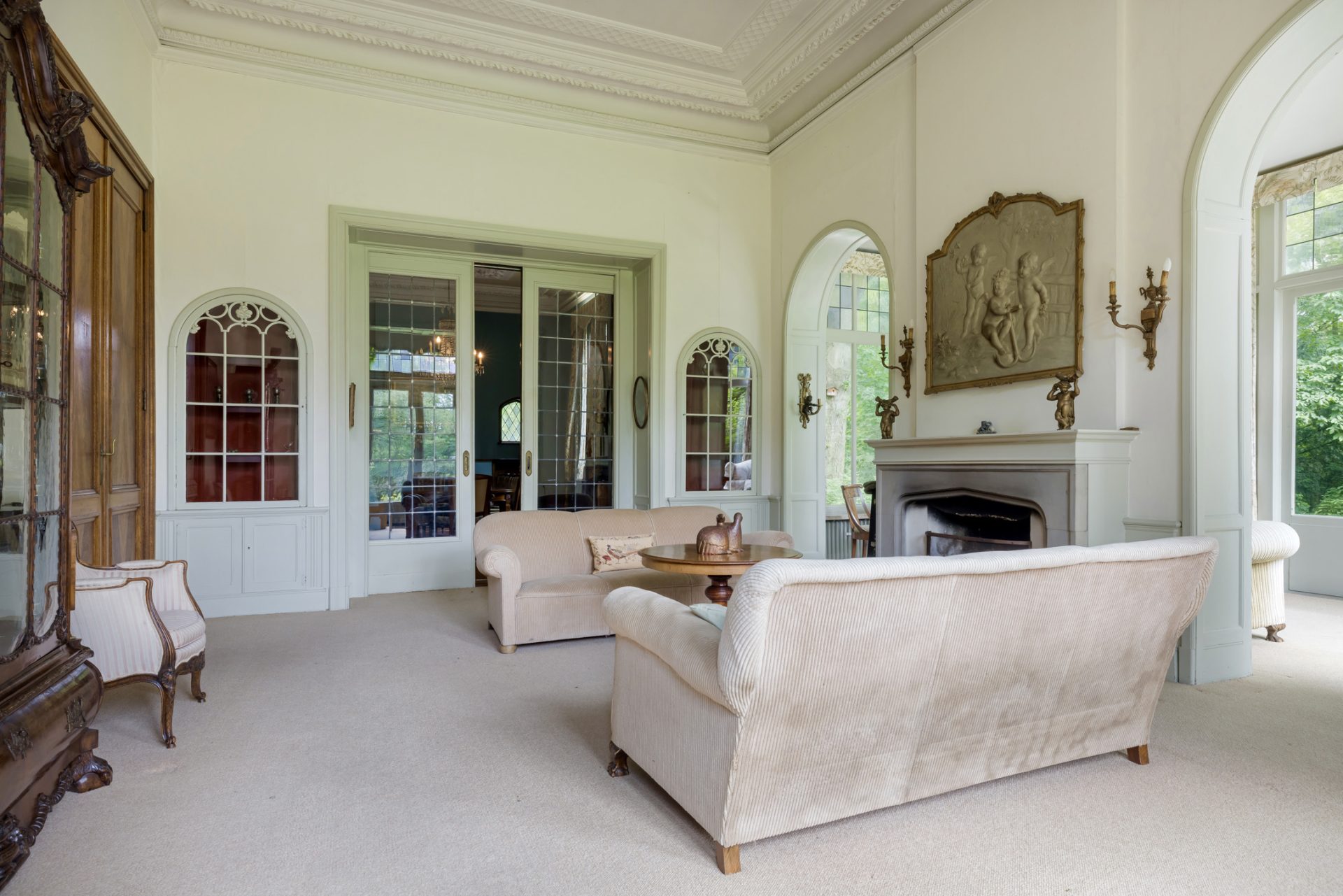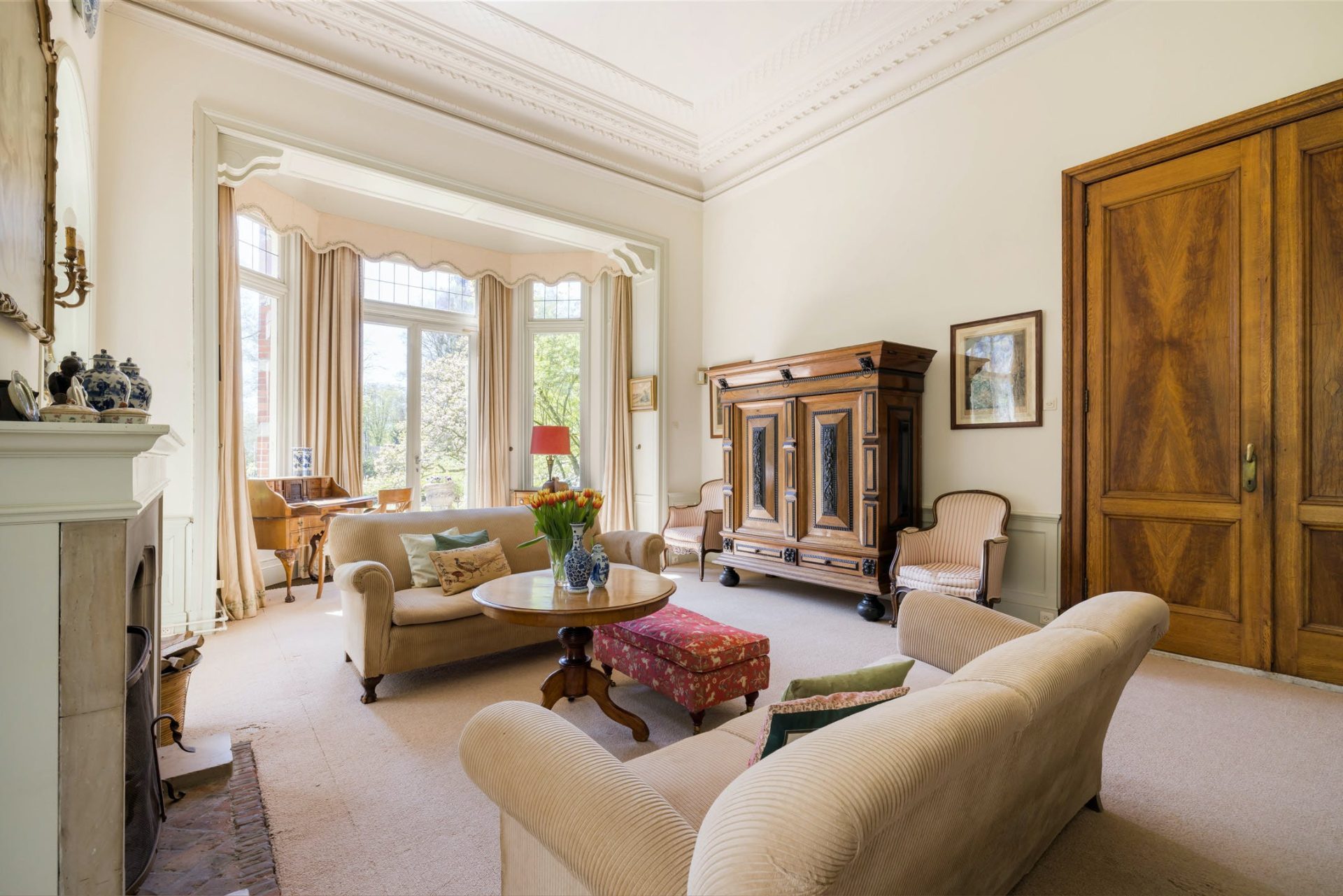 Villa Leeuwenhof staat op een riant perceel van 11.410 m² en biedt een royaal woonoppervlak van 426 m², verdeeld over drie bouwlagen. De klassieke rechthoekige plattegrond met plat dak, bekleed met leien, geeft het pand een statige uitstraling. Binnen vindt u een schat aan originele elementen die zorgvuldig bewaard zijn gebleven, wat bijdraagt aan de authentieke charme van deze unieke villa.