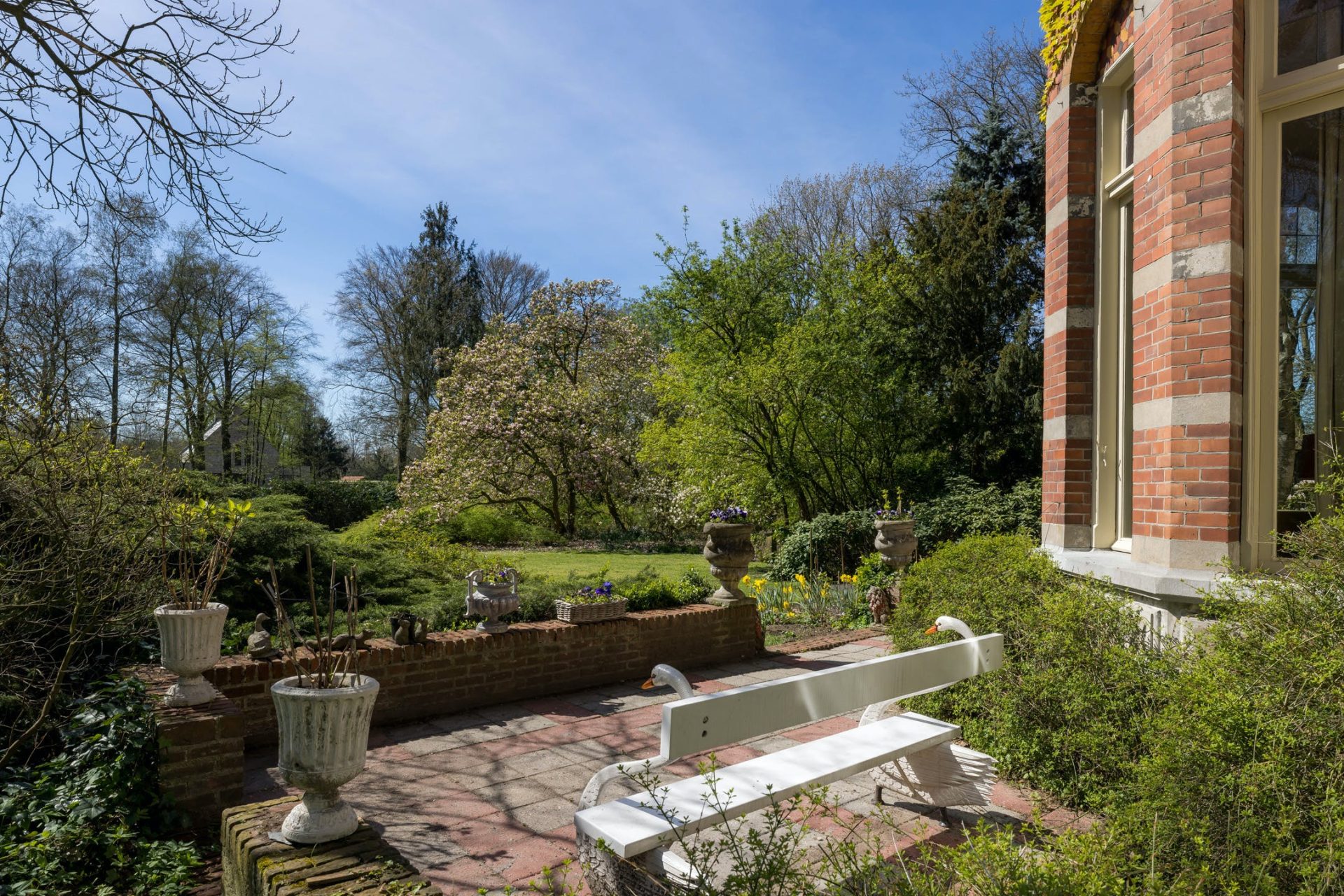 De villa is omgeven door een betoverende landschapstuin en beschikt over een buitenzwembad. De directe omgeving biedt rust en natuurschoon, met het nabijgelegen natuurgebied Haanwijk, uitgestrekte landerijen, weilanden en bossen. Het is een paradijs voor natuurliefhebbers met talloze wandel- en fietsroutes langs historische kastelen en landgoederen.
