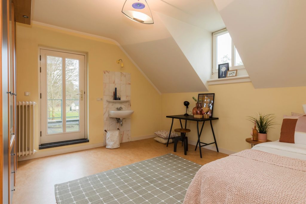 Boven het gehele landhuis bevinden zich meerdere goed afgewerkte zolderkamers ten behoeve van opslag en de opstelling van apparatuur zoals de verwarmingsinstallatie. Het grootste deel van de ruimte is met een vaste trap te bereiken, een klein deel via een vlizotrap.