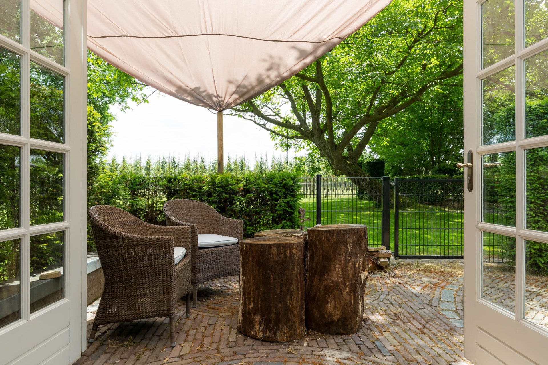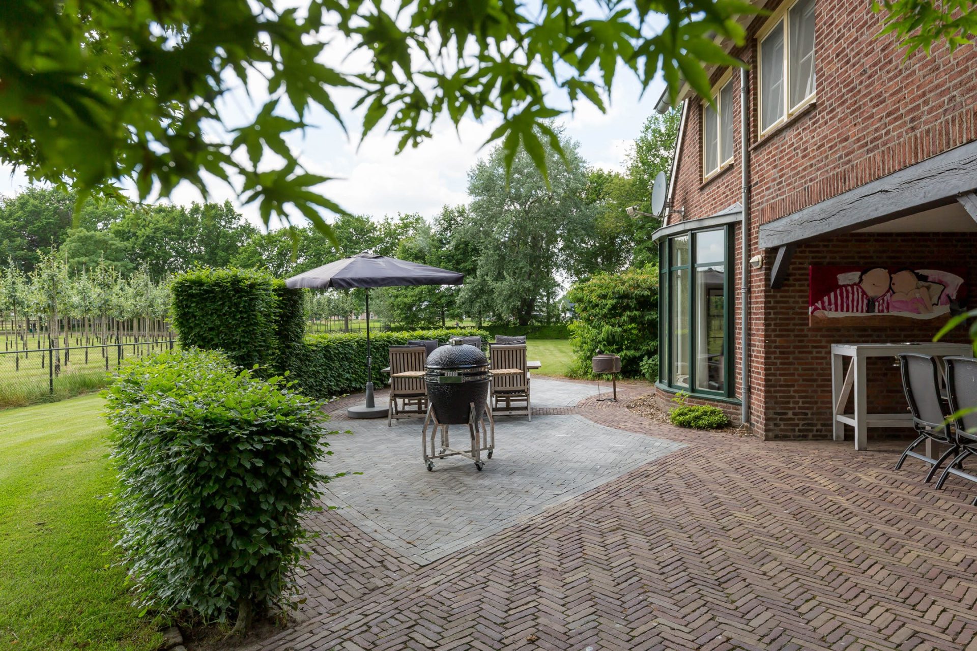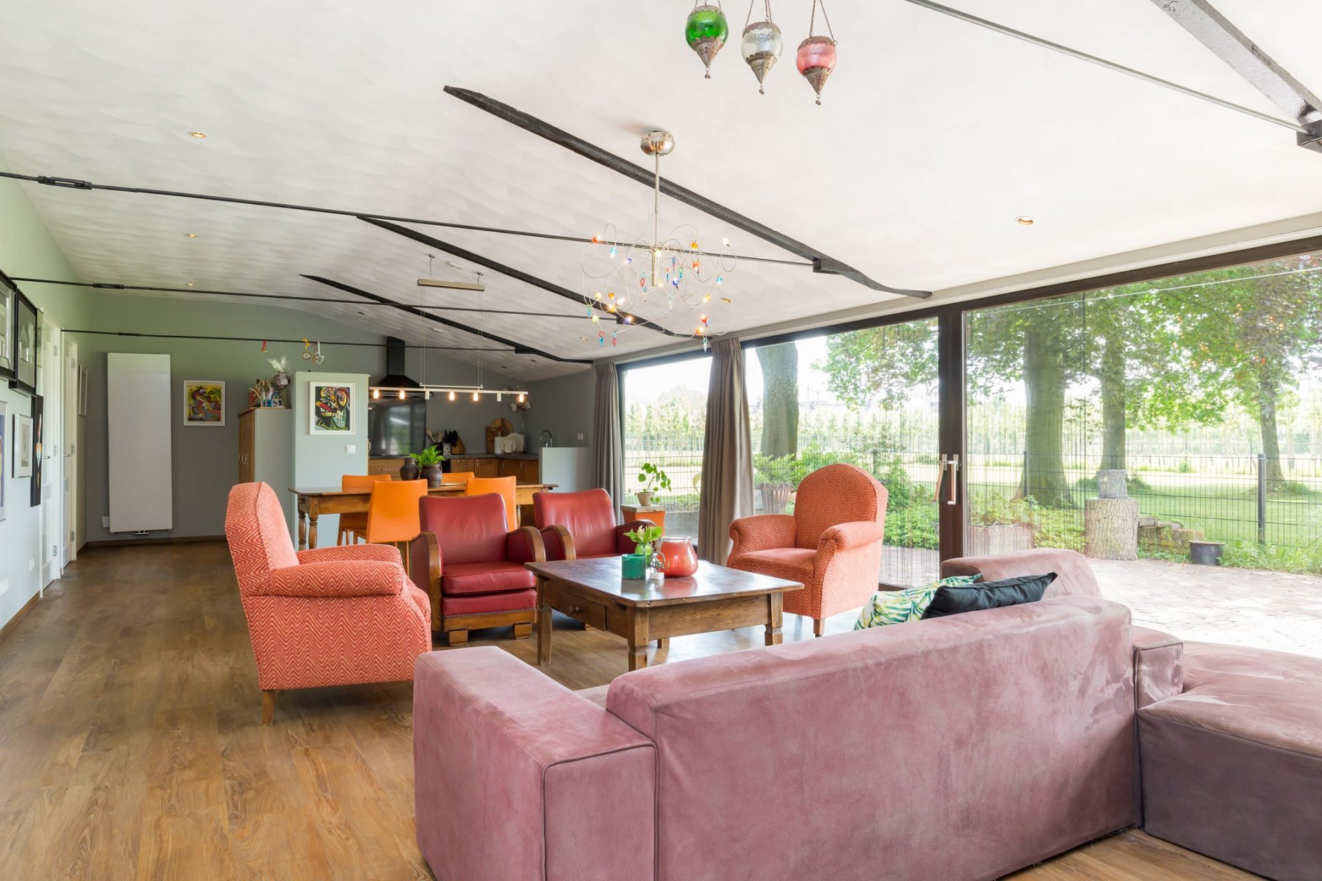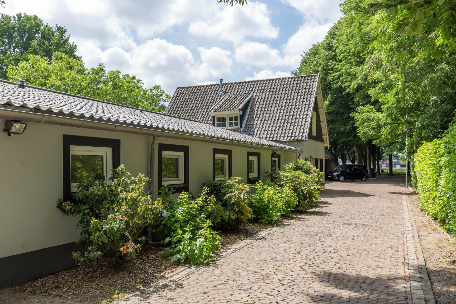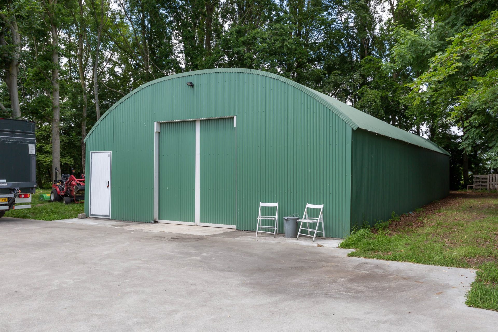 Het verharde buitenterrein tussen het gelijkvloerse bijgebouw en de stalen loods biedt ruimte voor een kleine vrachtwagen, paardentrailer, caravan of camper. Hiermee is deze woonboerderij een uitstekende uitvalsbasis voor een breed publiek, waaronder ondernemers die opslag- en parkeerruimte aan huis wensen.