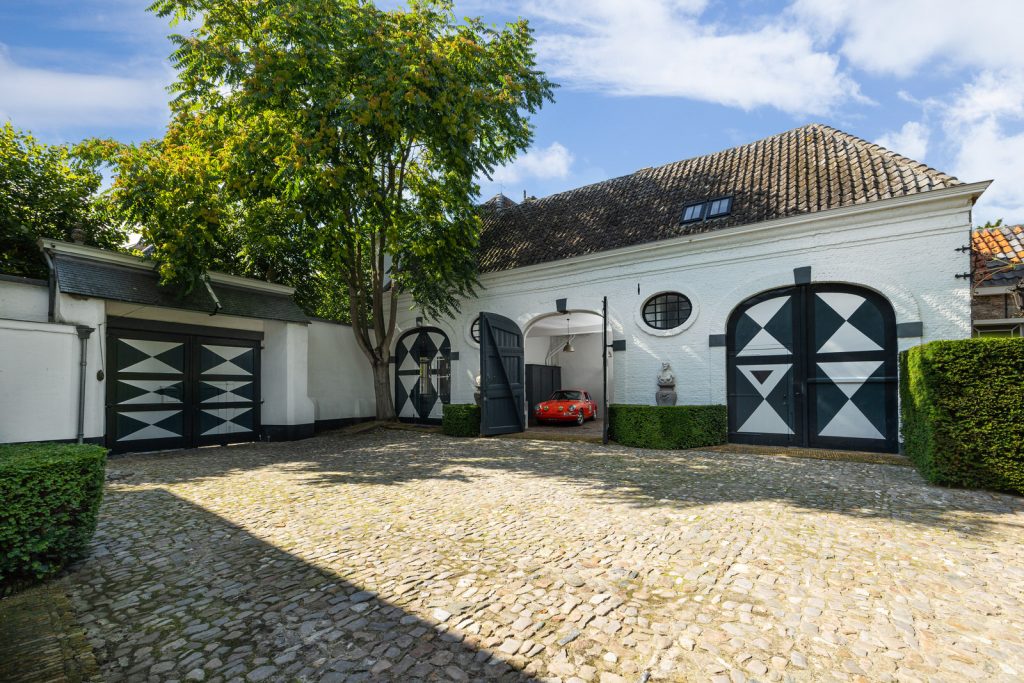 Het imposante koetshuis, gelegen aan de binnencourt, beschikt over maar liefst drie poortdeuren. Aan de zijde van de Taalstraat is een fraaie kamer ingericht als kantoor/studie, terwijl de tweede poort ruimte biedt voor het stallen van (klassieke) voertuigen. De derde poort leidt naar een grote ruimte, met nog de oorspronkelijke hardstenen voederbakken voor de paarden. Een eiken trap leidt naar de eerste verdieping. Onder de hoge kapconstructie met oude, authentieke balken bevindt zich een uiterst gezellige ontspanningsruimte van bijna 100 m², voorzien van een bar met koelkast en spoelbakken. Een ideale ruimte voor feesten, vergaderingen en meer. De eettafel voor 16 personen, verlichting, muzieksysteem en biljart zijn al aanwezig!