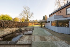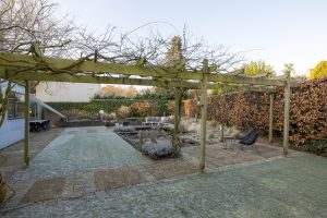 De rondom de villa gesitueerde, verrassend ruime tuin is een oase van groen, biedt volop privacy. Er zijn meerdere terrassen, waarvan één bij de vijver, en de beplanting is gevarieerd. Strakke hagen, dikke bomen en lage beplanting vormen samen een fraai geheel. Als de kinderen de grootte van de tuin zien zijn ze verkocht, want hier kunnen ze heerlijk rennen, voetballen, hockeyen en verstoppertje spelen …
