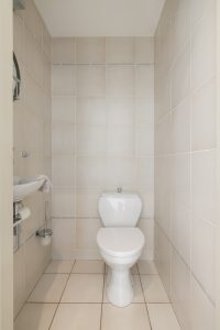 De badkamer behorende bij de master bedroom is ingedeeld met een ligbad, dubbel wastafelmeubel en een toilet. In de tweede badkamer, origineel uit de jaren 70, zie je een douche, toilet, wastafel en de opstelling van de wasapparatuur.