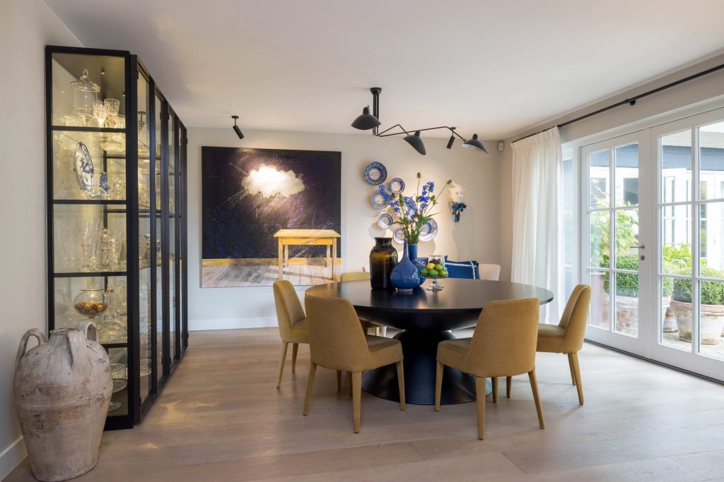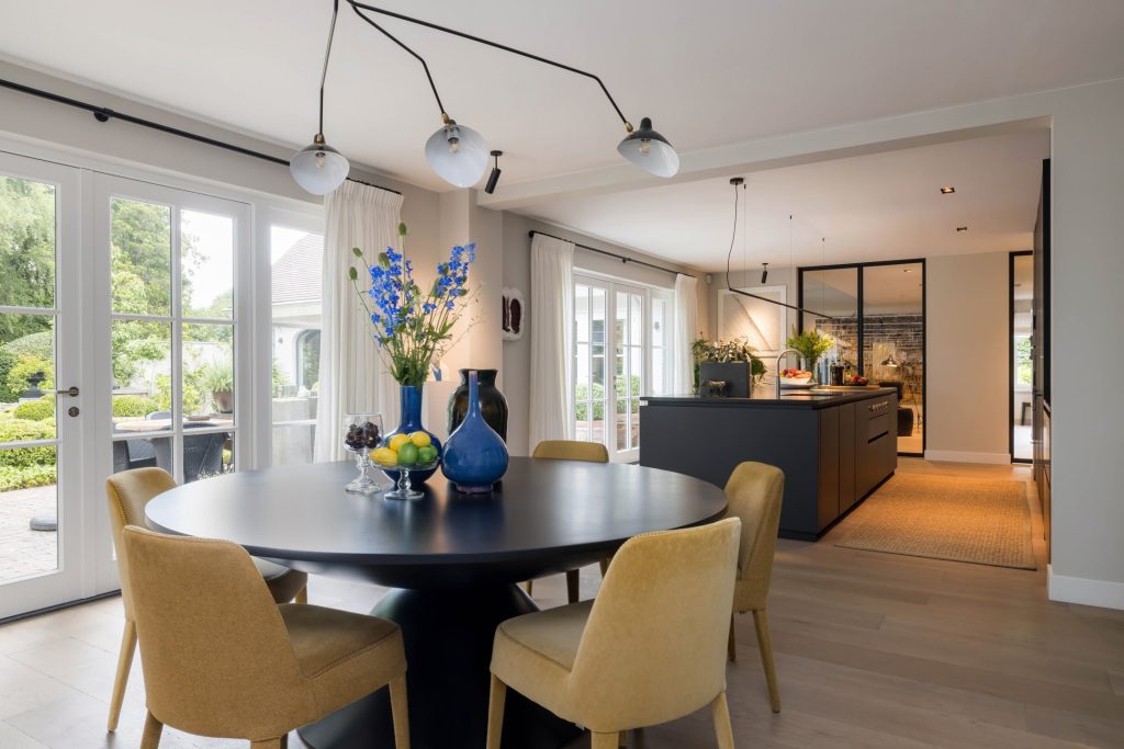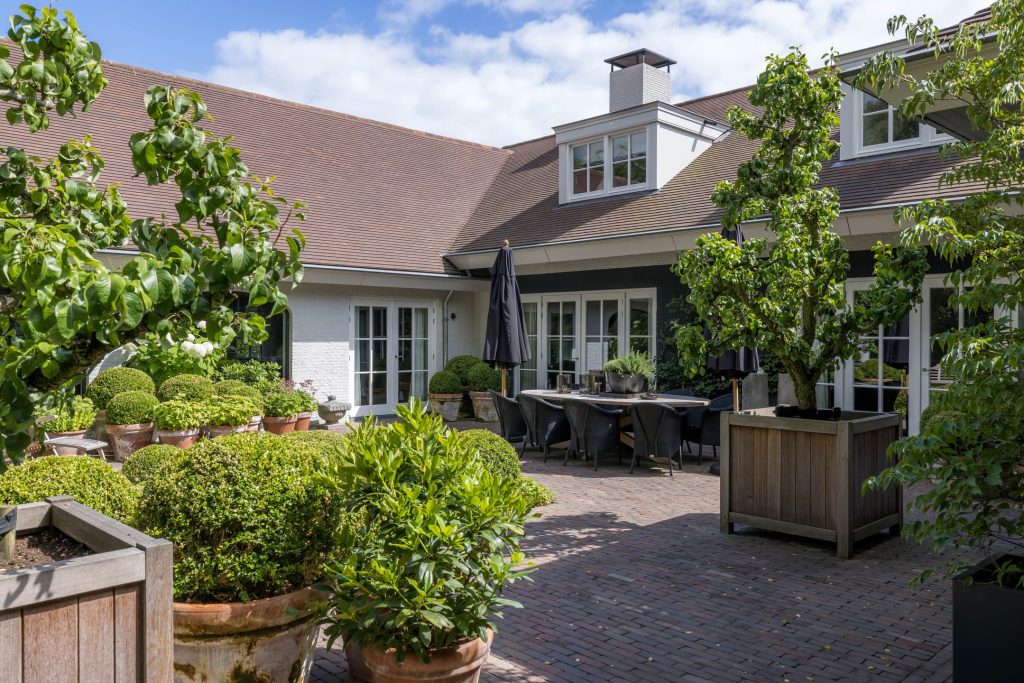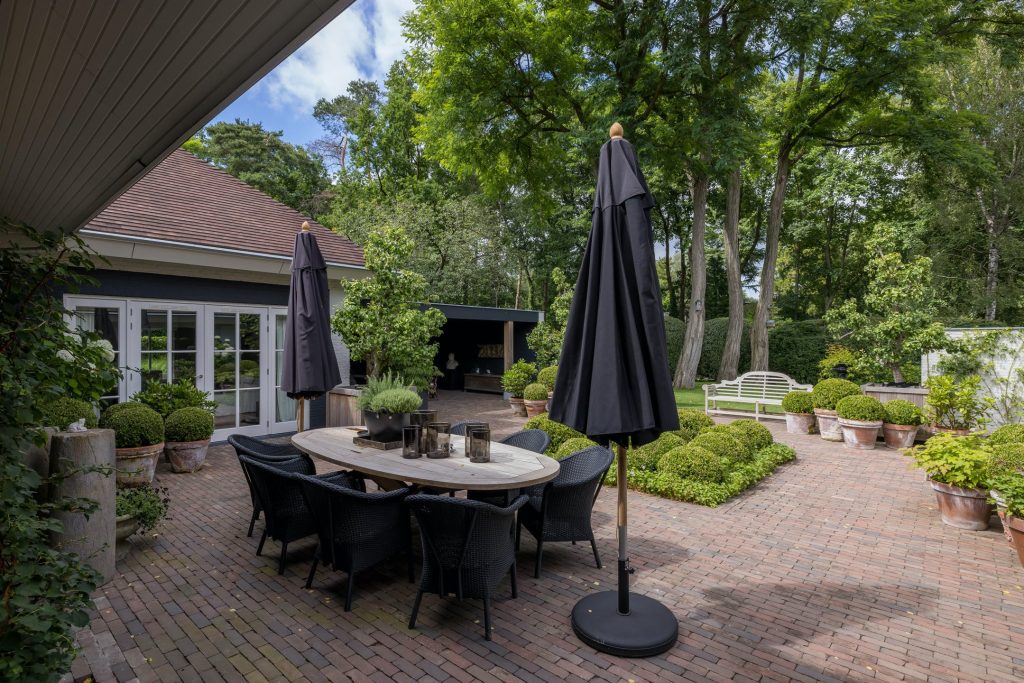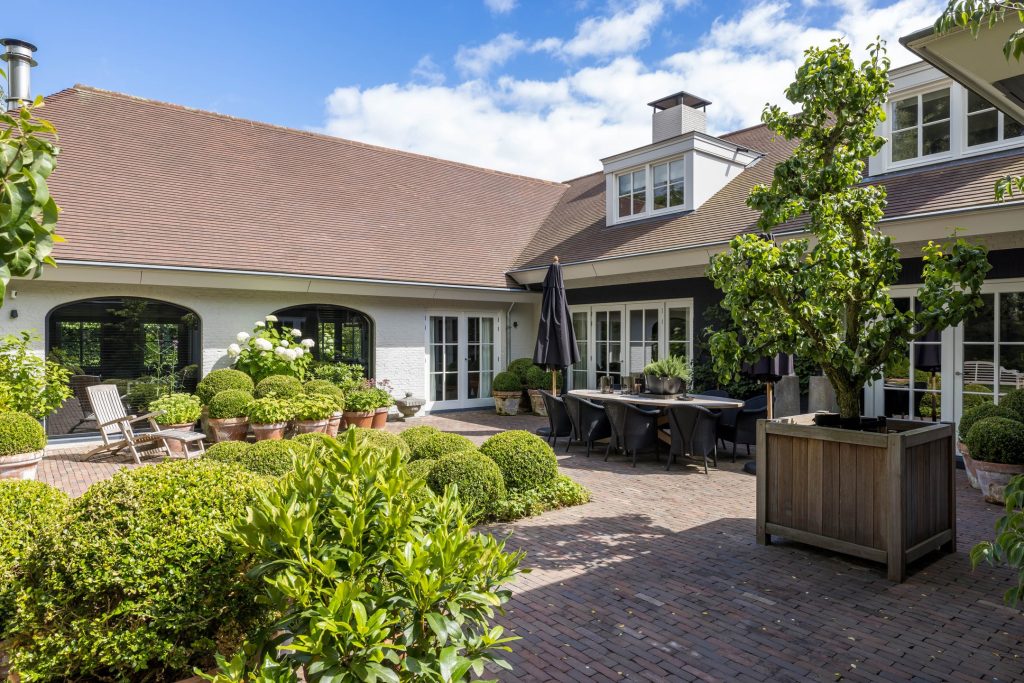 Vanuit de centrale hal komt u in de grote woonkeuken, voorzien van een ruim eet- en kookgedeelte. Openslaande tuindeuren zorgen voor optimaal contact met de tuin en een directe verbinding met het grote terras, zodat u bij mooi weer ook heerlijk buiten kunt eten. Uw blik valt direct op de designkeuken met een groot kook- en spoeleiland en een ruime kastenwand met koffiecorner. Alle benodigde inbouwapparatuur is van topkwaliteit — iets dat de echte kookliefhebber zeker zal aanspreken.