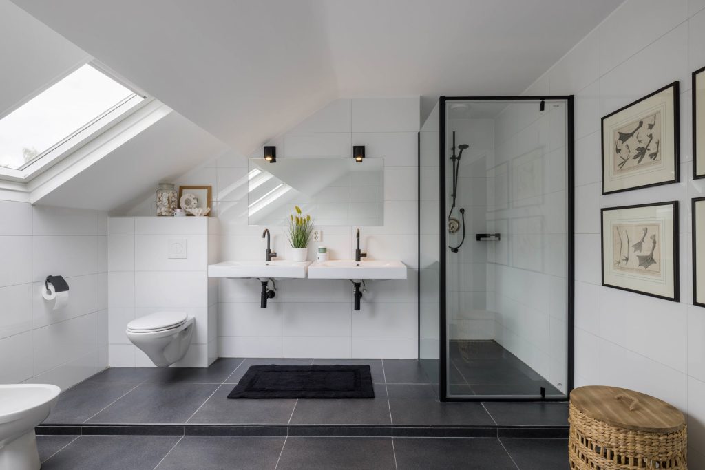 Via de trap in de hal komt u op de overloop. Hier bevinden zich vijf mooie slaapkamers, een (was)berging en een aparte toiletruimte. Alle vijf slaapkamers zijn voorzien van een dakkapel, bergruimte en een eigen badkamer. Vier badkamers zijn uitgerust met een douche en wastafel; de vijfde beschikt over een ligbad, aparte douche, toilet, bidet en een dubbele wastafel. Twee slaapkamers hebben daarnaast een extra grote berging, waardoor deze ook als kleedkamer ingericht kunnen worden.