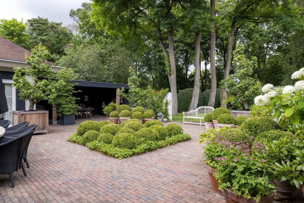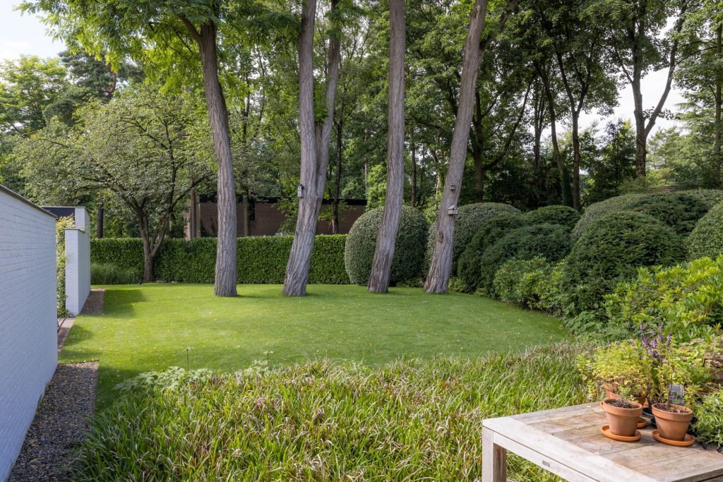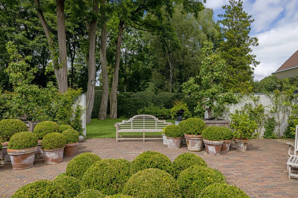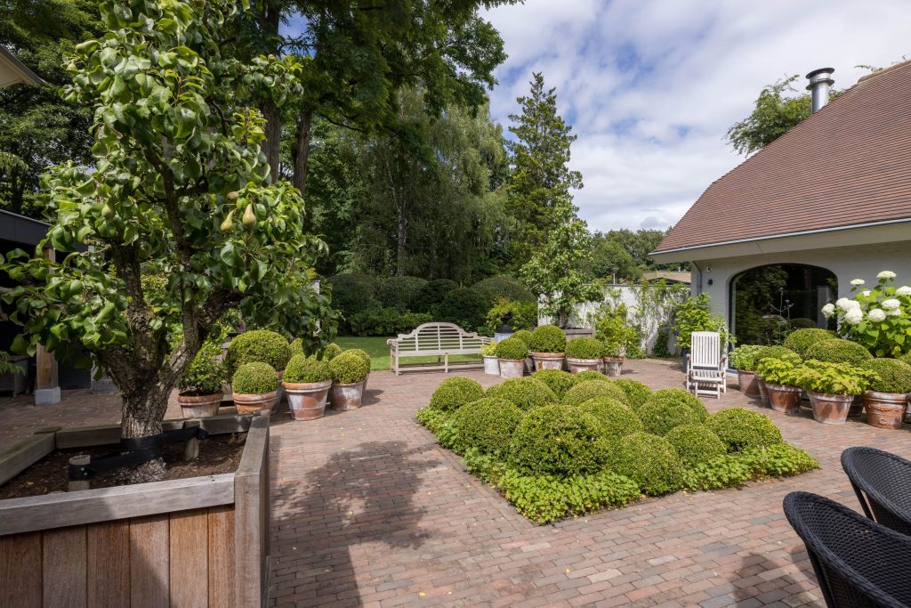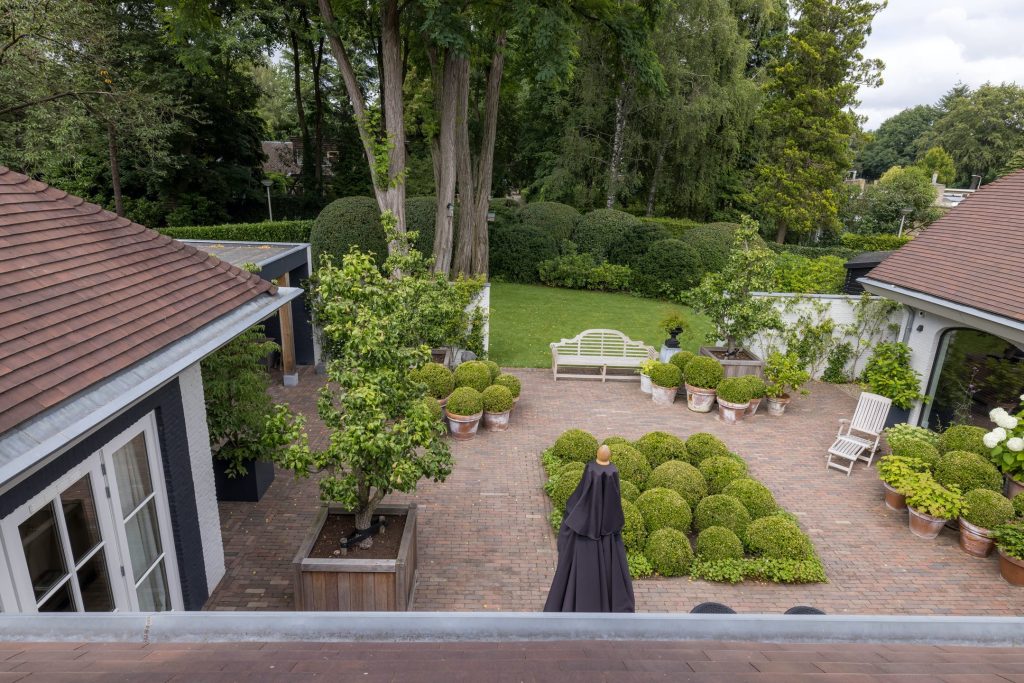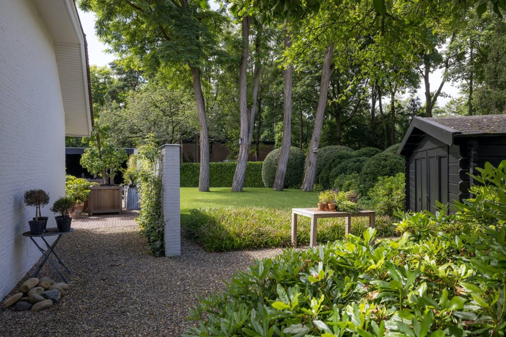 De villa staat op een perceel van maar liefst 1.779 m² op de hoek van de Top Naeffdreef en het Arthur van Schendelpark. Voor de garage is ruime parkeergelegenheid op eigen terrein en de rondom gelegen, parkachtige tuin is uitstekend onderhouden. U ziet siergrassen, beukenhagen, grote hortensia’s, diverse volgroeide bomen en een frisgroen gazon. Het grote terras wordt aan drie zijden omsloten door de villa en een overdekt terras. In het achterste deel zorgen volgroeide hoge bomen, het strakke gazon en de bolvormige beplanting in de brede border voor privacy en een prachtig uitzicht. Ook aan de rechterzijde van de woning is een extra terras gerealiseerd. Hier kunt u zich heerlijk beschut terugtrekken met een boek en genieten van deze bijzondere plek in Tilburg.