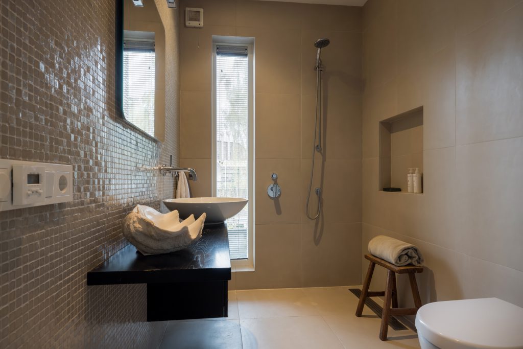 Verder zijn er twee badkamers op deze verdieping, een voor eigen gebruik en de andere voor thuiswonende kinderen of gasten. De stijlvolle badkamer aan de achterzijde is ingedeeld met een inloopdouche, toilet en een stijlvol wastafelmeubel. In de tweede badkamer heb je de beschikking over een bad, een douche, toilet en een wastafelmeubel.