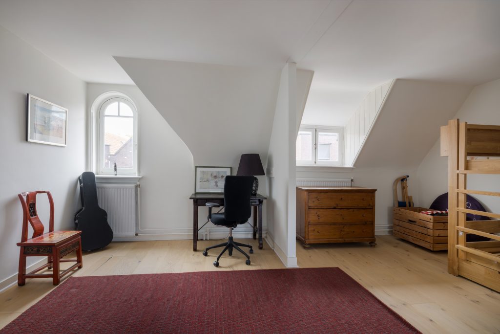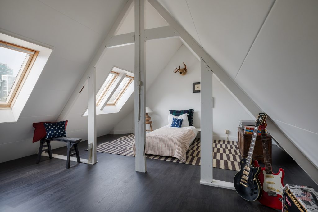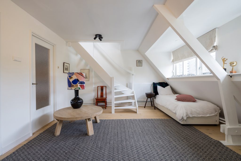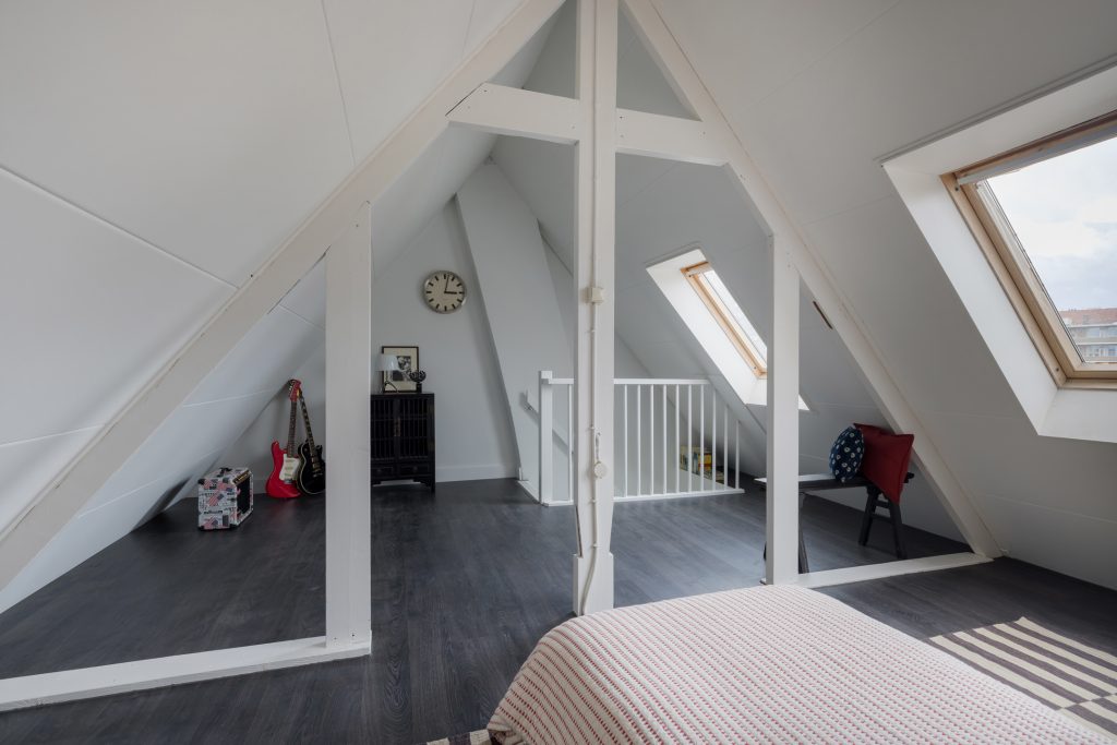Een derde verdieping? Jazeker! Via een vaste trap is nog een slaapkamer te bereiken, met drie dakramen aan de achterzijde en een goede stahoogte. Wordt dit een kinderkamer, een werkkamer of misschien wel een inspirerend atelier?
