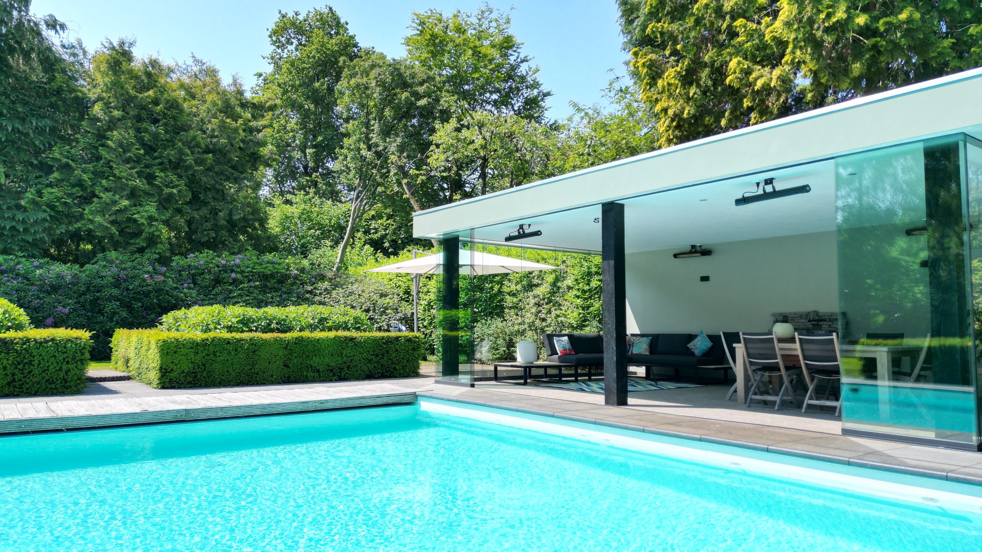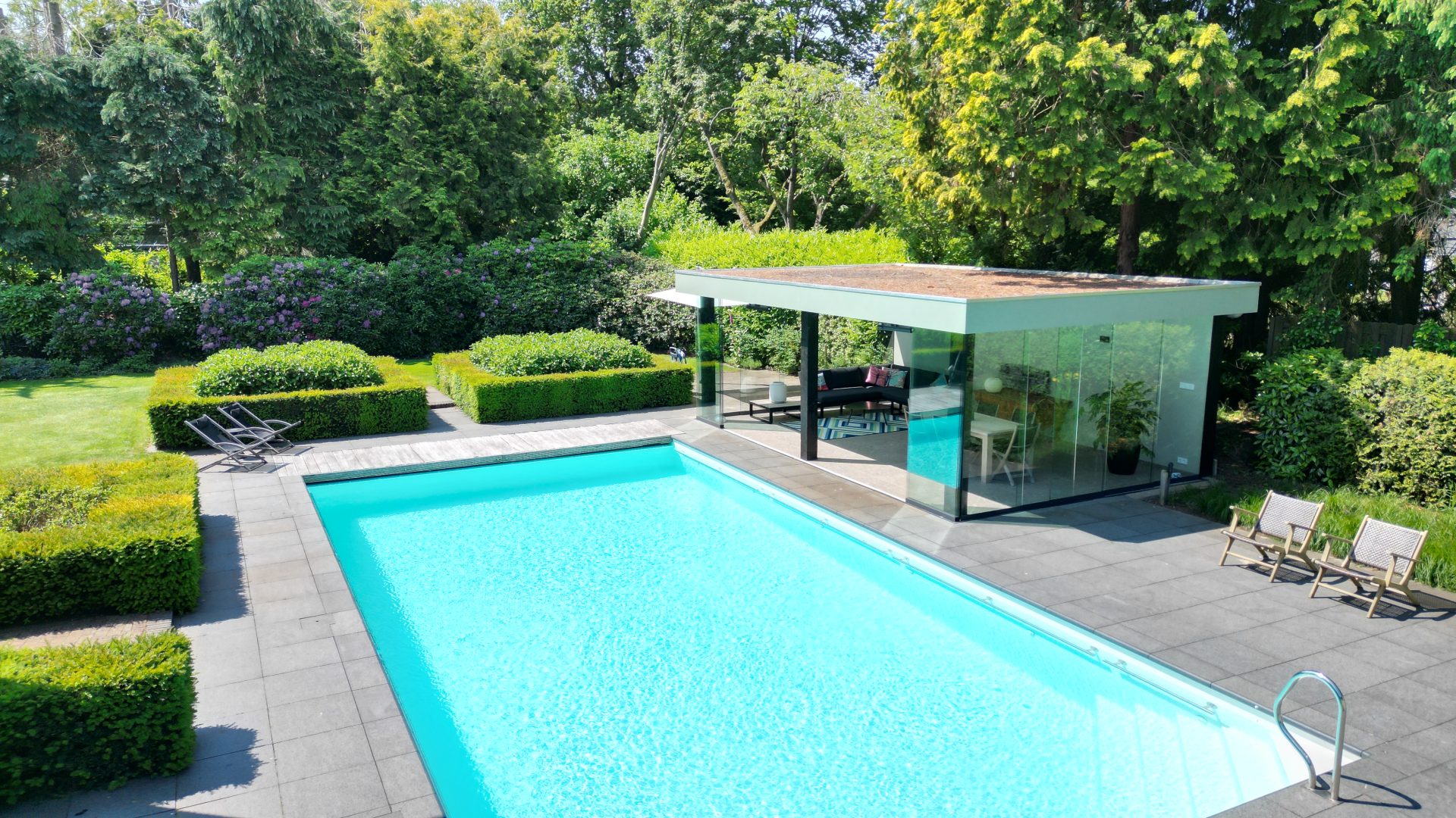 Daarnaast is er naast het zwembad een nieuw, vrijstaand poolhouse ( 8 x 5 meter) gebouwd, dat dienst doet als een heerlijke ontspanningsruimte en tevens multifunctioneel inzetbaar is. Met zijn ruime opzet en prachtig uitzicht op het zwembad biedt dit poolhouse een oase van rust en comfort. Het is de perfecte plek om te ontspannen na een verfrissende duik in het zwembad of om in alle rust te werken aan belangrijke projecten.