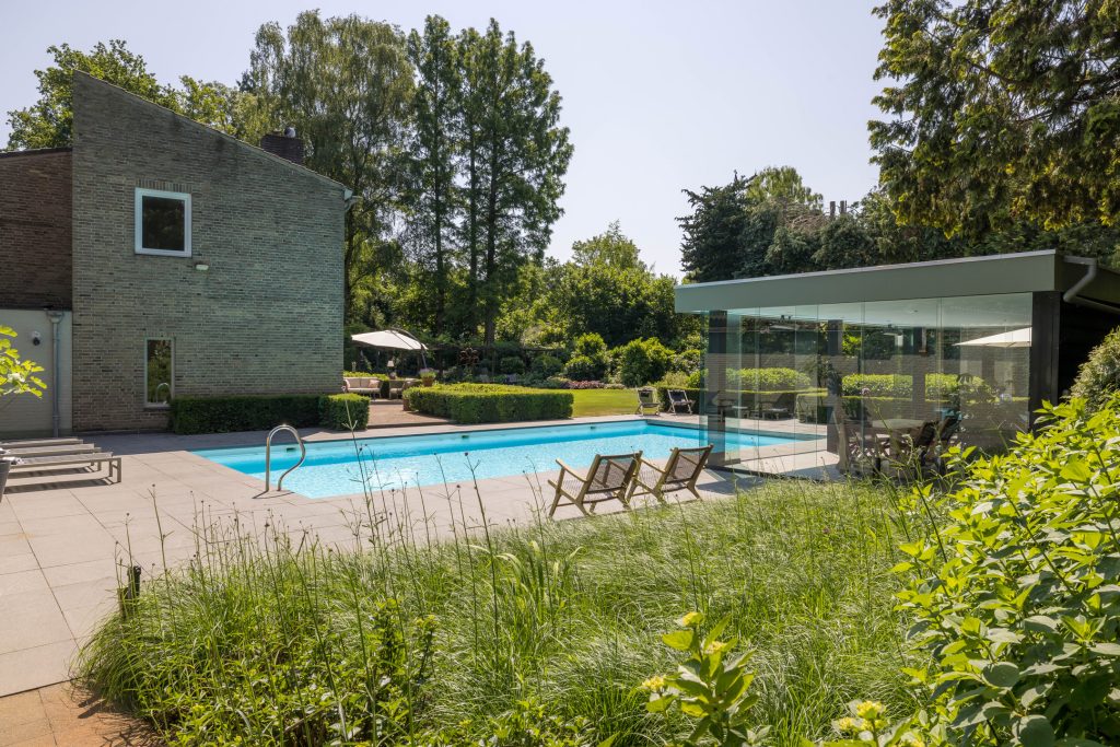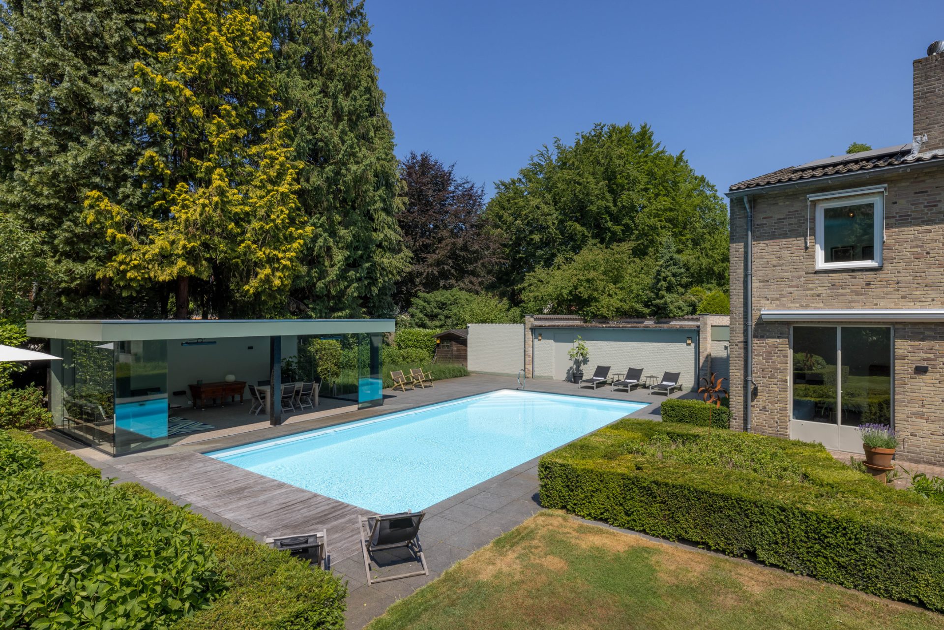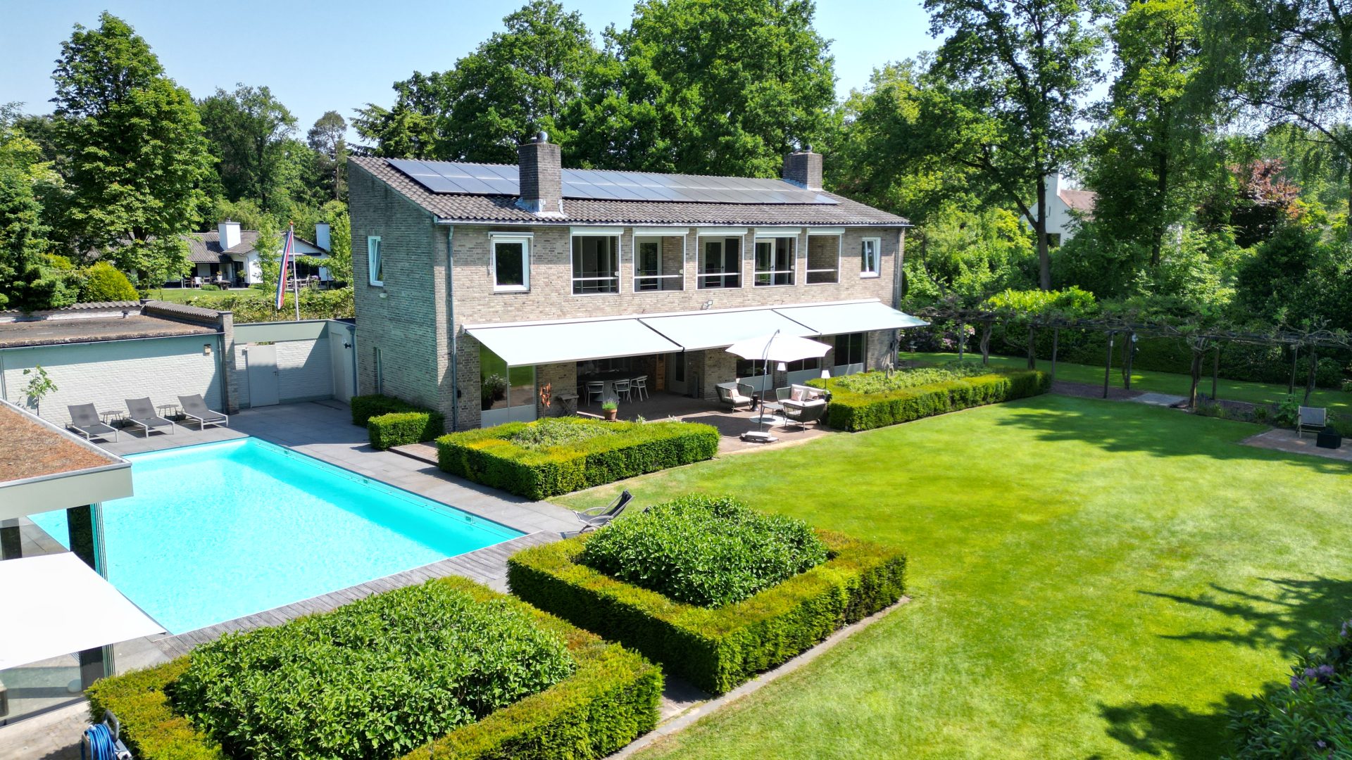 Buiten wordt u omringd door een prachtige tuin met volwassen hagen, borders en een sfeervolle pergola. Verschillende (overdekte) terrassen met fraaie sierbestrating bieden volop mogelijkheden om buiten te ontspannen en te genieten van het groen. Het zwembad, met een afmeting van 6 x 12 meter, is beschut gelegen en voorzien van een isolerend roldek. Bij het zwembad is een een extra kleedruimte gesitueerd met inloopdouche, wandcloset, wastafel. Grenzend aan de dubbele garage is een technische ruimte met de Cv-ketel, grondpomp en zwembadinstallatie gesitueerd.