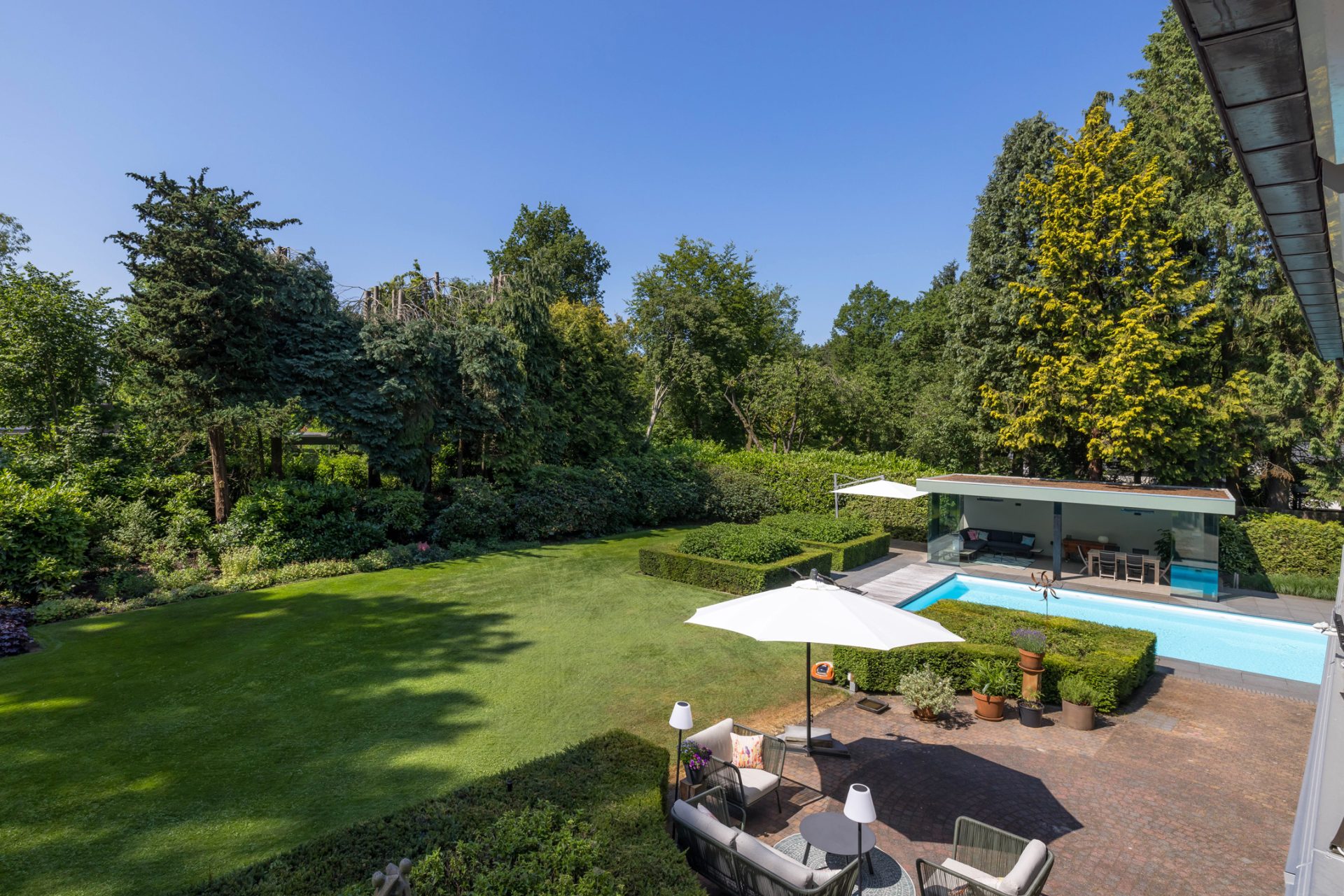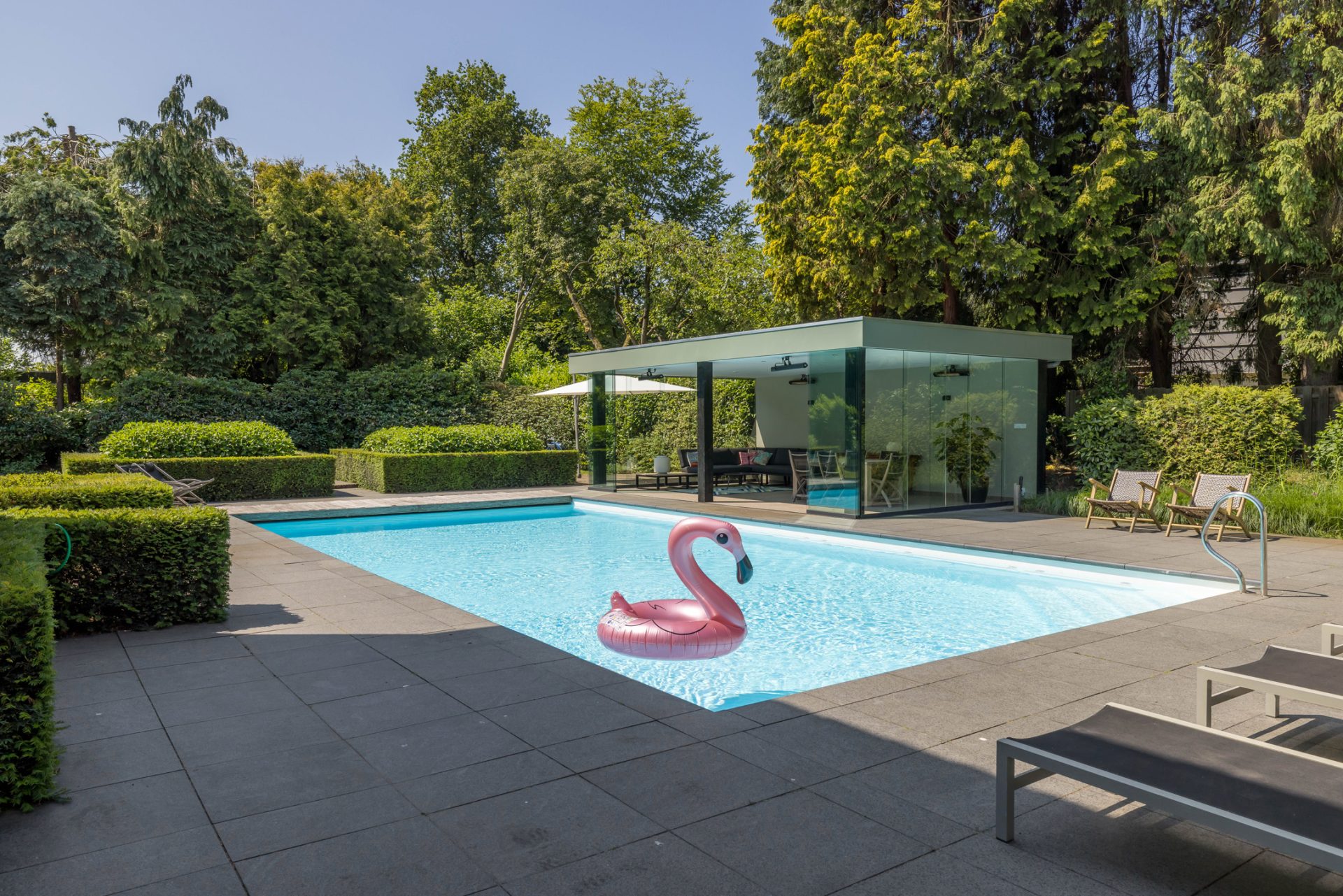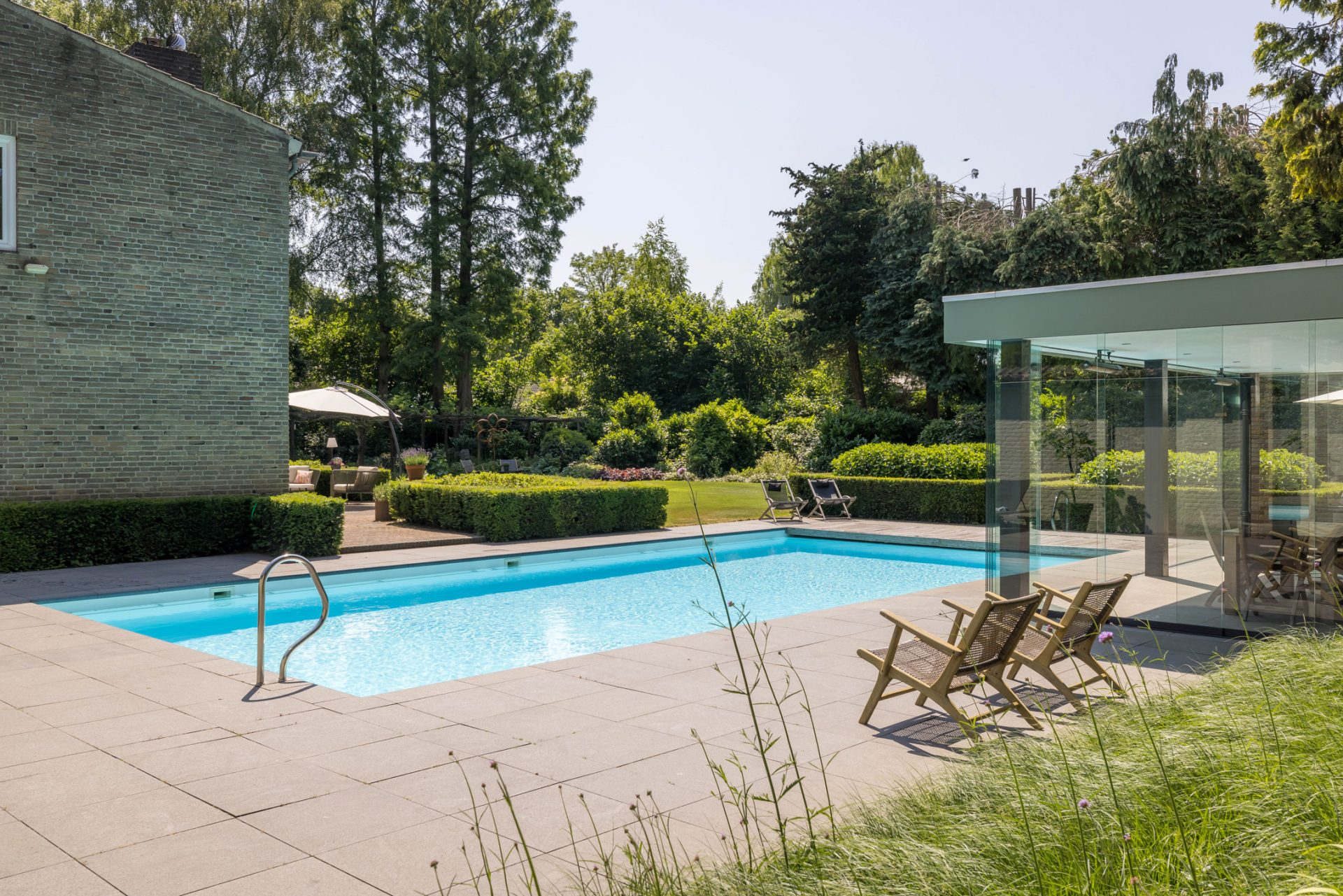 Buiten wordt u omringd door een prachtige tuin met volwassen hagen, borders en een sfeervolle pergola. Verschillende (overdekte) terrassen met fraaie sierbestrating bieden volop mogelijkheden om buiten te ontspannen en te genieten van het groen. Het zwembad, met een afmeting van 6 x 12 meter, is beschut gelegen en voorzien van een isolerend roldek. Bij het zwembad is een een extra kleedruimte gesitueerd met inloopdouche, wandcloset, wastafel. Grenzend aan de dubbele garage is een technische ruimte met de Cv-ketel, grondpomp en zwembadinstallatie gesitueerd.