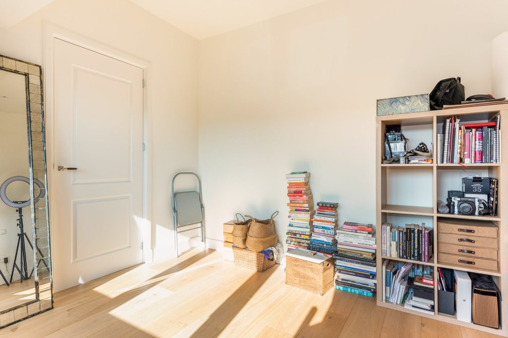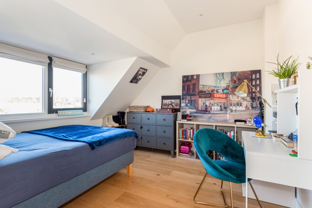 Trap naar de tweede verdieping, overloop, op deze verdieping bevinden zich twee goed formaat slaapkamers en luxe tweede badkamer van ligbad, douche, modern toilet, wastafelmeubel en vloerverwarming. Waskamer aan de voorzijde van de woning met de aansluitingen voor de wasmachine en droger.