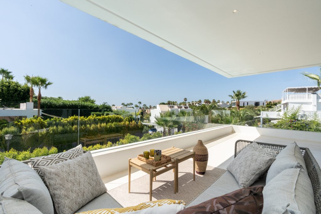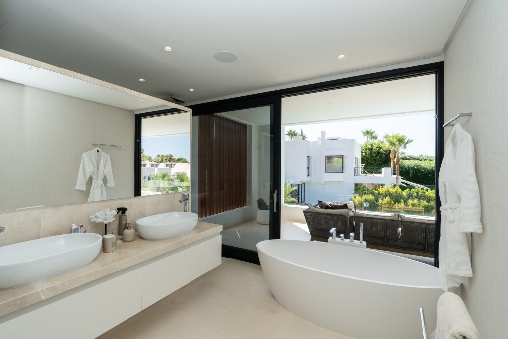 De bovenverdieping bestaat uit de hoofdslaapkamer met eigen badkamer en kleedruimte, en nog een gastenslaapkamer met eigen badkamer. Toegang tot een ruim privéterras met een tweede zwembad en chill-out ruimte.