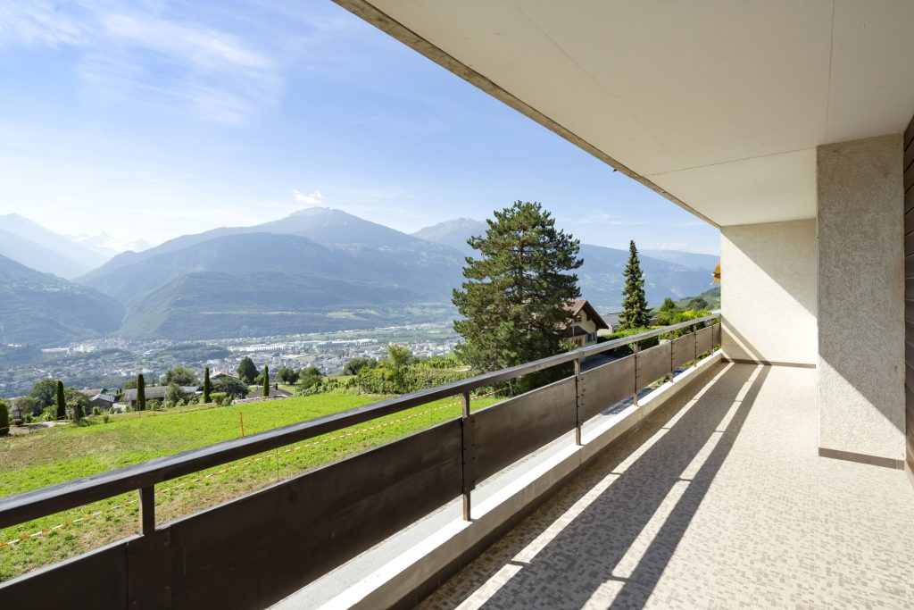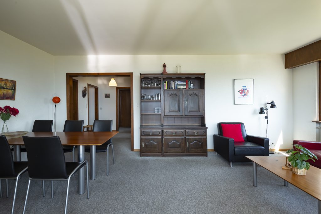 Ruim 4-kamerappartement op tweede verdieping met 3 slaapkamers, 2 badkamers, privé garage en groot balkon op het zuiden met prachtig uitgestrekt uitzicht. Aan de voorzijde bij de entree van het gebouw op de begane grond is toegang tot de privé garage.