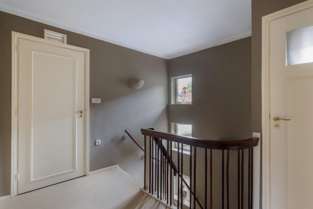 Via de statige bordestrap komt u op de overloop waaraan drie slaapkamers, een badkamer en een toiletruimte grenzen. Alle slaapkamers hebben een vaste (garderobe)kast en in een van kamers is de opstelling van de wasapparatuur.