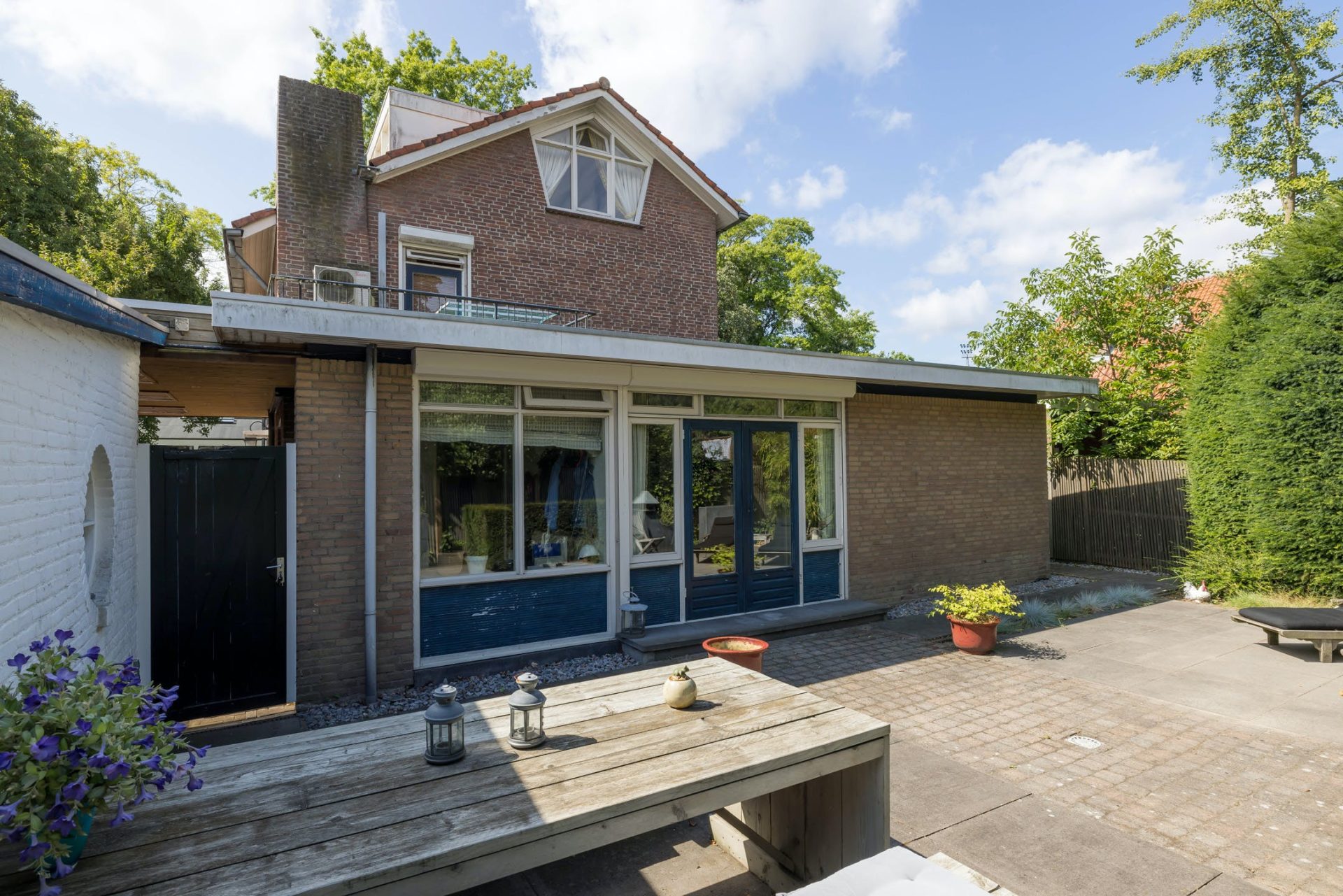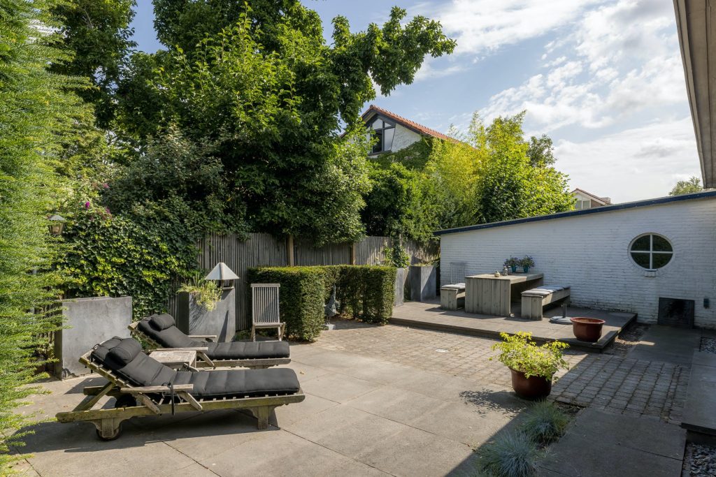 Deze jaren ’50 villa met verrassend veel ruimte staat op een perceel van 472m2. Op de oprit en onder de carport is ruime parkeergelegenheid en links van de garage is een poort naar de achtertuin. Een hoge haag zorgt voor privacy in de voortuin, het terras in de zijtuin en in de woonkamer. De achtertuin met twee grote terrassen en is een heerlijke plek om van deze prachtige plek in Eindhoven te genieten.