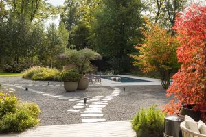 • Een indrukwekkende tuin met parkachtige allure, eeuwenoude bomen en wandelpaden