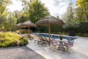 • Een verwarmd buitenzwembad, meerdere terrassen en een exclusief tuinhuis met bar