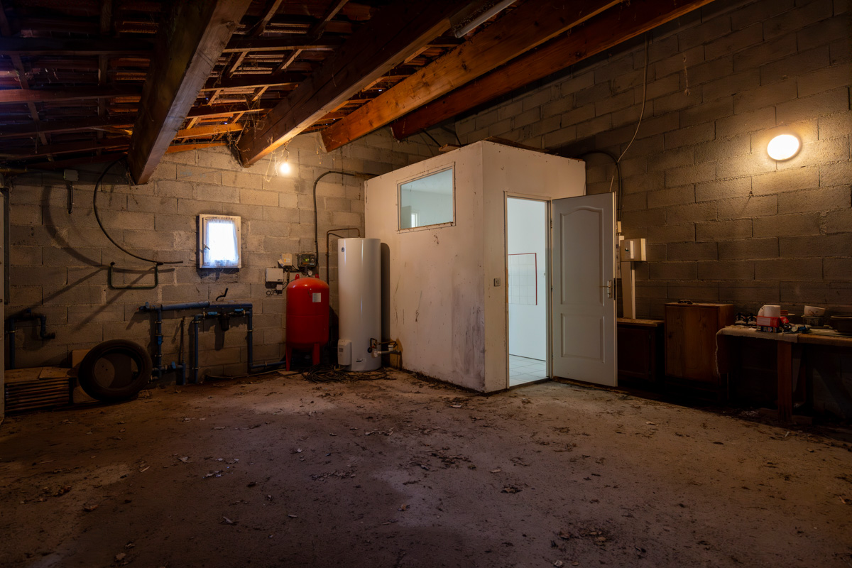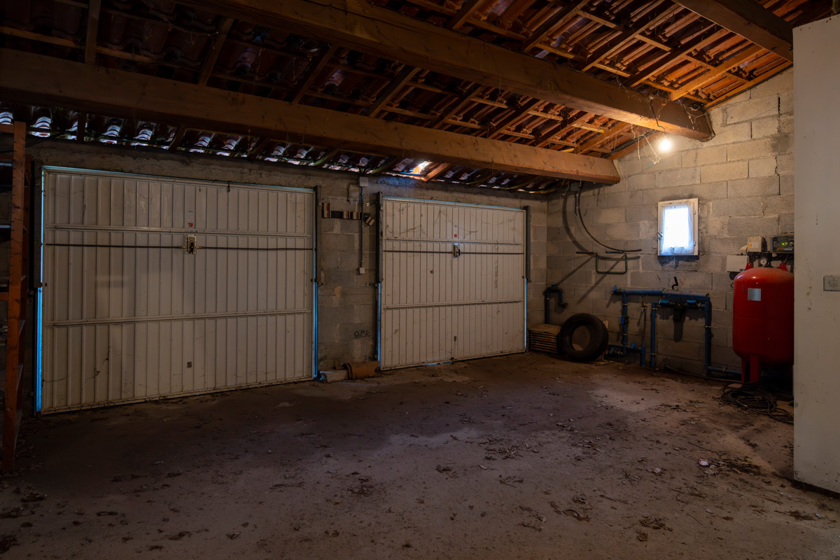 Inkomhal met WC; grote woonkamer met open keuken; bijkeuken. Toegang tot de dubbele garage.