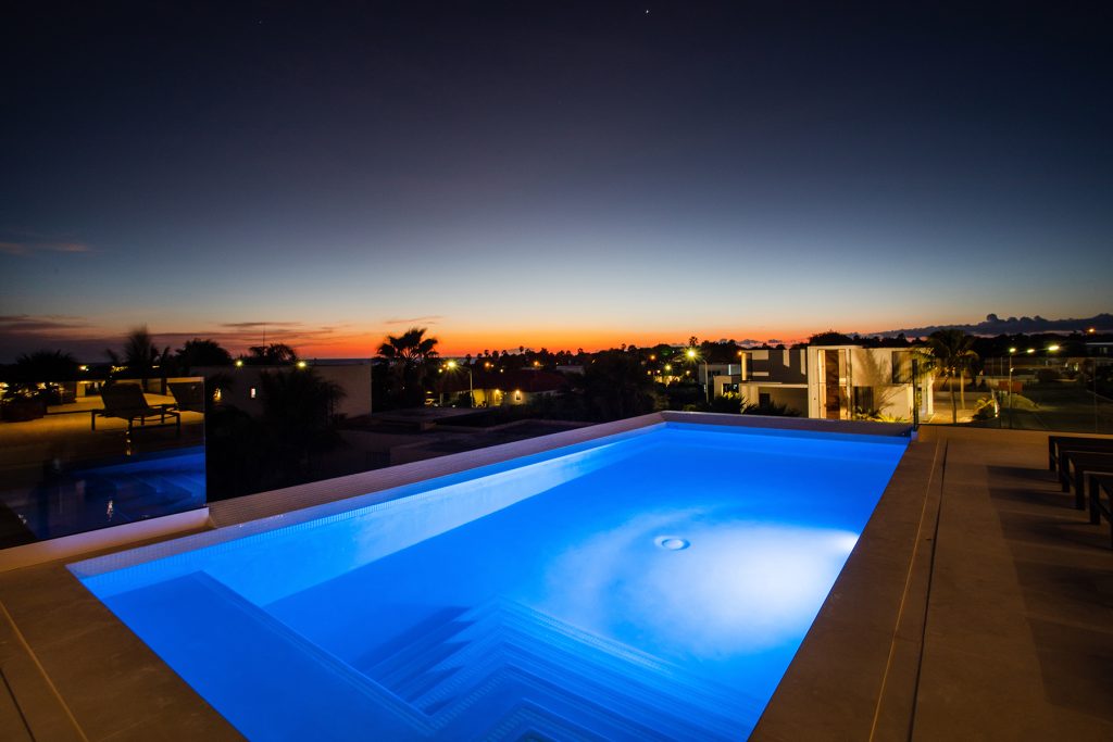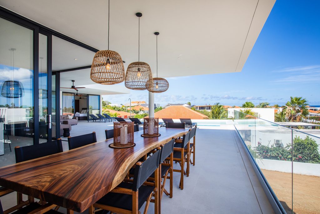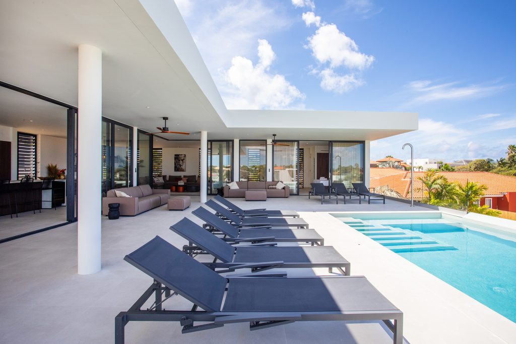 De opvallende woning met 6 slaapkamers en 6,5 badkamers beschikt over een zwembad, uitzicht over Vista Royal richting het strand van Jan Thiel en diverse loungeplekken. De recent gebouwde twee verdiepingen tellende woning van ongeveer 472 m² ligt op een kavel van 1.100 m².