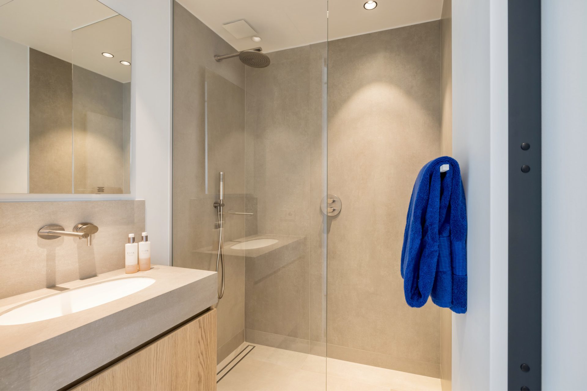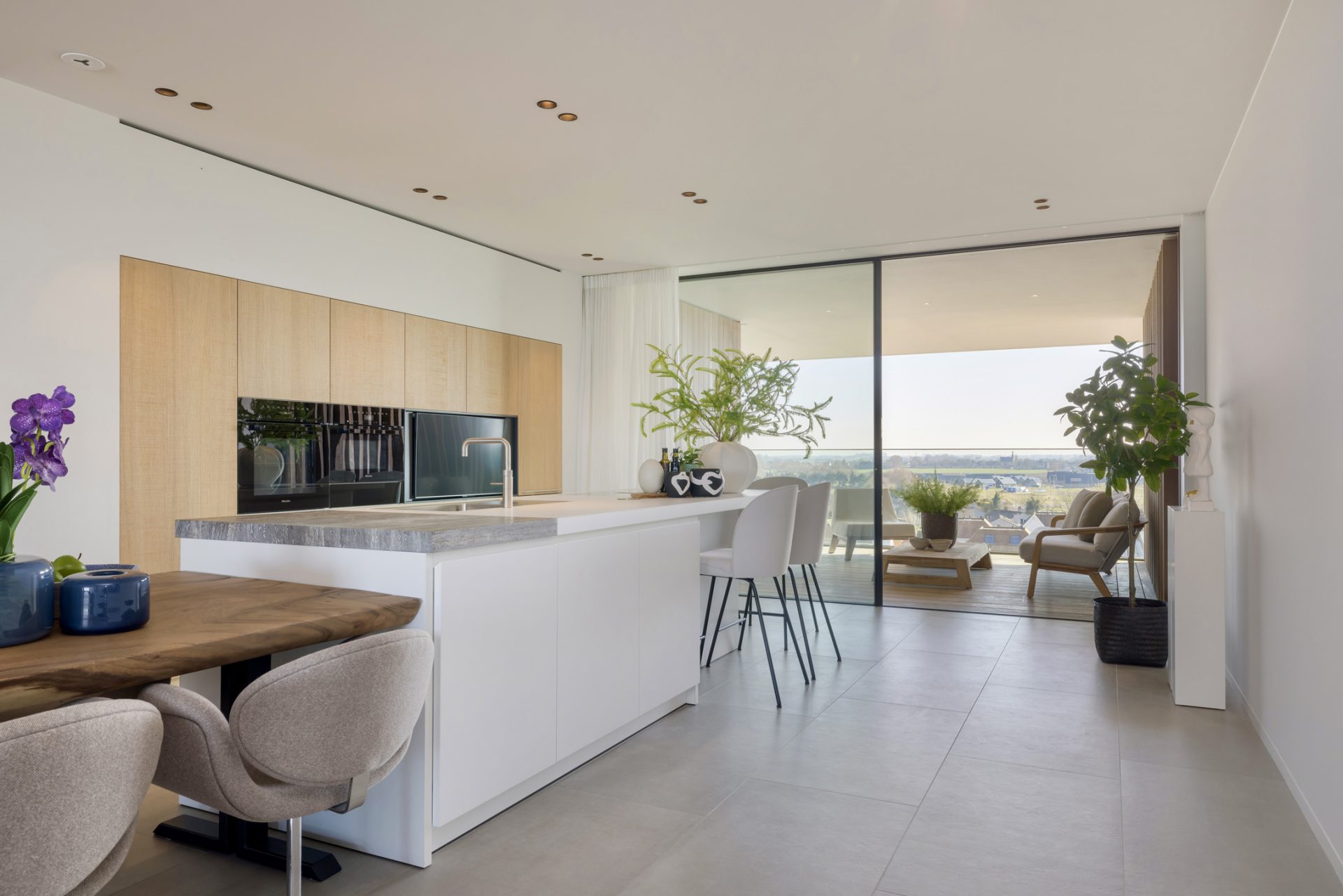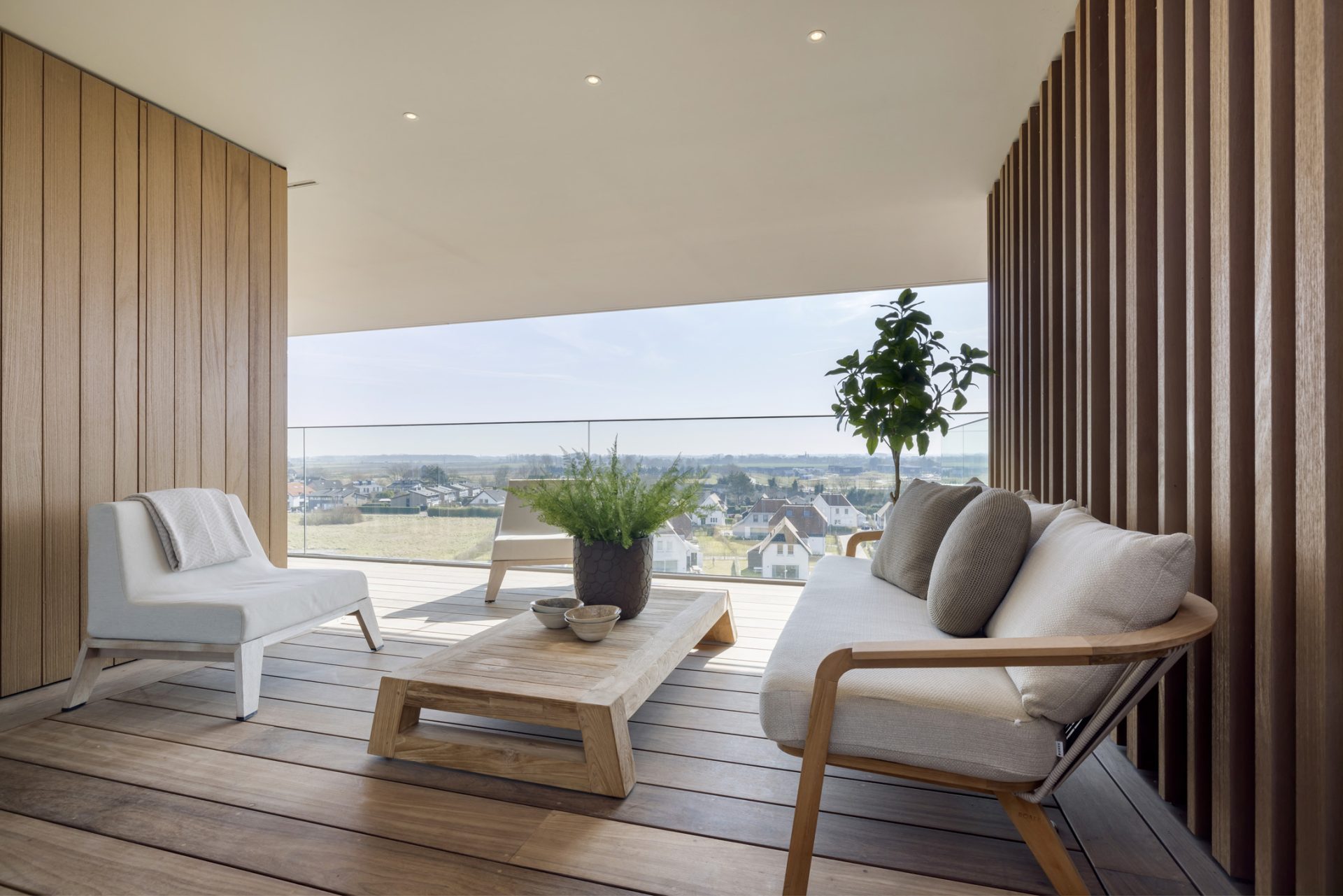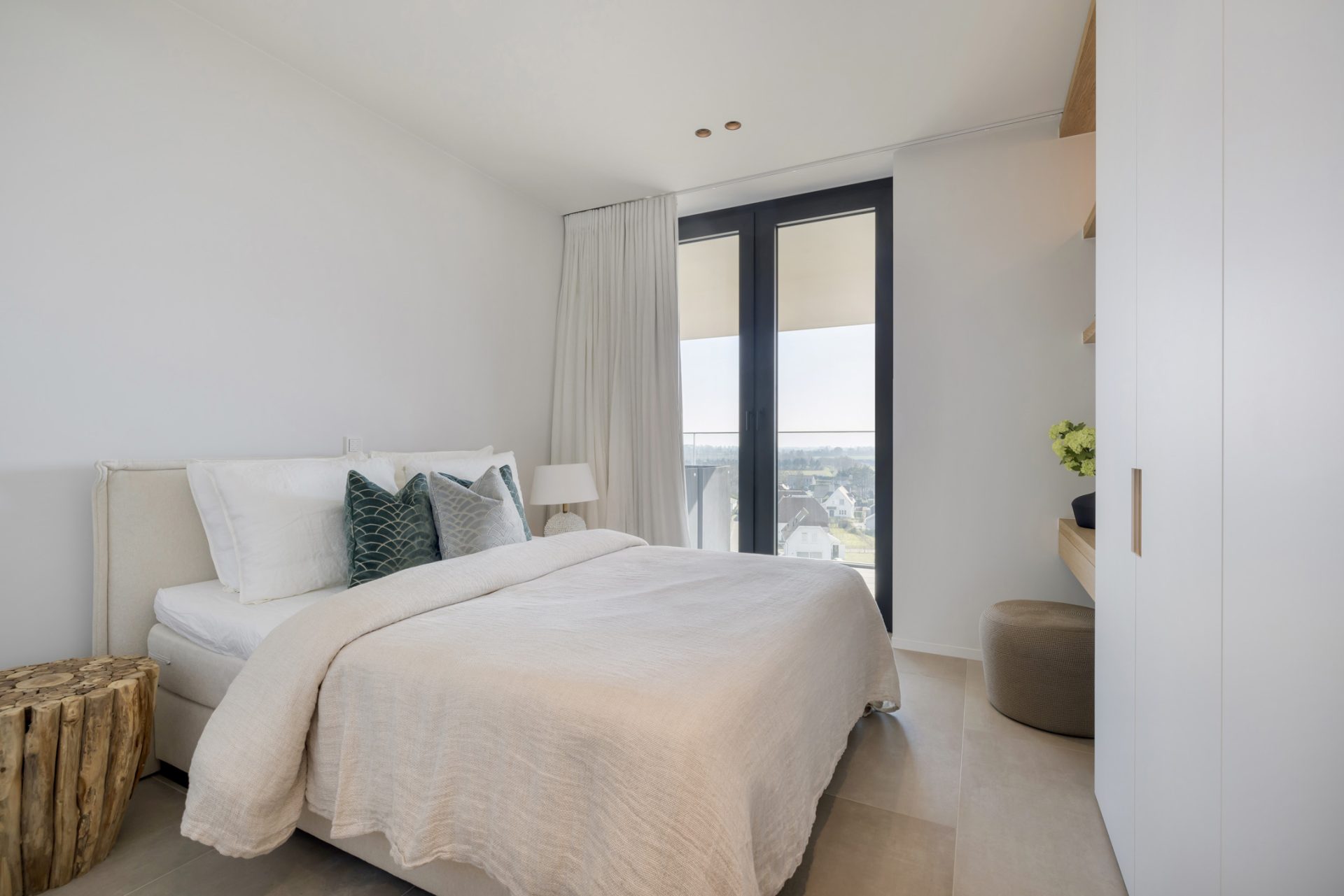 Het appartement zelf is een ode aan modern vakmanschap. De materialen zijn met zorg gekozen, van de op maat gemaakte keuken met hoogwaardige apparatuur tot de stijlvolle details in de living met een gashaard. De twee ruime slaapkamers beschikken over een privé-badkamer en bieden maximale privacy voor u en uw gasten. De grote raampartijen halen het natuurlijke licht royaal binnen en vormen een naadloze overgang tussen binnen en buiten. Tegelijkertijd garandeert het architectonische ontwerp van Govaert & Vanhoutte een harmonieuze inbedding in het duinlandschap.