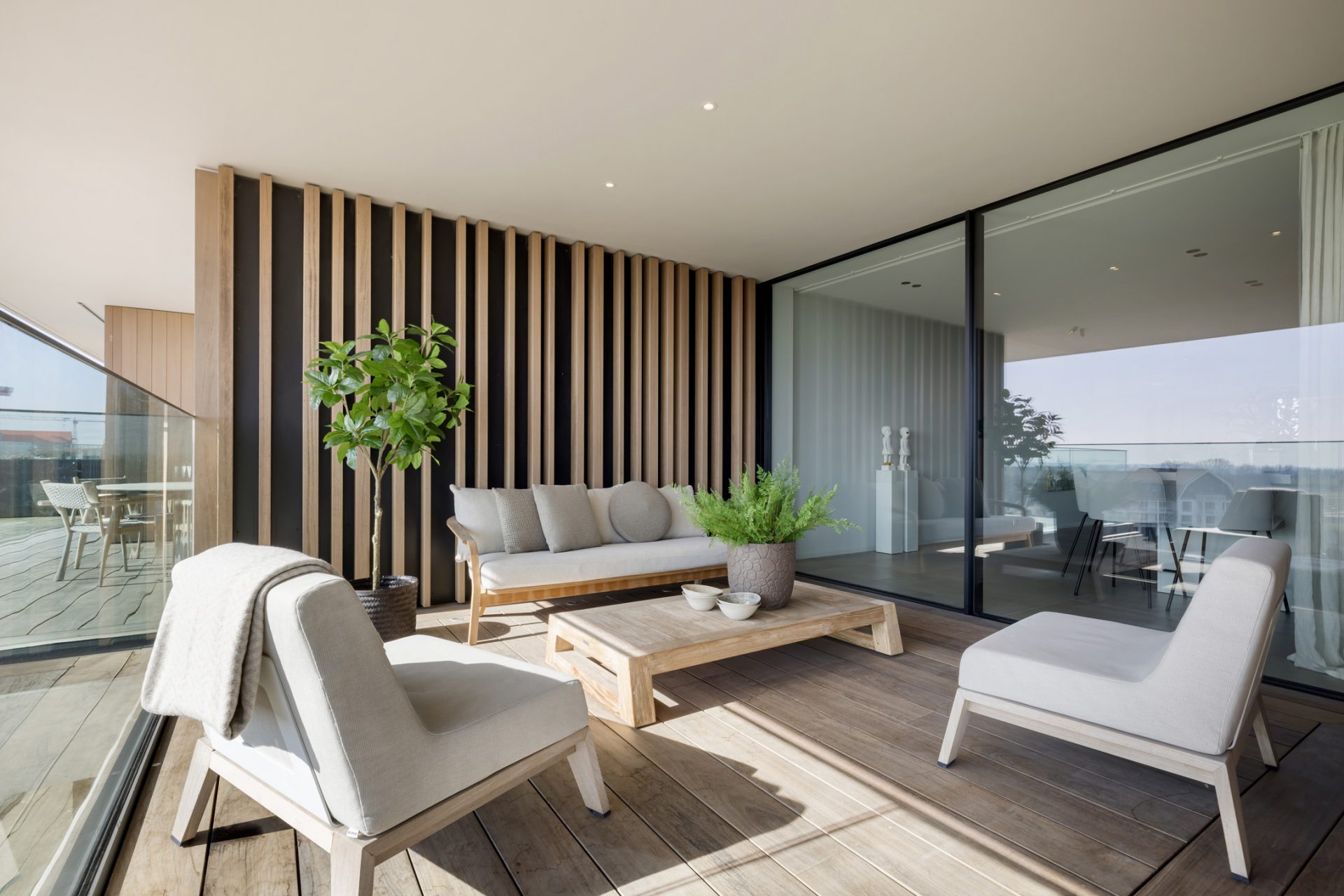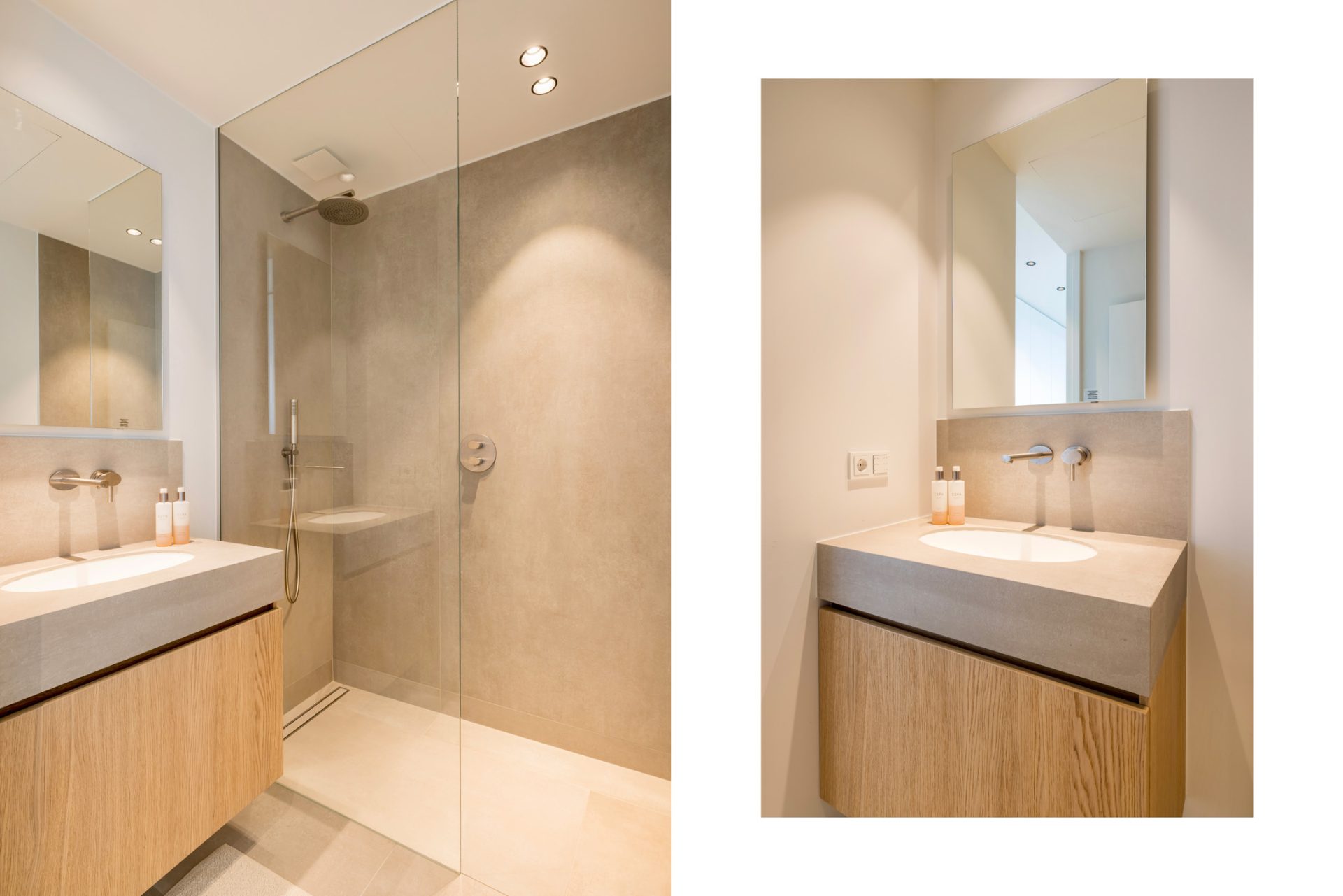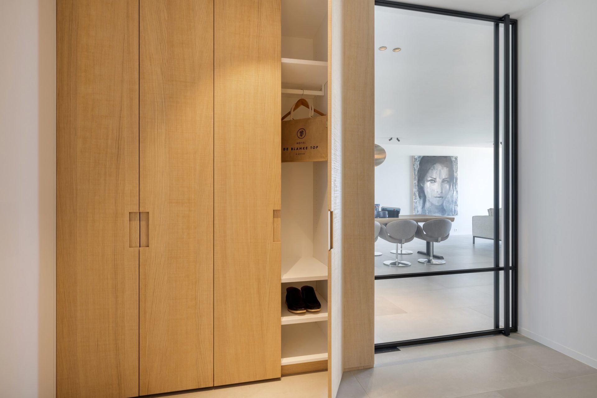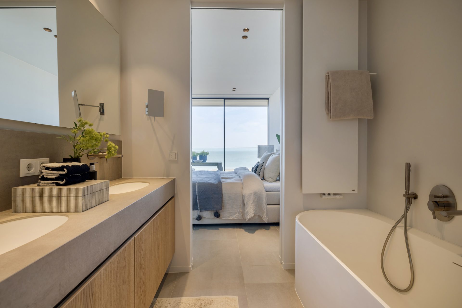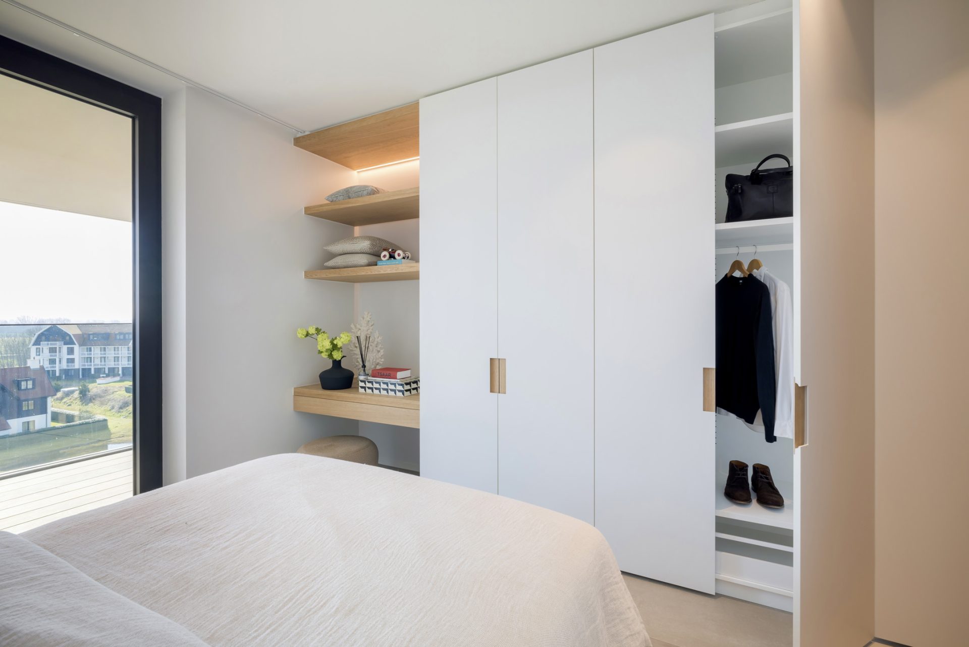 Het appartement zelf is een ode aan modern vakmanschap. De materialen zijn met zorg gekozen, van de op maat gemaakte keuken met hoogwaardige apparatuur tot de stijlvolle details in de living met een gashaard. De twee ruime slaapkamers beschikken over een privé-badkamer en bieden maximale privacy voor u en uw gasten. De grote raampartijen halen het natuurlijke licht royaal binnen en vormen een naadloze overgang tussen binnen en buiten. Tegelijkertijd garandeert het architectonische ontwerp van Govaert & Vanhoutte een harmonieuze inbedding in het duinlandschap.