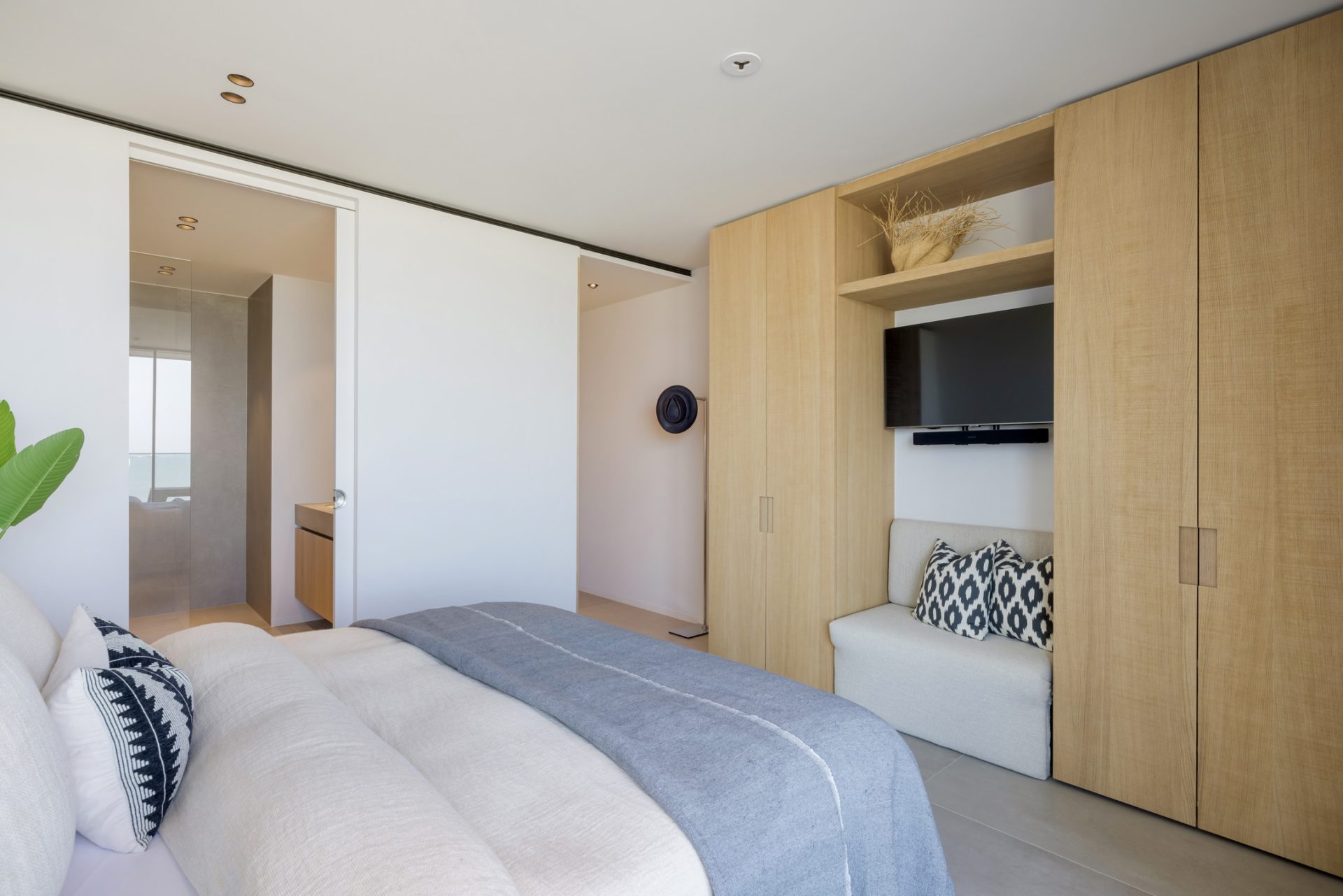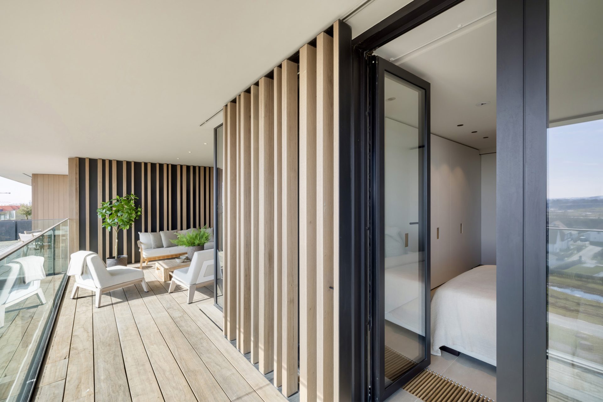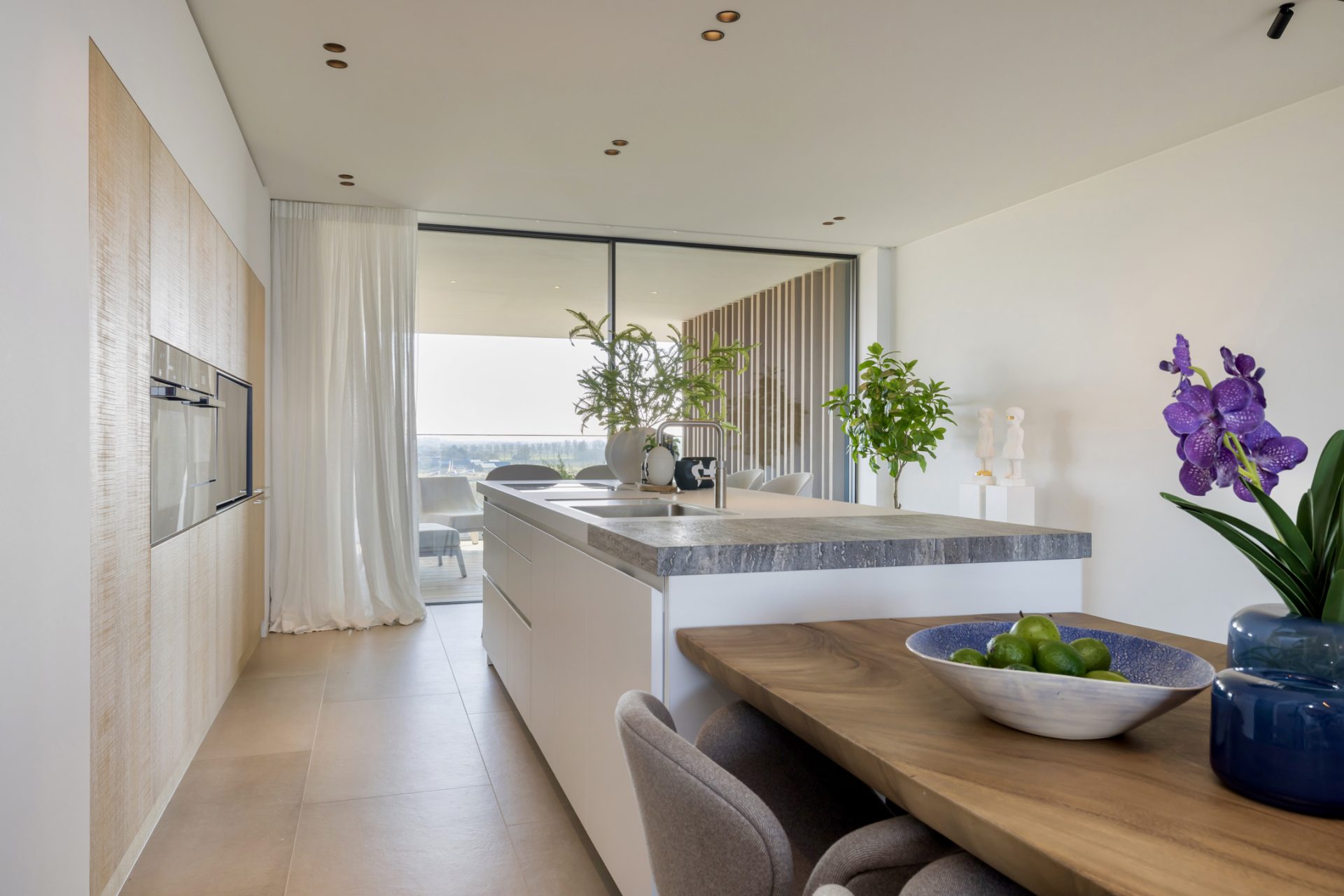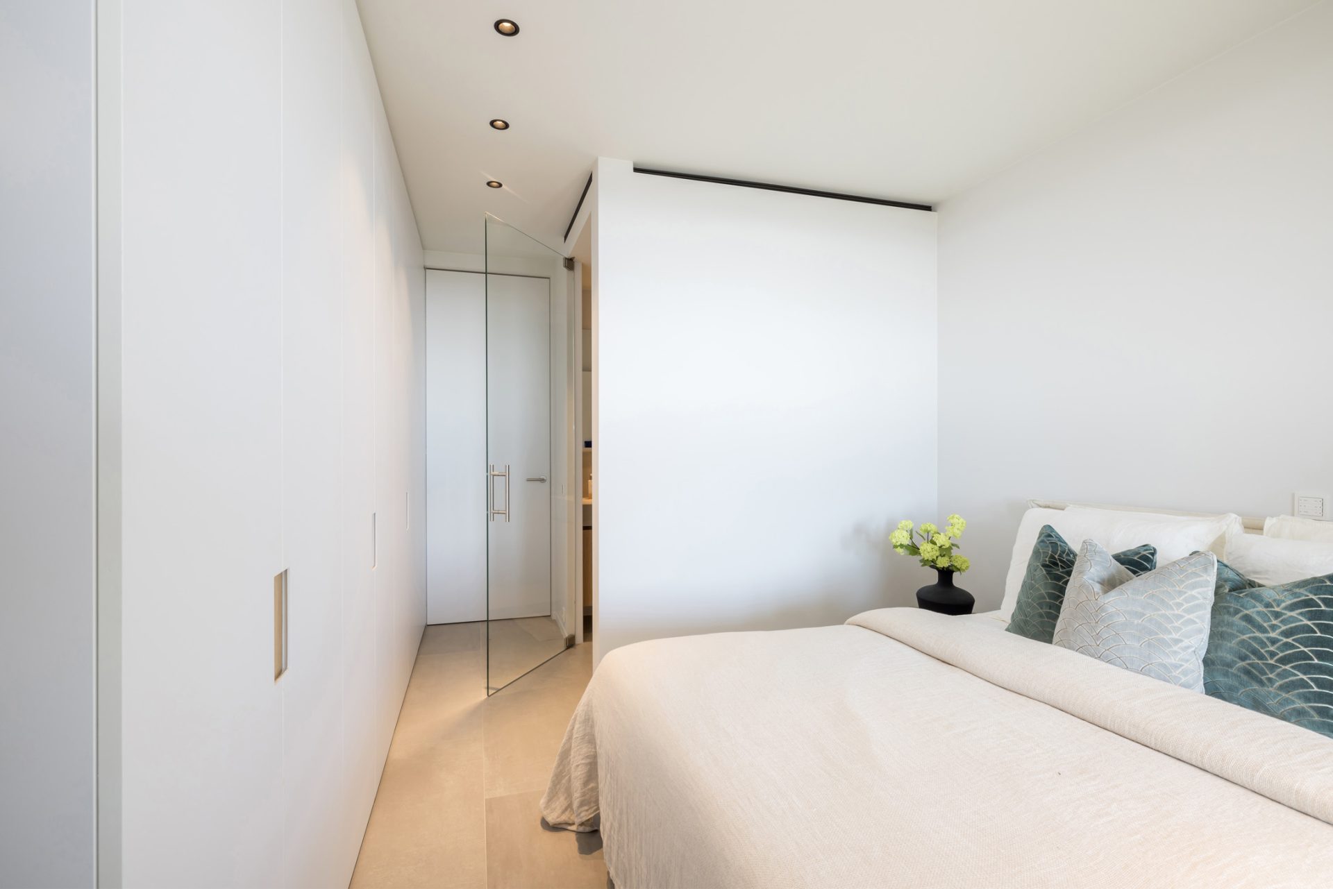 Het appartement zelf is een ode aan modern vakmanschap. De materialen zijn met zorg gekozen, van de op maat gemaakte keuken met hoogwaardige apparatuur tot de stijlvolle details in de living met een gashaard. De twee ruime slaapkamers beschikken over een privé-badkamer en bieden maximale privacy voor u en uw gasten. De grote raampartijen halen het natuurlijke licht royaal binnen en vormen een naadloze overgang tussen binnen en buiten. Tegelijkertijd garandeert het architectonische ontwerp van Govaert & Vanhoutte een harmonieuze inbedding in het duinlandschap.