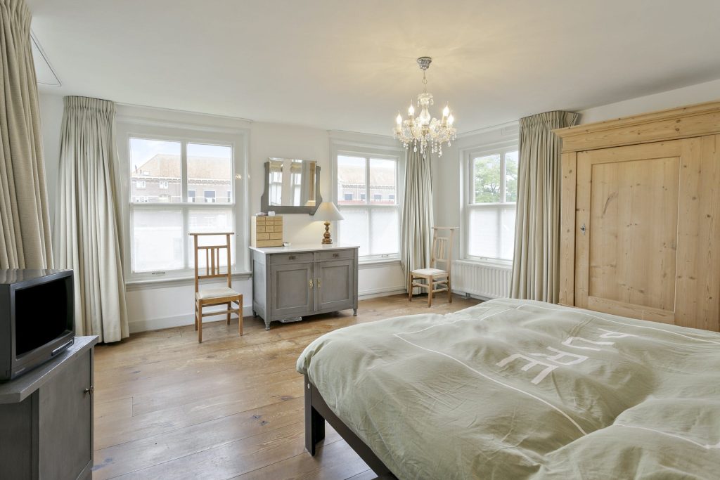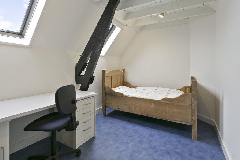 De sierlijke trapopgang geeft toegang tot een overloop met kleedruimte met wastafel en de ouderslaapkamer. De verdieping is voorzien van een houten vloer en stucwerk wanden. De slaapkamer ligt aan de achterzijde en is heerlijk licht door de vele raampartijen. Vanaf de overloop is er een trapopgang naar een overloop met inbouwkast met opstelling CV-ketel, een 2e badkamer met toilet en douche en een zeer ruime kamer aan de voorzijde met separate slaapkamer. De kamer heeft een hoge nok met spanten in zicht, een bergvliering, dakkapel en dakraam en een keukenblokje. Vanuit deze kamer is een aparte slaapkamer bereikbaar met 2 dakramen. De kamers zijn afgewerkt met een linoleumvloer.