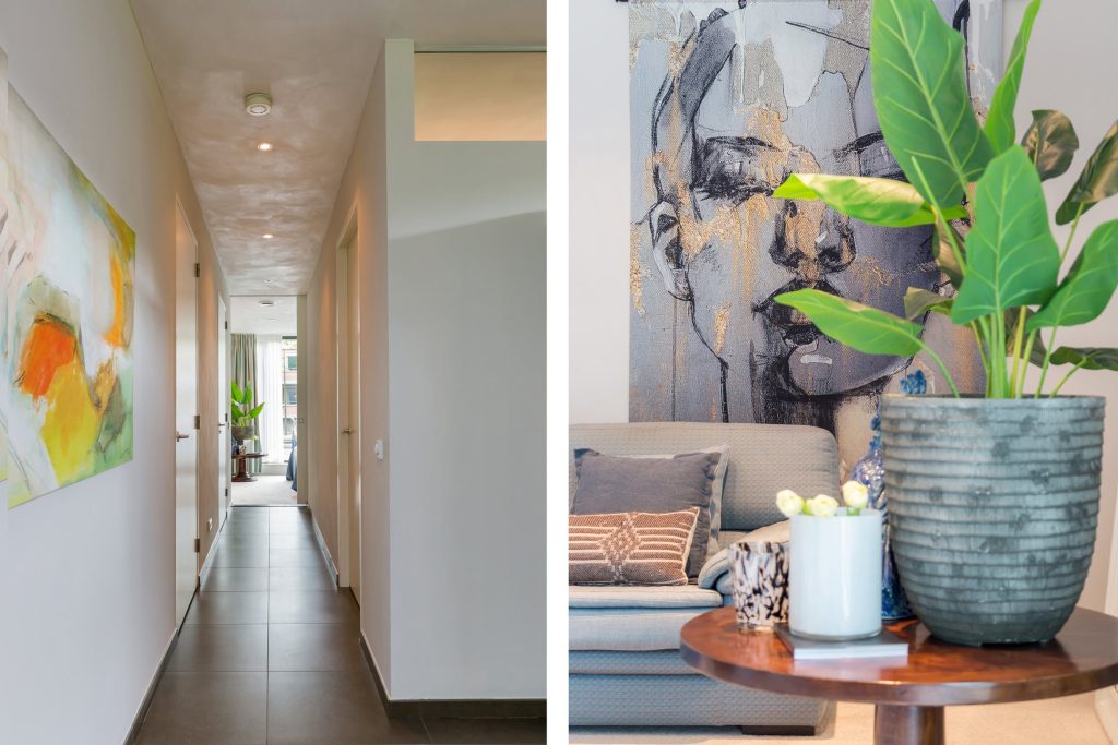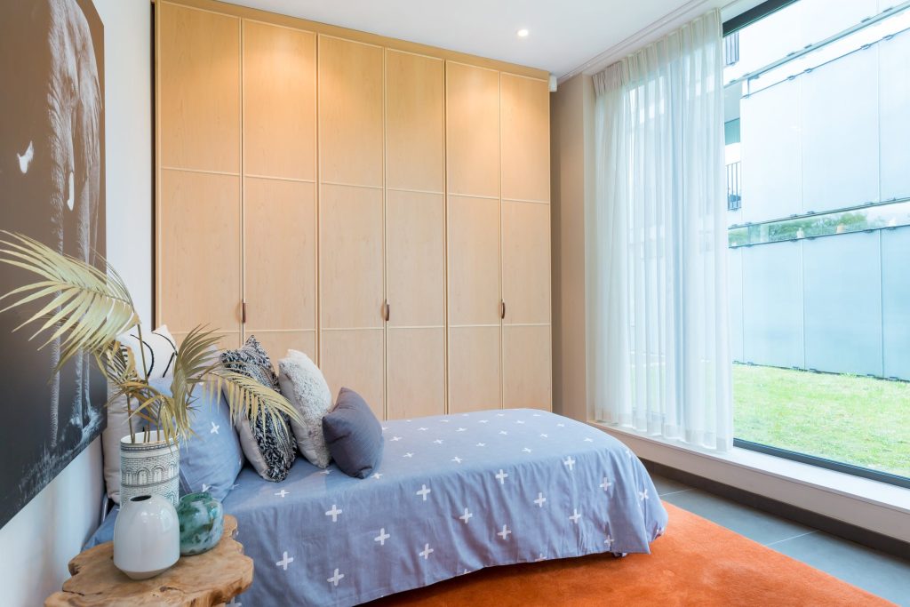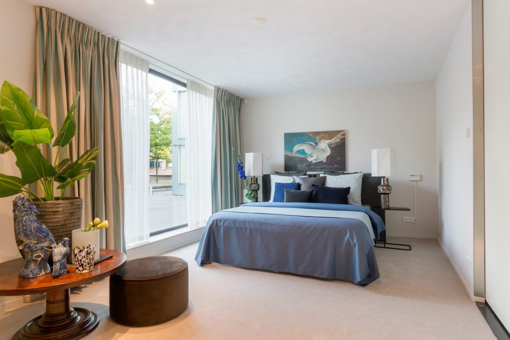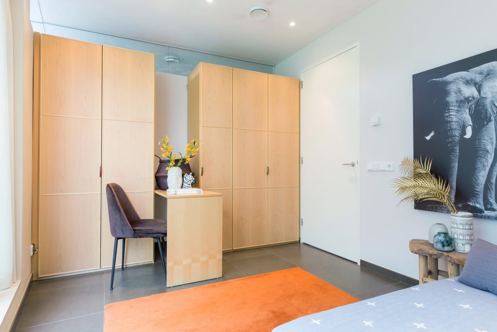 Het appartement heeft twee slaapkamers, gesitueerd aan de koele noord- en oostzijde. De ruime masterbedroom is ruim 6 meter breed, tapijt op de vloer en een stucplafond met inbouwverlichting. Er is, naast een tweepersoonsbed, ruimte voor een zithoek want de op maat gemaakte garderobekasten zijn in de tweede slaapkamer gesitueerd. In deze slaapkamer ligt, net als in de rest van het appartement, een plavuizenvloer.
