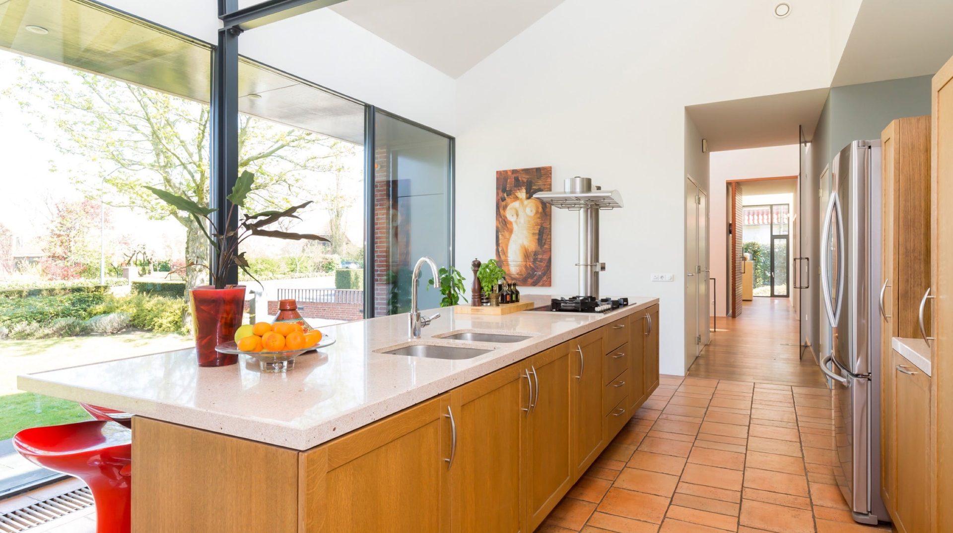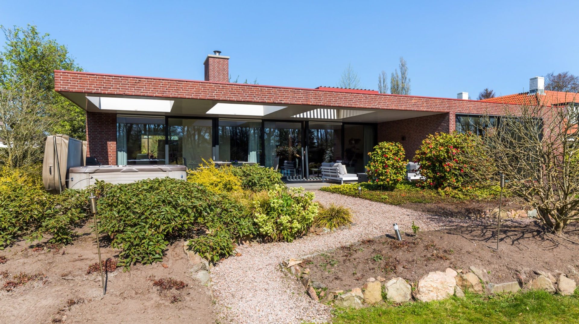 Aan de autoluwe Vrachelsedijk staat deze onder architectuur gebouwde villa met alle denkbare luxe en prachtig uitzicht op de parkachtige tuin. Met vier(slaap)kamers, twee badkamers, tv-kamer, studeerkamer en een imposante woonkamer met aangrenzende woonkeuken is dit een plek om volop van te genieten. Het souterrain met dubbele inpandige garage voor meerdere auto’s en de fitnessruimte maken de villa meer dan compleet.