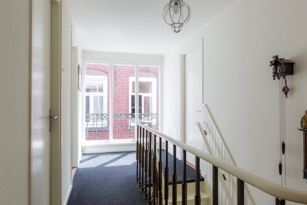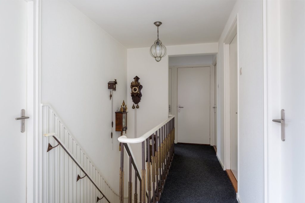 Op de overloop bevinden zich een inbouwkast (0,95 breed en 0,5 m diep) en de trap naar de bovenste etage.