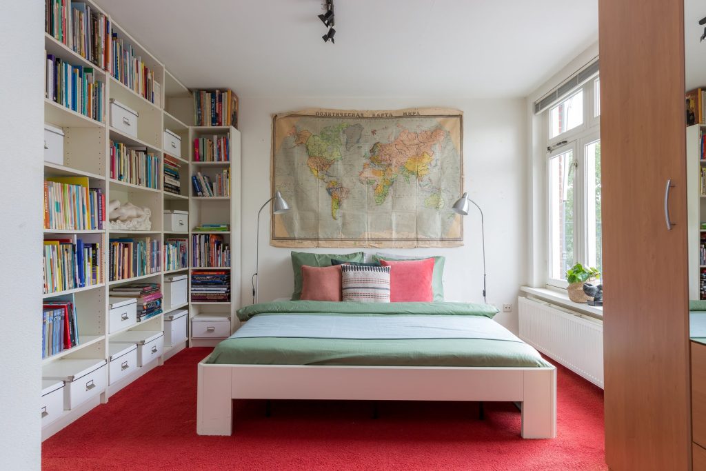 Slaapkamer 3 meet 4,5 m x 3,45 m, met een inbouwkast.