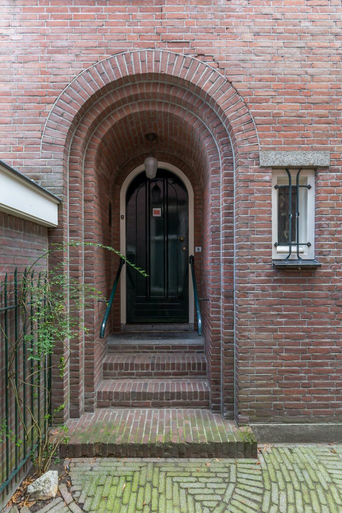 De voortuin is ondiep en varieert van 1 meter tot 2 meter. De bewoner heeft daar geen hinder van, want vanwege de hoge ligging van het pand is er geen inkijk vanaf de straat mogelijk.
