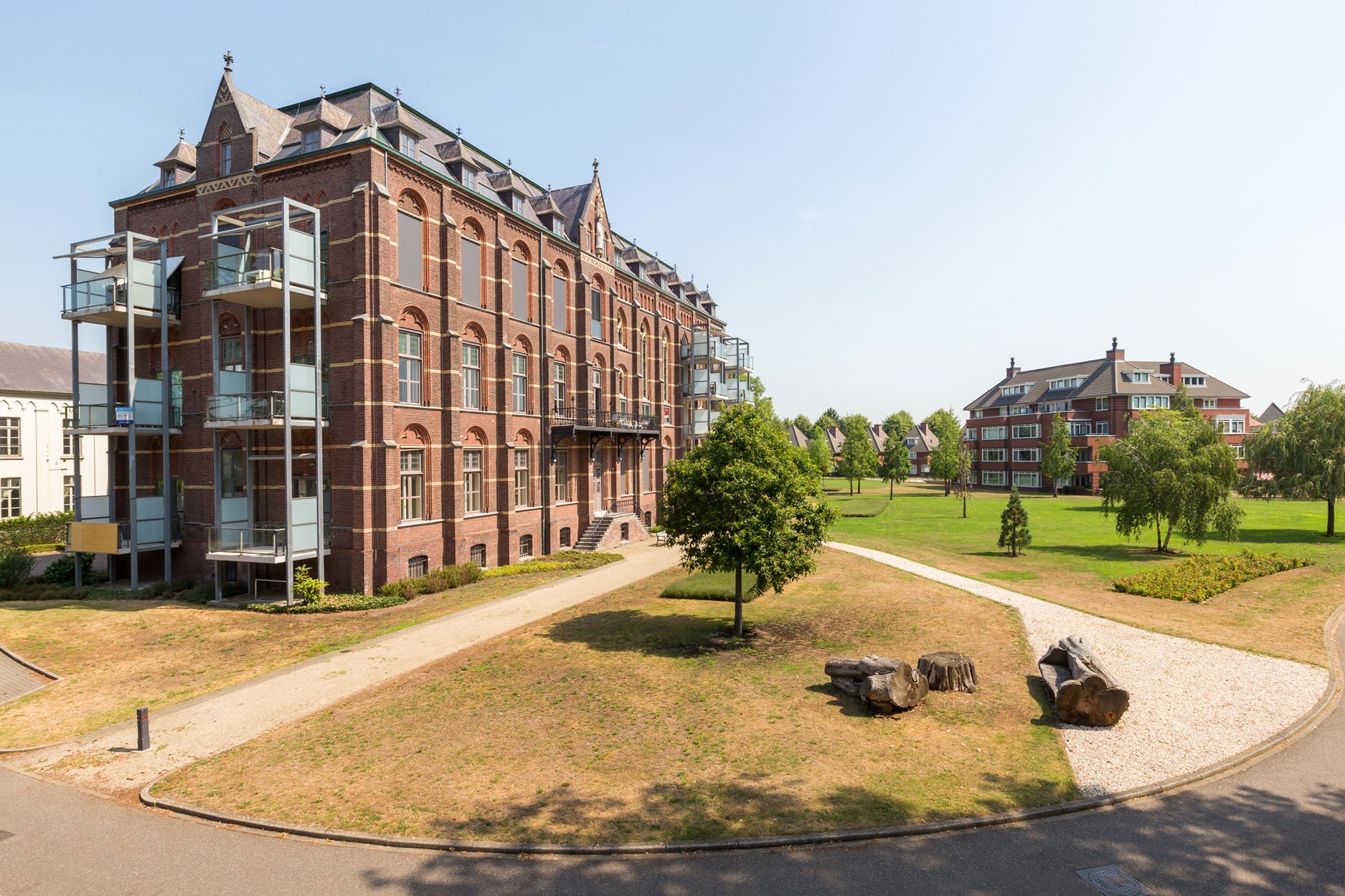 Ook het park is met zijn tijd meegegaan, de nonnen zijn al lang vertrokken maar de rust en schoonheid is gebleven. Een landschapsarchitect heeft het park in zijn oude glorie hersteld met behoud van de authentieke beekrand en de historische bomen langs de uiterwaarden van de Maas. Op het landgoed zijn zowel luxe 2-onder-1-kap woningen als fraaie villa’s en appartementen gerealiseerd. Binnenkort wordt ook de centraal gelegen Villa Moubis gerestaureerd. De architectonisch indrukwekkende kloosterkapel uit 1901 is inmiddels verbouwd tot 18 moderne en riante appartementen gelegen in een heerlijke groene omgeving met prachtige bomen, gazons en wandelpaden die langs de maas en tussen de nieuwe woningen door slingeren. Zo is er een voor Nederland unieke en bijzondere woonomgeving ontstaan waar je veilig, rustig en comfortabel kunt wonen.