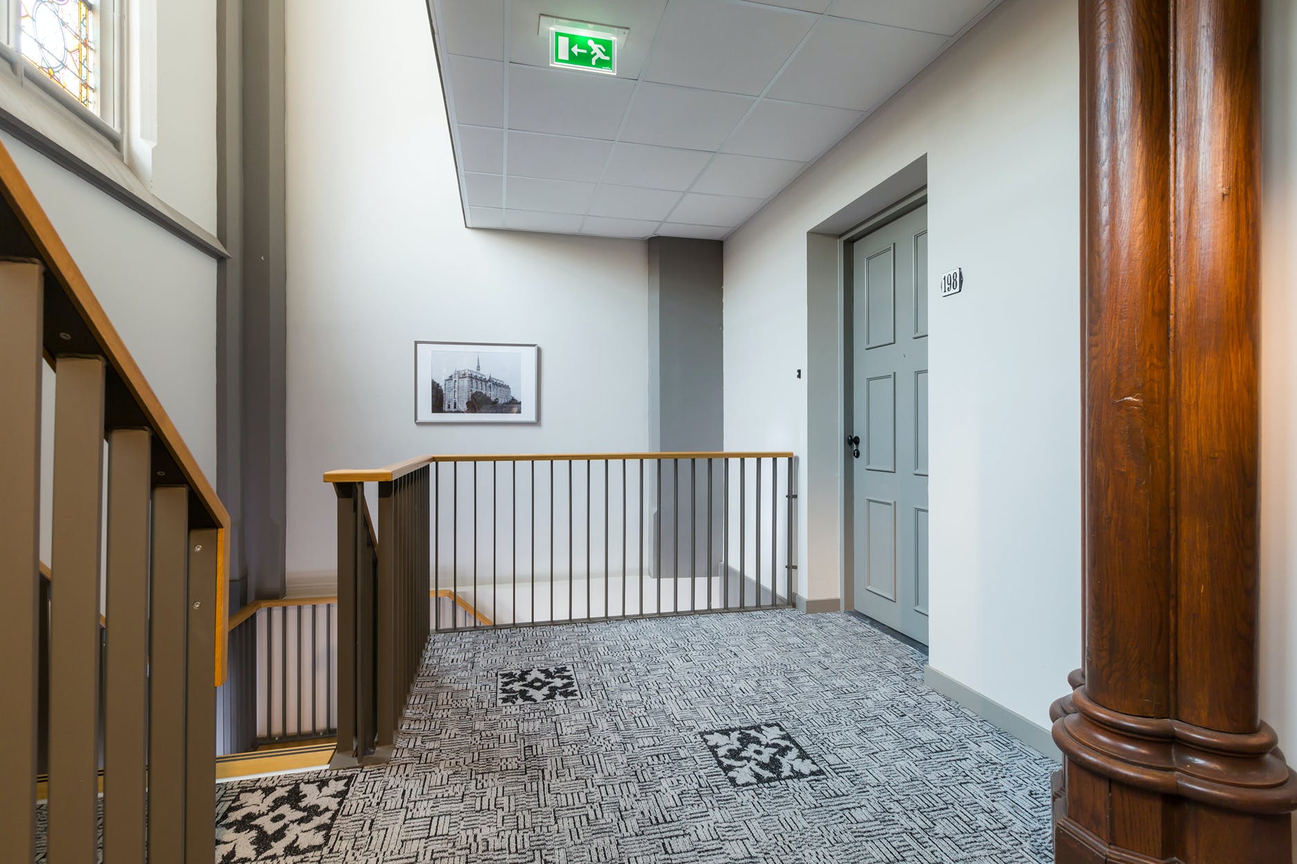 Aangekomen bij de appartement parkeert u uw auto direct voor de deur. Een onder moderne architectuur ontworpen entree/hal vormt de stijlvolle toegang tot het authentieke gebouw. In centrale hal bevinden zich de postkasten, het bellentableau met videofoon en de lift met het trappenhuis. Eenmaal in het appartementencomplex wordt u overweldigd door de ruime opzet, de serene schoonheid en fraaie historische elementen. Elke van de drie verdiepingen is zowel per lift als via het trappenhuis te bereiken.