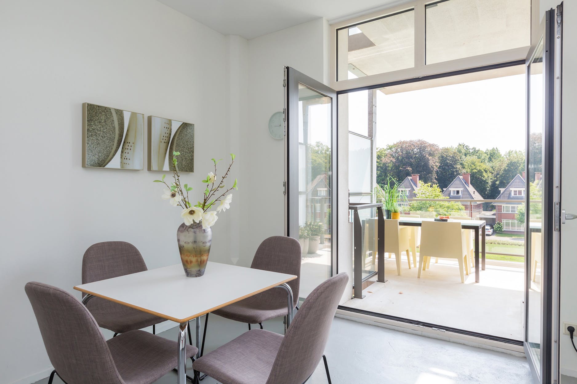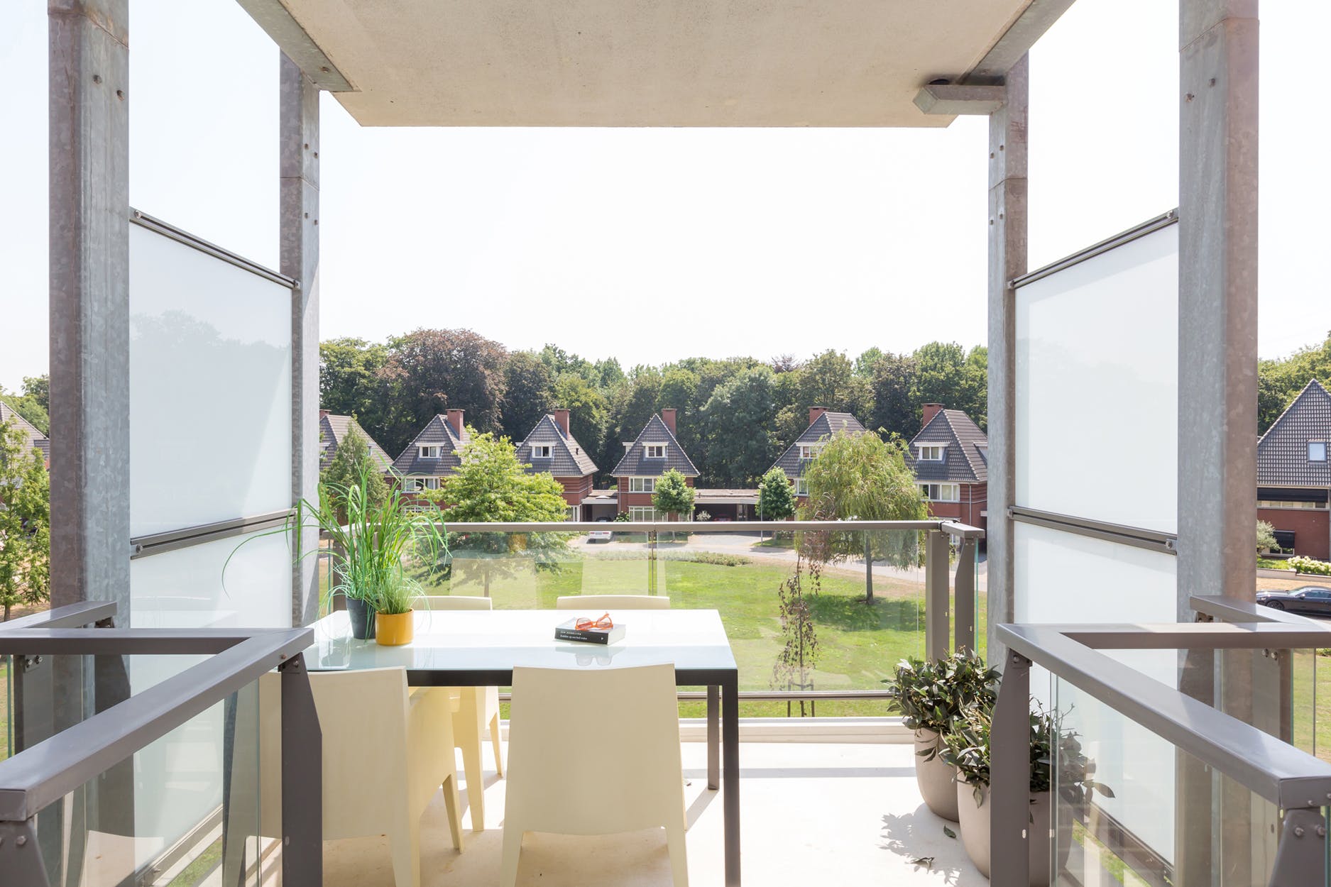 Het overdekte balkon is gelegen op het zuidoosten, hier heeft u een prachtig uitzicht over de fraai aangelegde, parkachtige tuin en een klein stukje van de Maas.