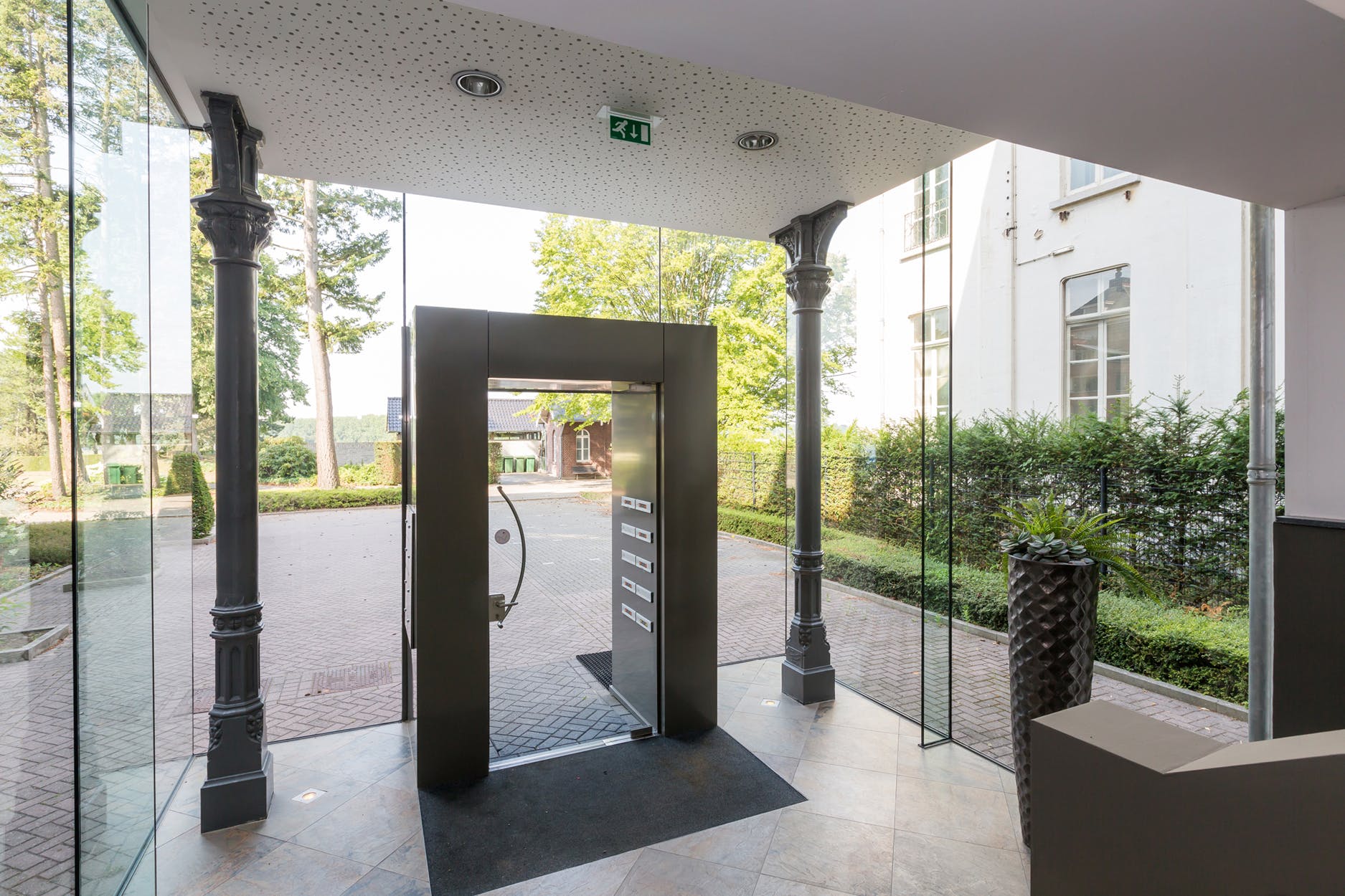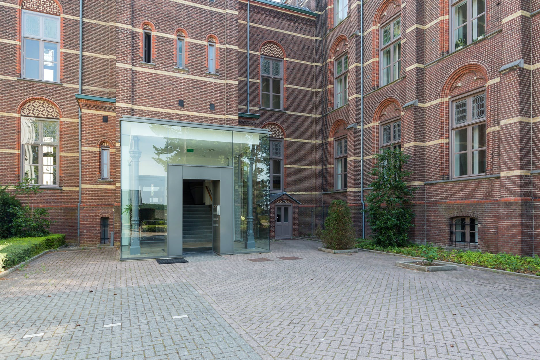 Via de onder architectuur vervaardigde glazen hal welke in licht contrast staat tot het authentieke gebouw bevinden zich de postkasten, bellentableau met videofoon en doorgang naar het trappenhuis dat bereikbaar is middels een trap of een invalidelift. Eenmaal in het appartementencomplex zult u overweldigd worden door de behouden schoonheid en fraaie elementen waarbij de gemeenschappelijke ruimten ruim van opzet zijn. Elke verdieping is zowel via de lift als het trappenhuis te bereiken.