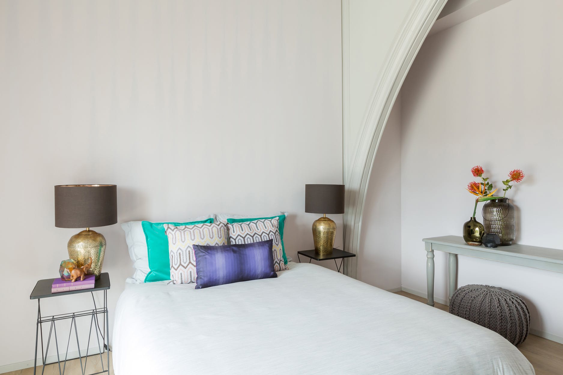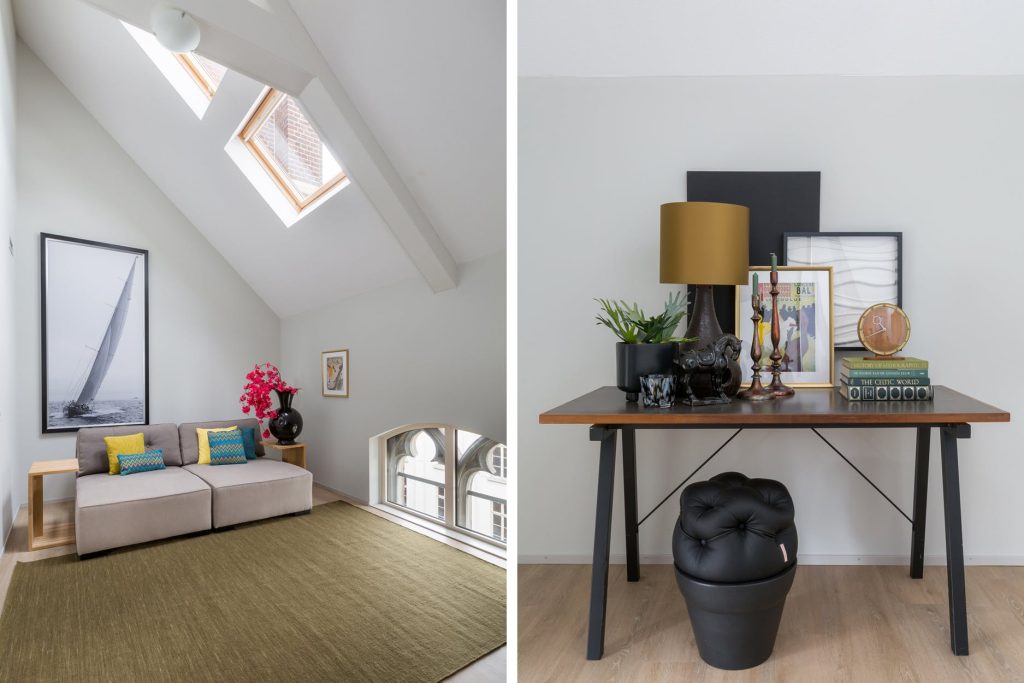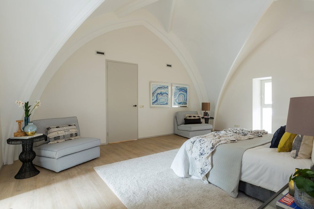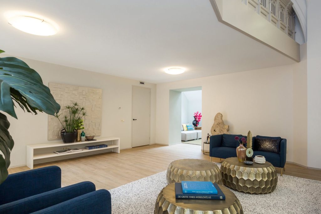 Deze multifunctionele ruimte staat in half open verbinding met de woonkamer. Deze slaapkamer is ook ideaal te gebruiken als bibliotheek/werk-/speel- of televisiekamer. De hoge plafonds en de fraaie raampartijen maken deze ruimte en het gehele appartement tot iets unieks.